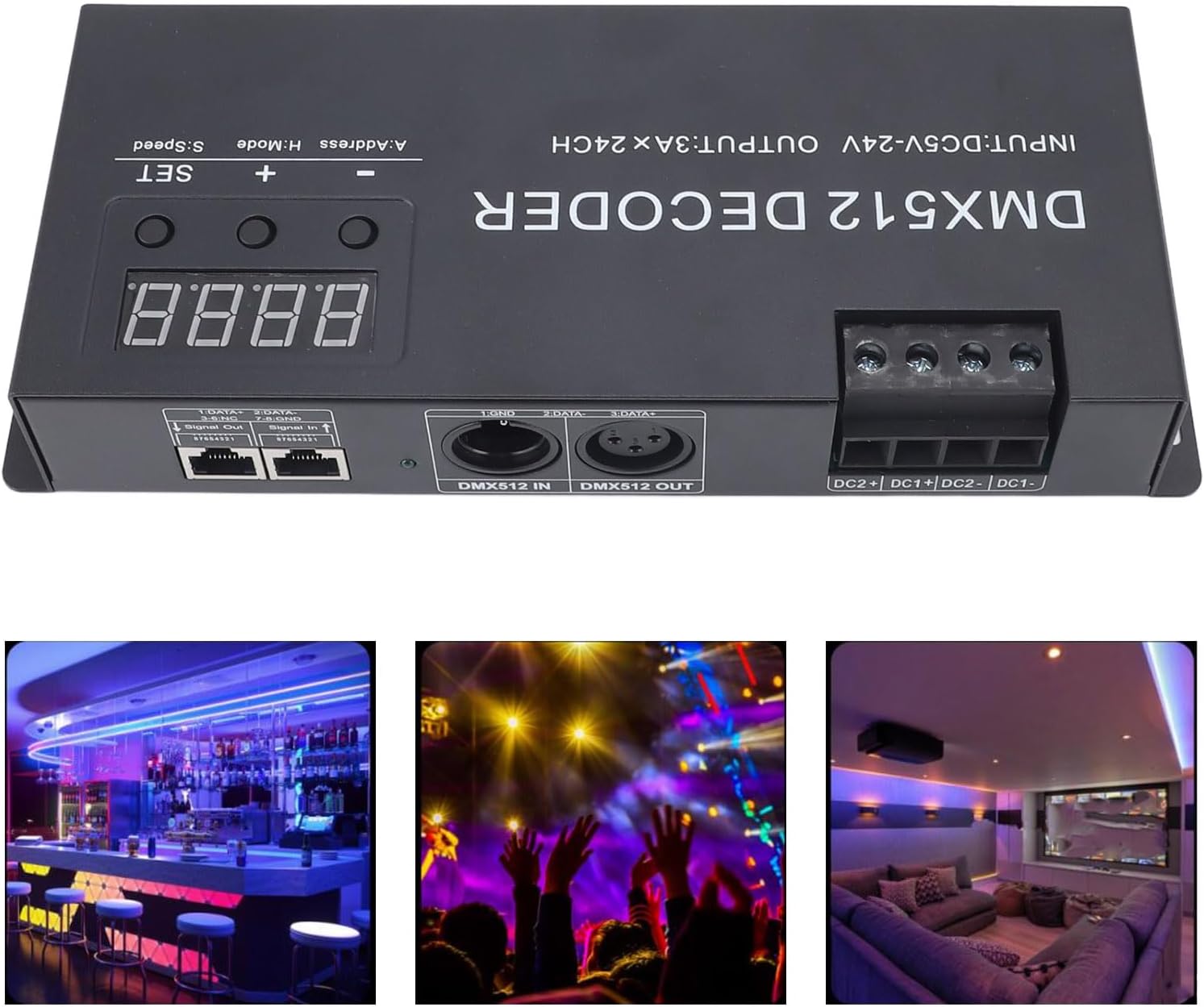[Connessioni versatili]: collegabile alle console digitali il decoder può espandere i per diversi effetti di attenuazione e cambi di programma. [Funzione controller di sincronizzazione]: quando disconnesso dalla console, il decoder funge da controller di sincronizzazione, consentendo la sincronizzazione multi-decoder e della luce LED. [Controllo avanzato]: il decodificatore utilizza chip di controllo del computer per convertire i segnali 512 in segnali PWM per pilotare i LED, garantendo controllo preciso. [Prestazioni eccezionali]: ampiamente utilizzato in grandi progetti LED per esterni, il decoder a 24 offre effetti di luce omogenei e dai colori intensi per display vivaci. [Display intuitivo]: dotato di tubo digitale a led per la visualizzazione del codice indirizzo, facilmente regolabile tramite pulsanti, che migliora la comodità operativa.