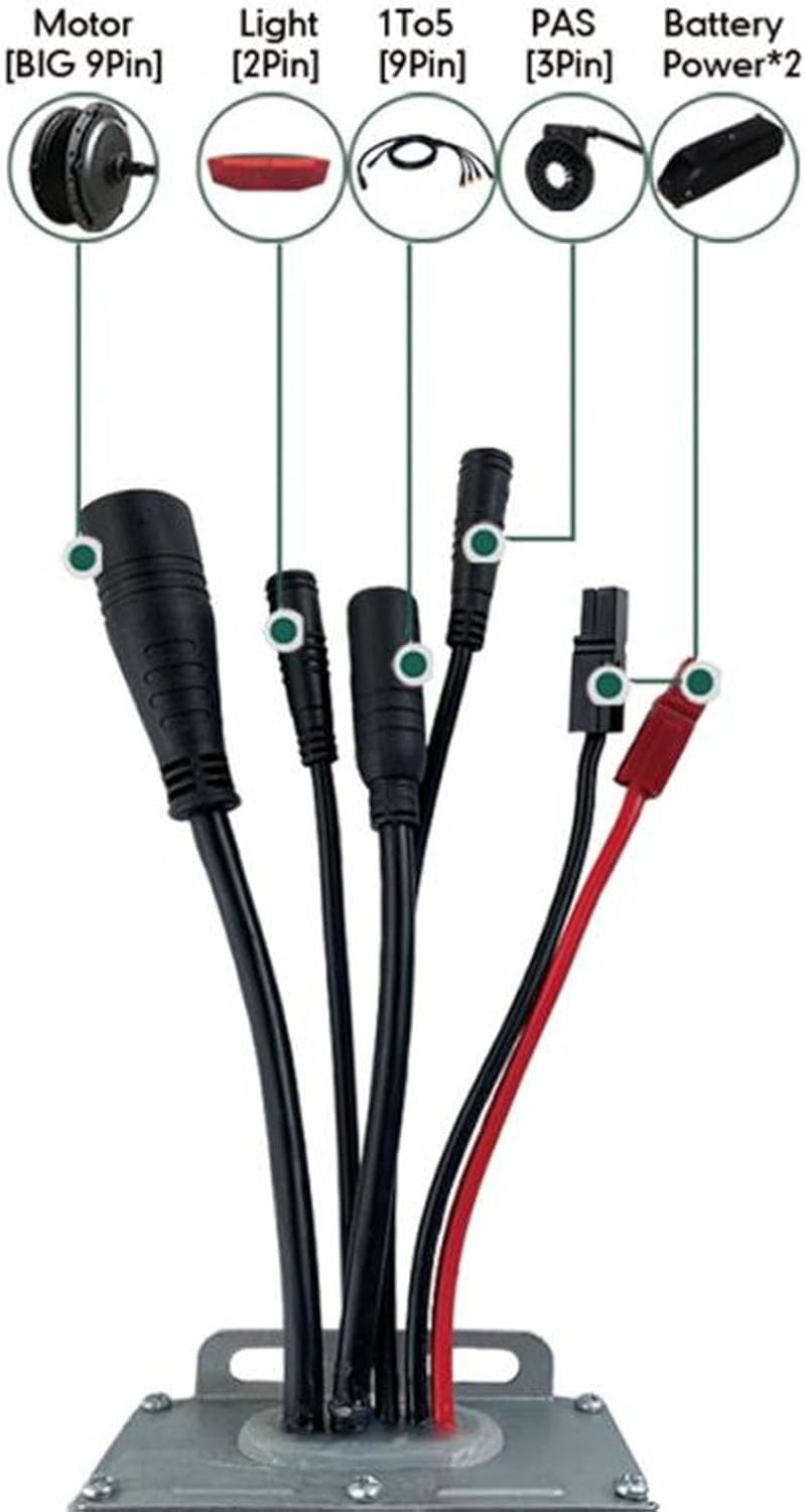 Compatibilità: questo controller per bici elettrica è progettato per funzionare perfettamente con motori da 250 W. Lo schema elettrico facile da seguire garantisce un'installazione semplice, rendendolo facile da usare anche per i principianti. Eccezionale dissipazione del calore: realizzato in lega di alluminio, il controller del motore brushless da 15 A offre un'eccezionale dissipazione del calore. Questo design protegge i circuiti interni, prevenendo il sovraccarico termico per prestazioni affidabili. Il cavo ad alte prestazioni e l'interfaccia impermeabile possono garantire meno guasti durante l'uso a lungo termine. Controllo sensibile: il controller di velocità del motore della bicicletta elettrica può fornire una velocità costante e un controllo sensibile della frenata e dei cambi di direzione, garantendo un'esperienza di guida e piacevole. Prestazioni efficienti e affidabili: il controller per bici elettrica promette alta efficienza e consumo di corrente minimo. Con una lunga durata e un basso tasso di malfunzionamento, garantisce una guida costantemente e piacevole. Comfort di guida migliorato: questo controller funziona silenziosamente e riduce al minimo le vibrazioni, offrendo una piacevole esperienza di guida. La sua sensibilità alle varie condizioni contribuisce ulteriormente a un viaggio confortevole e piacevole.