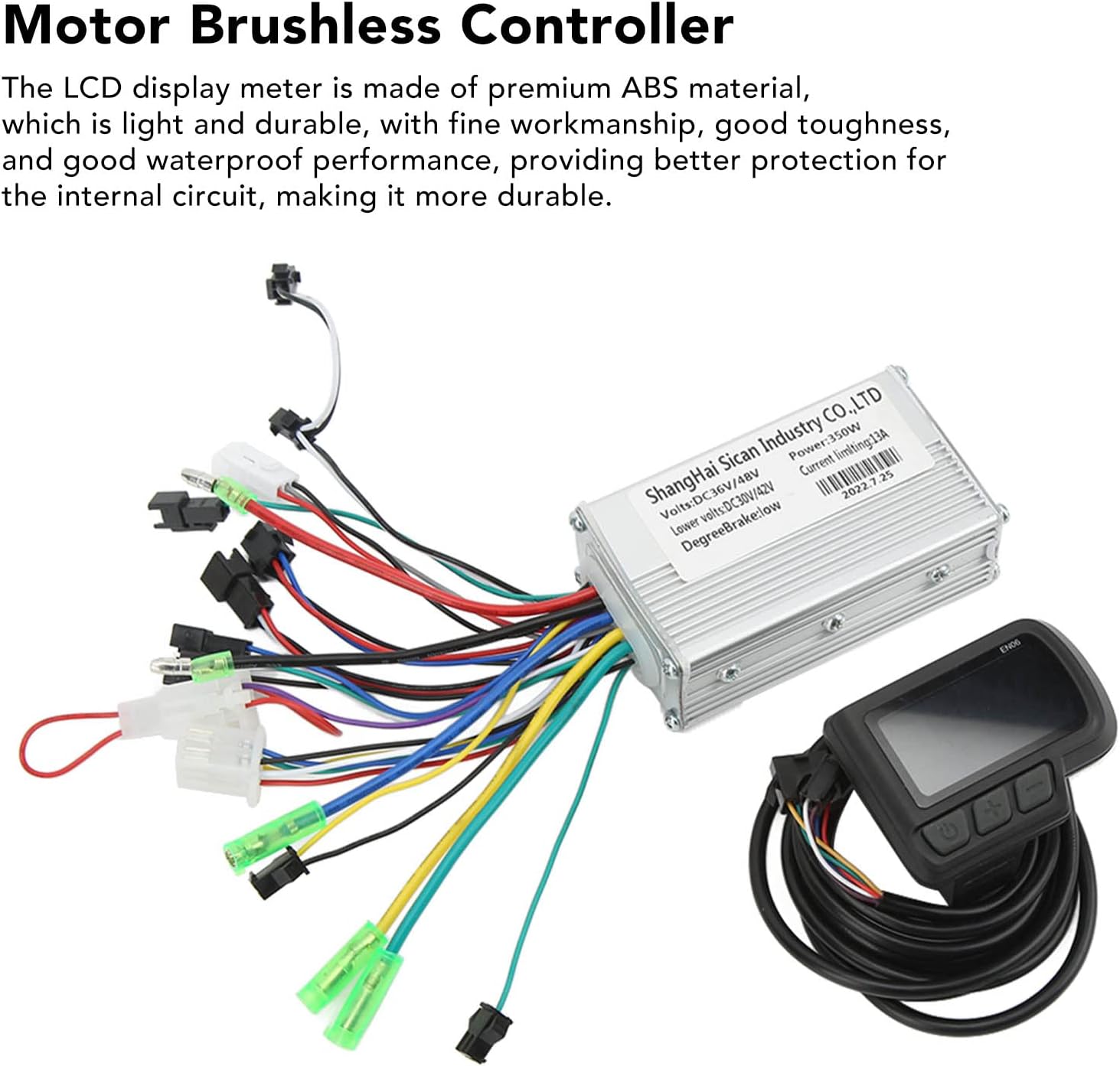 Design innovativo della custodia del controller scanalata: realizzata in metallo, la custodia del controller presenta un design scanalato unico. Questa funzione innovativa garantisce un'efficiente dissipazione del calore e previene il sovraccarico termico nel circuito interno. Indicatore di visualizzazione durevole: l'indicatore di visualizzazione LCD è realizzato in materiale ABS di alta qualità, leggero e durevole, di pregevole fattura, buona tenacità e buone prestazioni di impermeabilità, fornendo una migliore protezione per il circuito interno e rendendolo più durevole. Display multiplo dei dati: il pannello del display ha più funzioni. Durante la pedalata, sulla bicicletta vengono visualizzati molti dati utili, come ad esempio: B. Pulsanti di commutazione, display della batteria e altro. E c'è un display sul pannello, puoi sempre cogliere la situazione Ambito di applicazione: il kit di controllo del motore da 350 W può essere utilizzato per bici elettriche autocostruite, veicoli elettrici, scooter elettrici, bici pieghevoli, ecc. La modifica della batteria al litio della bicicletta è facile da mantenere e migliora notevolmente il divertimento di guida, adatto ai ciclisti Kit completo di modifica della bici elettrica: Il kit del controller di modifica della batteria al litio della bici elettrica contiene tutto il necessario per aggiornare la tua corsa. Include un controller del motore brushless e un display LCD