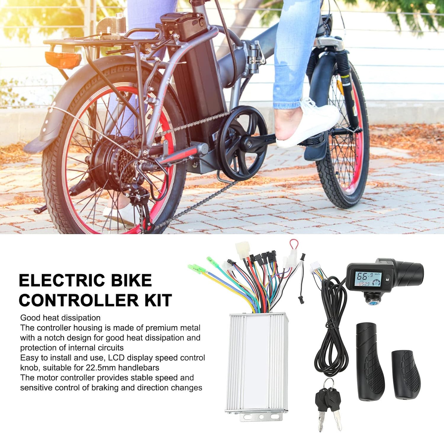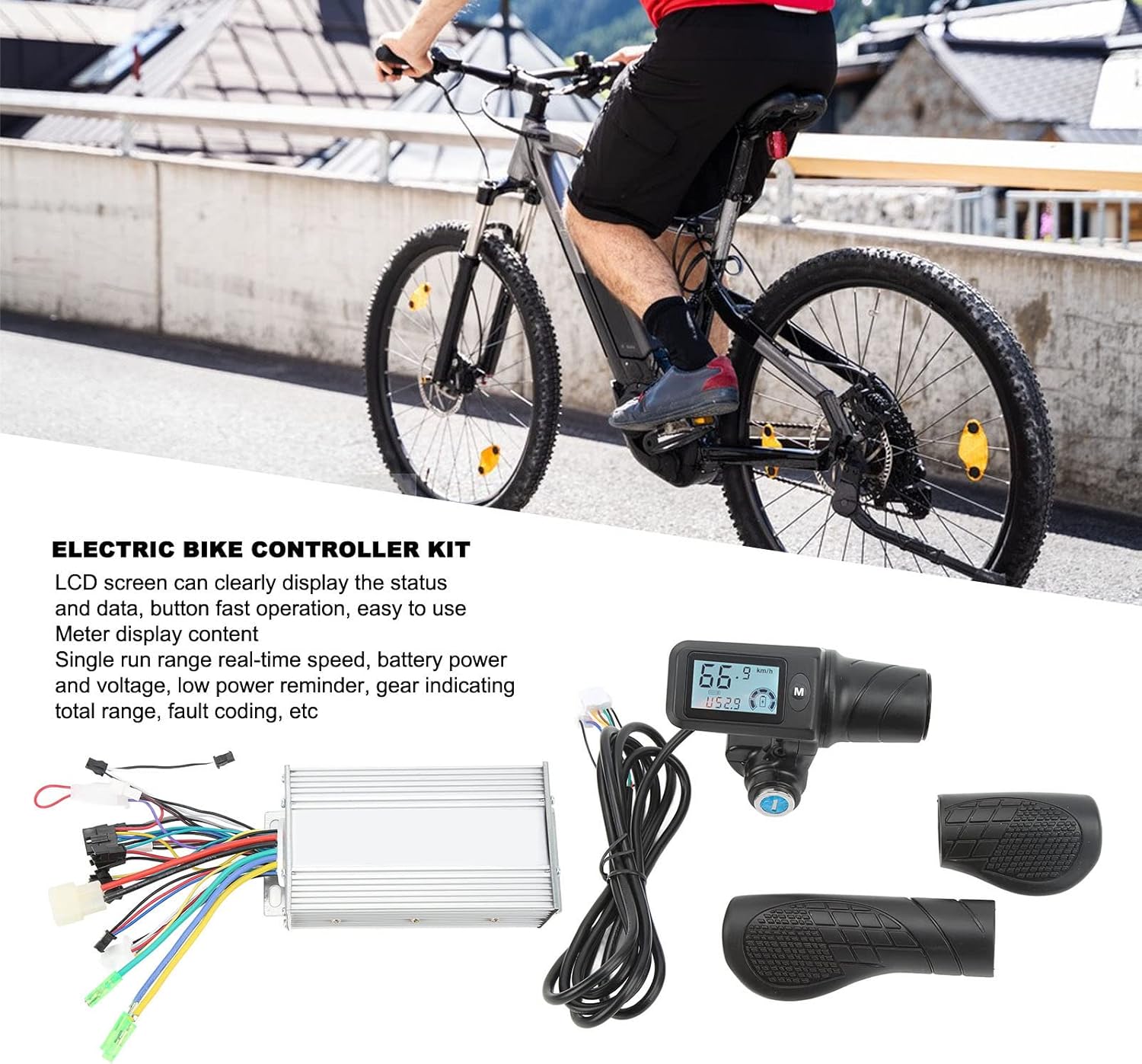 【Buona dissipazione del calore】: il corpo del controller è realizzato in metallo di alta qualità con design dentellato, che protegge i circuiti interni con una buona dissipazione del calore, evitando il sovraccarico termico. 【Applicabile】: il controller del motore brushless per bici elettrica è facile da installare e utilizzare. Il controller di velocità con display LCD è adatto per manubri da 22,5 mm 【Controllo sensibile】: Il controller del motore della bici elettrica fornisce velocità stabile e controllo sensibile delle frenate e dei cambi di direzione, rendendolo una scelta versatile per chiunque desideri migliorare le prestazioni della propria e-bike 【Schermo LCD】: Lo schermo LCD può visualizzare chiaramente lo stato e i dati, la retroilluminazione consente una visione chiara dello schermo in ambienti bui, funzionamento rapido dei pulsanti, funzionamento facile e tensione, avviso di batteria scarica, indicatore di marcia, chilometraggio totale, codifica errori, ecc