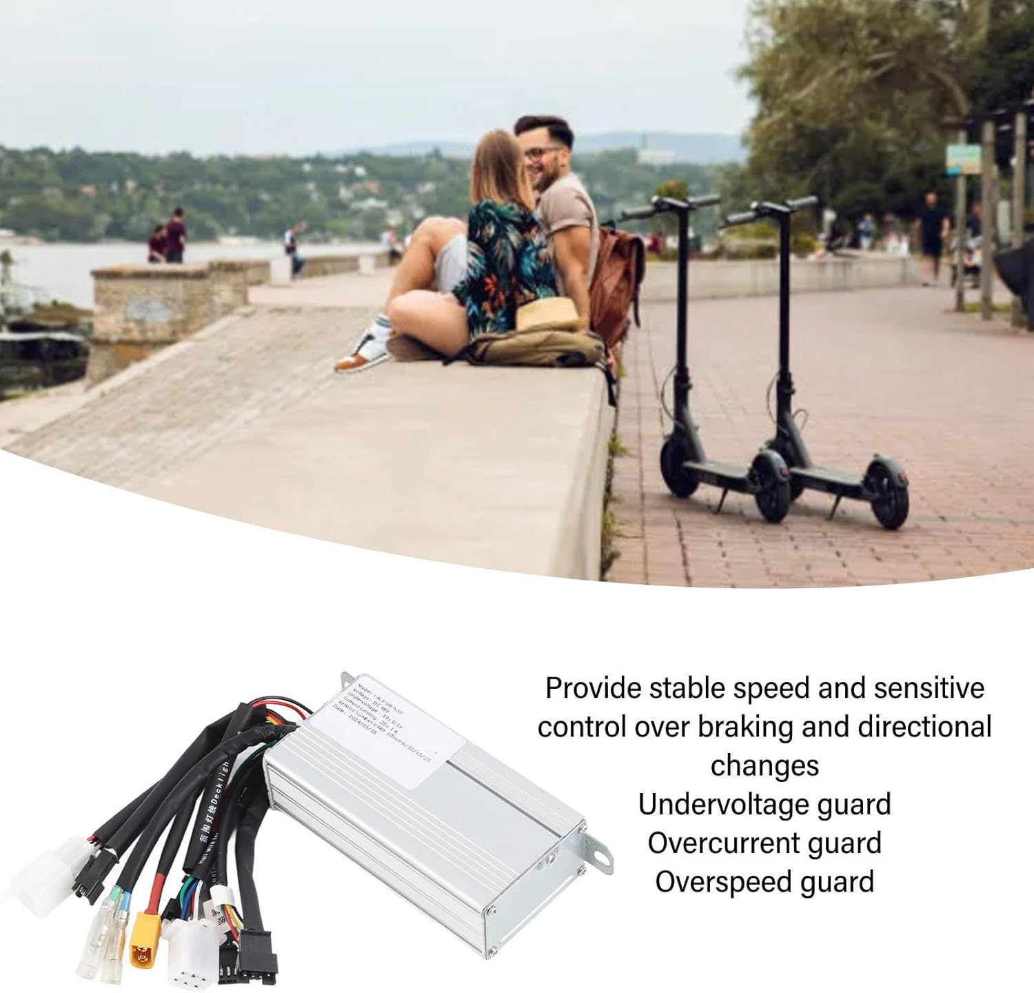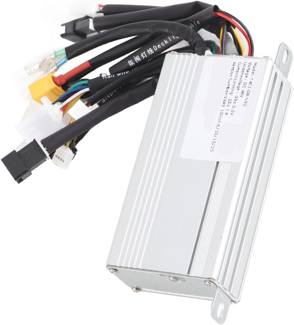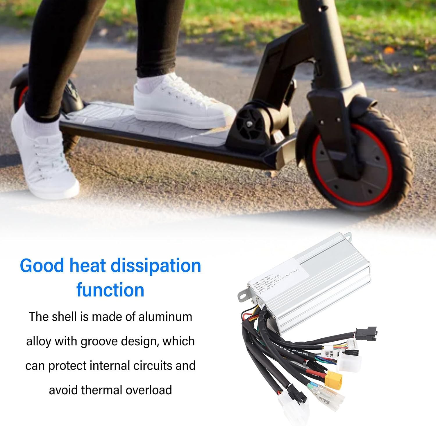Eccellente dissipazione del calore: il controller dello scooter elettrico è dotato di un guscio in lega di alluminio con un design scanalato che consente un'efficiente dissipazione del calore, proteggendo i circuiti interni e prevenendo problemi di surriscaldamento. Velocità stabile e controllo reattivo: questo controller fornisce un controllo stabile della velocità e una manovrabilità reattiva per frenate e cambi di direzione, migliorando l'esperienza di guida complessiva. Cablaggio resistente alle alte temperature: dotato di cablaggio resistente alle alte temperature, il controller utilizza cavi ignifughi per maggiore sicurezza e durata, garantendo prestazioni affidabili in varie condizioni. Prestazioni stabili e affidabili: il controller è progettato con funzionalità come protezione da sottotensione, protezione da sovracorrente e protezione da sovravelocità per garantire il funzionamento sicuro ed efficiente degli scooter elettrici, dando priorità alla sicurezza dell'utente. Ampia applicazione: adatto per scooter elettrici, biciclette elettriche e tricicli elettrici, questo controller offre compatibilità versatile e prestazioni affidabili su un'ampia gamma di veicoli elettrici.