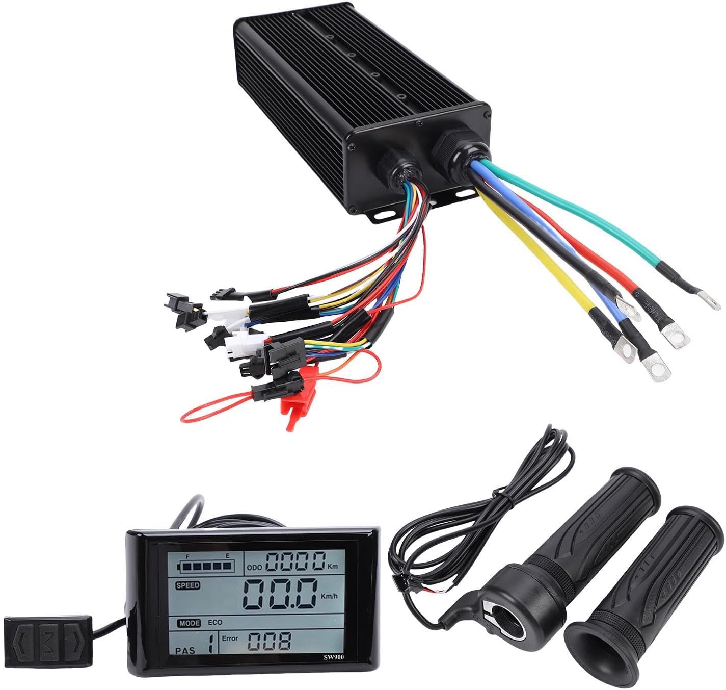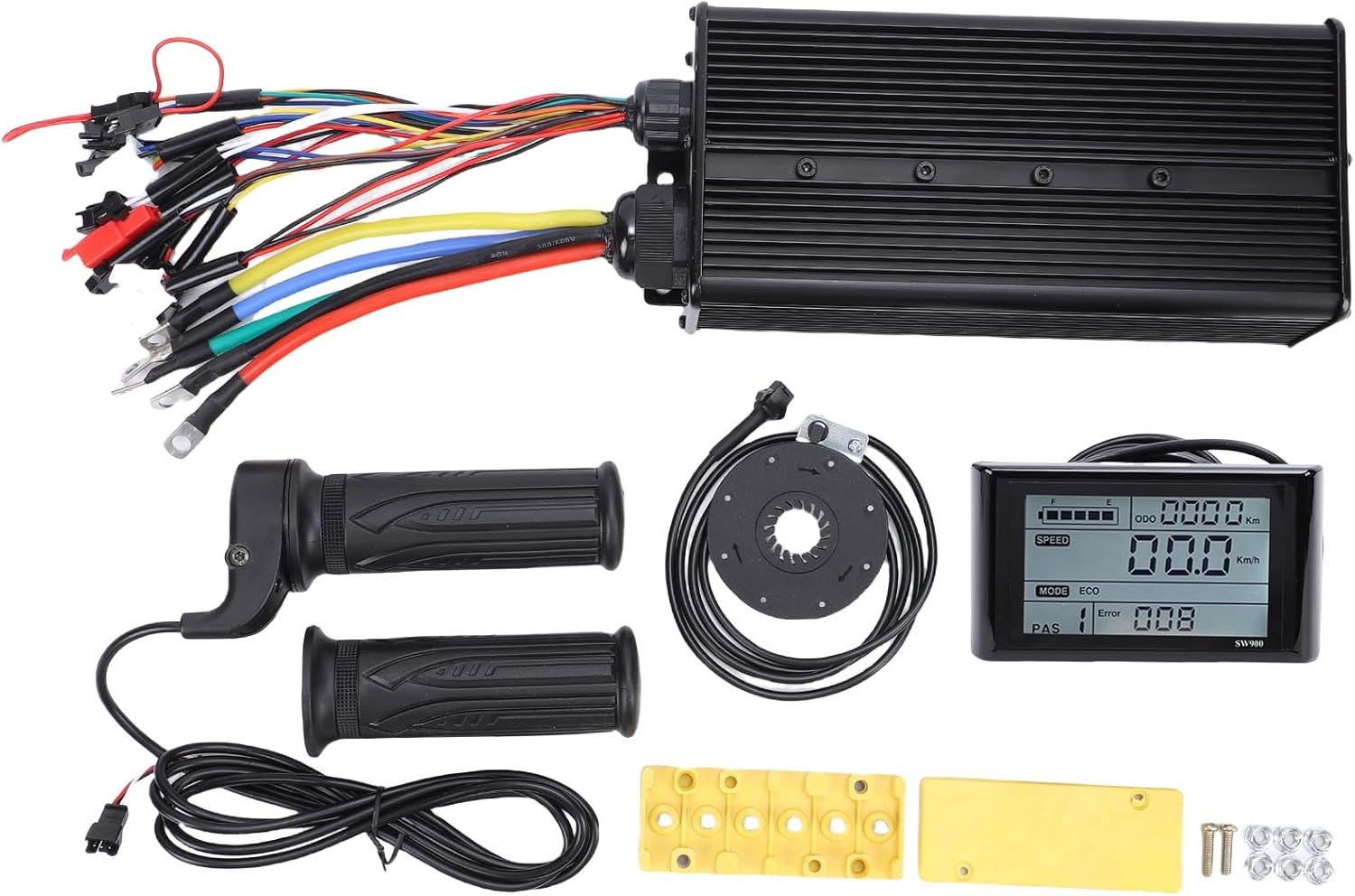 [Controllo di guida migliorato] Accelerazione fluida e frenata reattiva con 20x e sensore di pedalata assistita per una migliore esperienza di guida. [Display LCD efficiente] Il pannello LCD SW900 visualizza la velocità e il livello della batteria in tempo reale ed è realizzato in ABS leggero per resistenza e visibilità. [Installazione semplice] Il design plug and play rapido semplifica la configurazione; Molteplici modalità di guida da personalizzare in base al terreno e alle preferenze. [Custodia robusta] La resistente custodia in lega di alluminio previene il sovraccarico termico e resiste a terreni difficili per una guida affidabile su lunghe distanze. [Compatibilità versatile] Funziona con motori brushless Hall e non Hall, consentendo ai ciclisti di personalizzare velocità e potenza in base alle proprie esigenze.