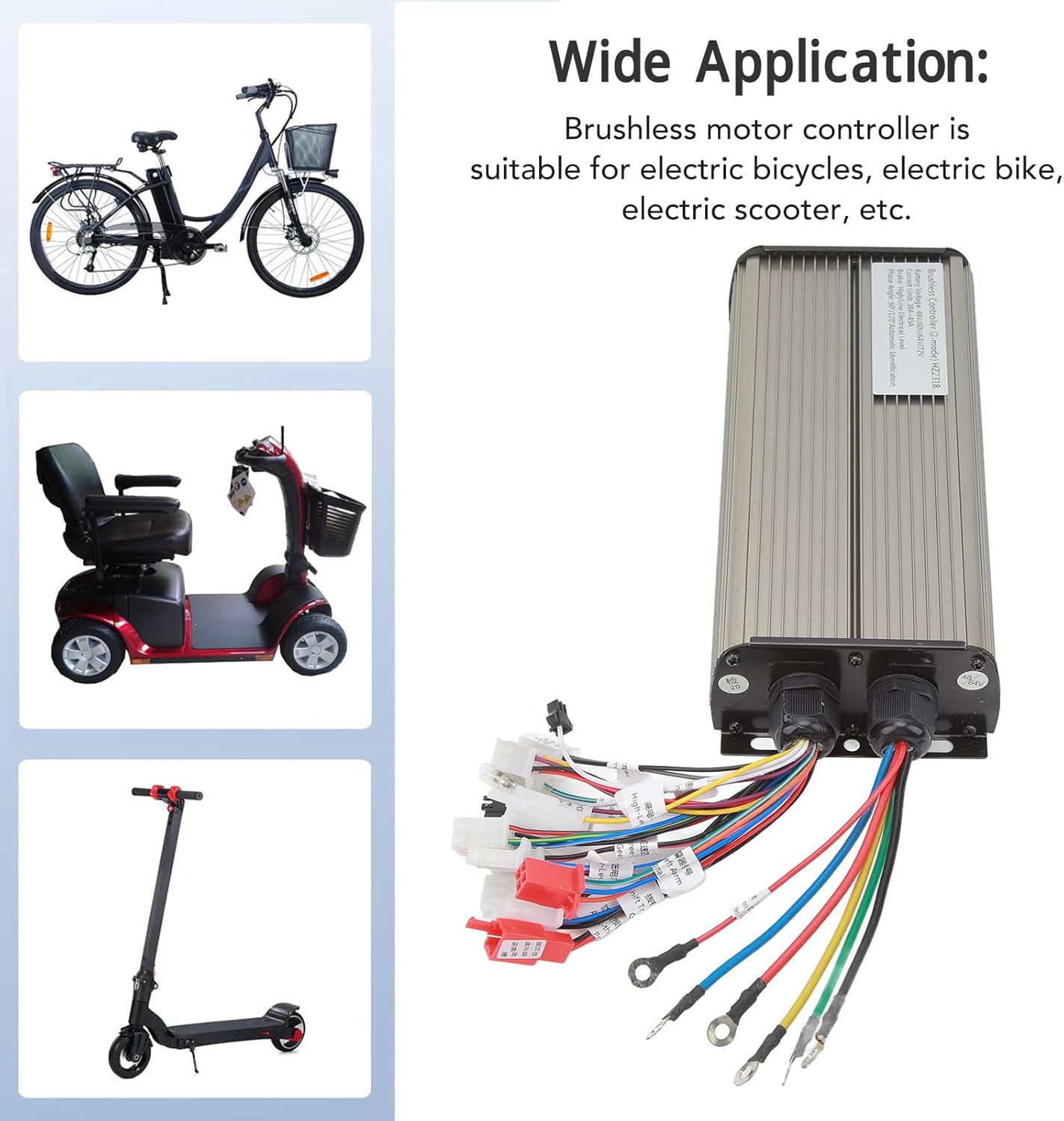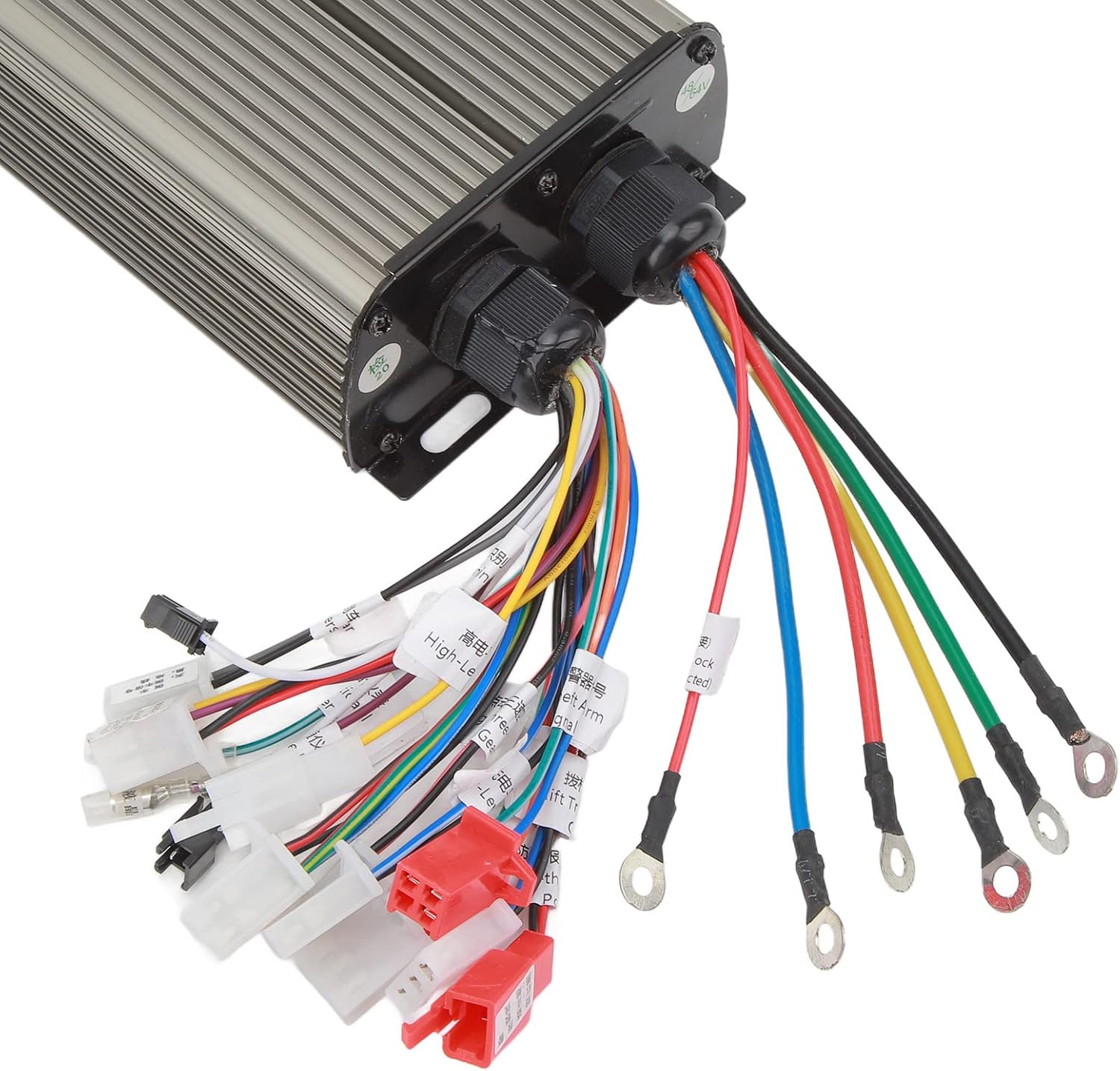 PRESTAZIONI POTENTI: aggiorna la tua bici elettrica con il CONTROLLER BRUSHLESS da 48 V, 60 V, 64 V, 72 V, 2000 W, che offre una robusta potenza nominale di 2000 W per maggiore potenza e velocità. EFFICIENTE DISSIPAZIONE DEL CALORE: la struttura in lega di alluminio garantisce un'efficace dissipazione del calore, previene il sovraccarico termico e garantisce la longevità del controller del motore brushless della tua bici elettrica. CARATTERISTICHE DI PROTEZIONE AVANZATA: i vantaggi della protezione da sottotensione, sovracorrente e stallo garantiscono un funzionamento stabile e affidabile della tua bici elettrica. La sicurezza è la massima priorità per viaggiare senza preoccupazioni. CONTROLLO PRECISO: sperimenta il CONTROLLO SENSIBILE con questo controller del motore brushless che fornisce velocità costante e frenata reattiva e cambi di direzione per una guida fluida e confortevole. COMPATIBILITÀ VERSATILE: la compatibilità con bici elettriche, bici elettriche e scooter elettrici rende il CONTROLLER MOTORE BRUSHLESS perfetto per una varietà di applicazioni di trasporto elettrico.