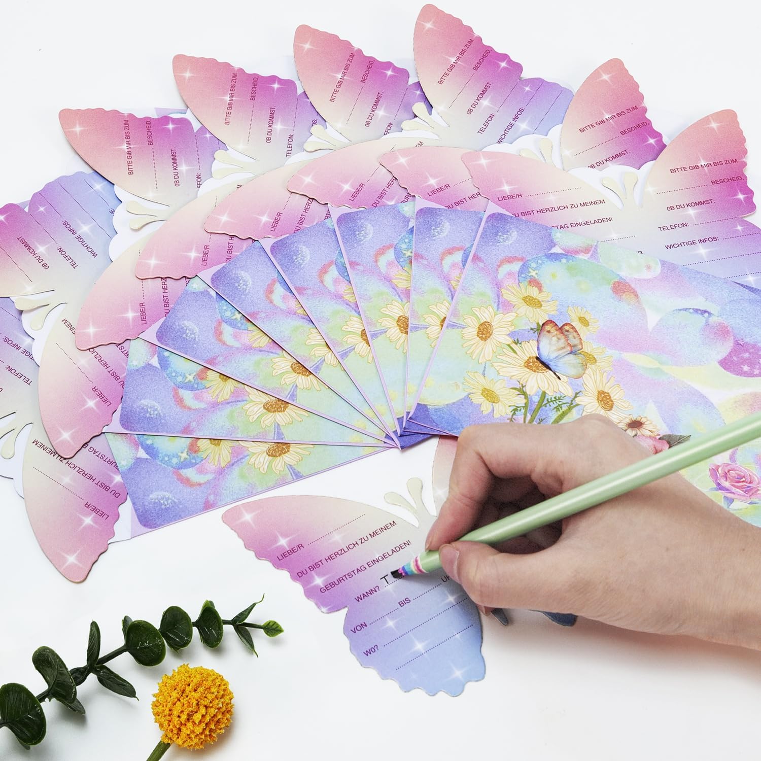 🦋QUALITÀ PREMIUM: i bellissimi biglietti d'invito con farfalle sono stampati professionalmente su cartoncino resistente con una trama realistica e una stampa a colori nitidi. I bellissimi biglietti d'invito sono un must per qualsiasi evento speciale. 🦋Biglietti d'invito con farfalle 3D: i nostri biglietti d'invito per il compleanno dei bambini misurano 17,5 x 13 cm. La nostra confezione contiene 12 cartoline, 12 adesivi e 12 buste. Ogni biglietto è progettato con grande attenzione ai dettagli e cattura l'essenza delle farfalle in tutto il loro splendore. 🦋SCELTA PERFETTA: I nostri biglietti d'invito con farfalle colpiscono per i loro design squisiti, ogni biglietto è un'opera d'arte che, con i suoi dettagli intricati e i colori vivaci, è una scelta meravigliosa per ogni occasione speciale. 🦋USO UNIVERSALE: Che si tratti di un matrimonio, una festa di compleanno, un baby shower o una festa in giardino, i nostri biglietti d'invito con farfalle sono adatti a tutte le occasioni. sono un simbolo di speranza e felicità. 🦋Facile da compilare: la parte anteriore del biglietto d'invito presenta un motivo a farfalla, la parte posteriore ha spazio sufficiente per tutte le informazioni importanti, compresi i dettagli dell'invito, come nome, ora, luogo, ecc. ed è compatibile con tutte le penne standard.