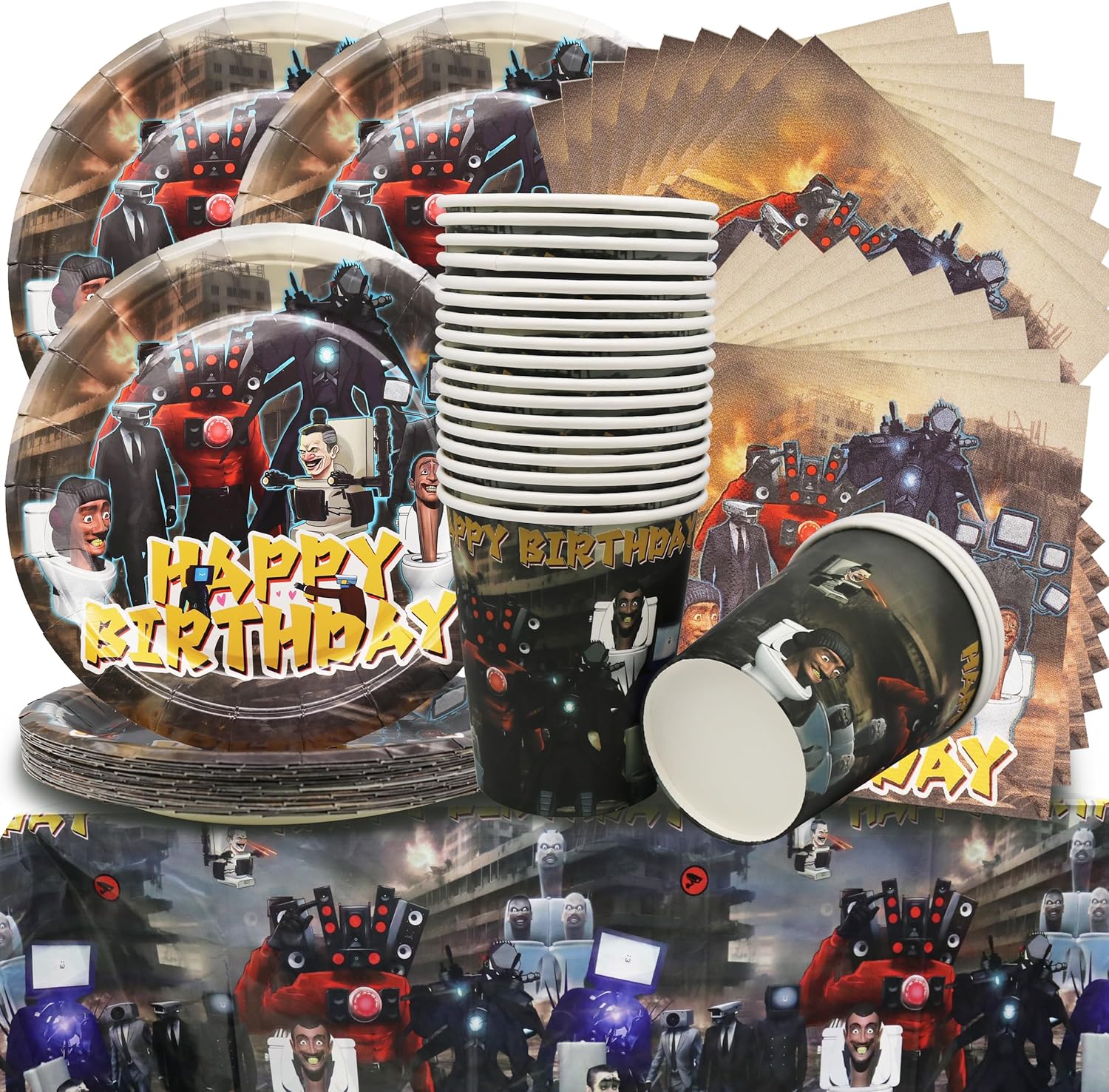 Coordinato completo per 8 Persone 8 Piatti, 8 Bicchieri e 20 Tovaglioli a Tema Halloween