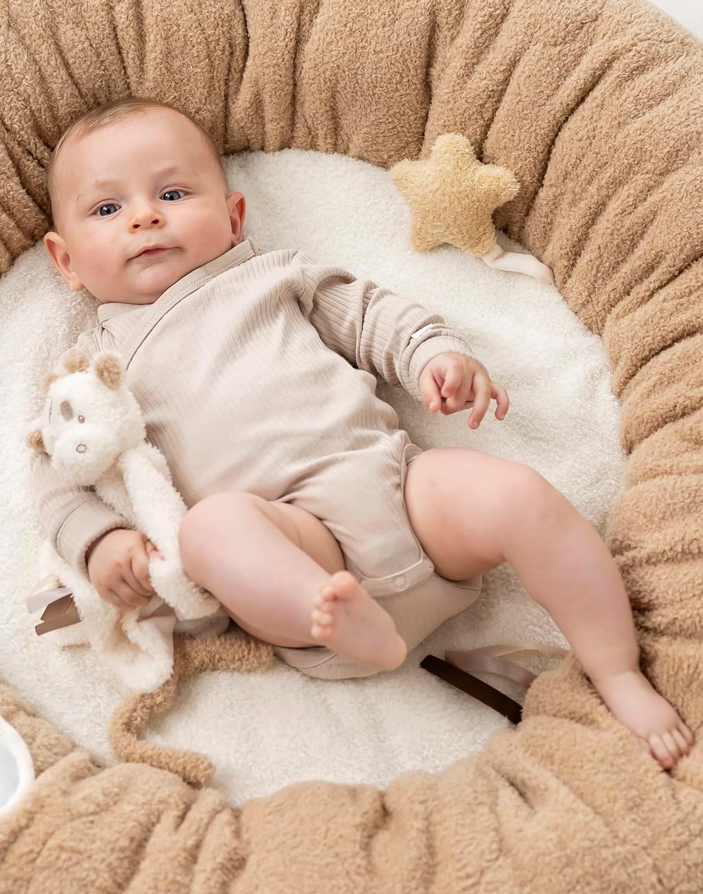 Simpatica giraffa della serie Teddy come morbida trapunta, compagna di giochi e compagna per confortare nei momenti difficili, per neonati e bambini prematuri. Ideale per favorire lo sviluppo della motricità grossolana e fine grazie alle innumerevoli possibilità di presa: testa con orecchie e corna, nastri e targhette. Dettaglio pratico: 2 nastri per fissare il ciuccio. Qualità del marchio: materiale molto morbido in 100% poliestere, morbido e coccoloso, facile da pulire: lavabile in lavatrice a 30 °C, vegano e cruelty-free. Fornitura: 1 trapunta giraffa Nattou, collezione: Teddy, materiale: 100% poliestere, dimensioni: 39 x 37 x 6 cm, colore: bianco, 856102
