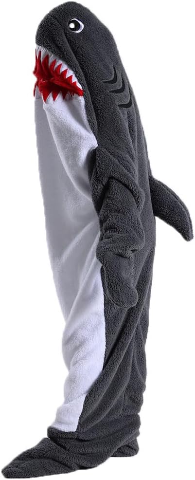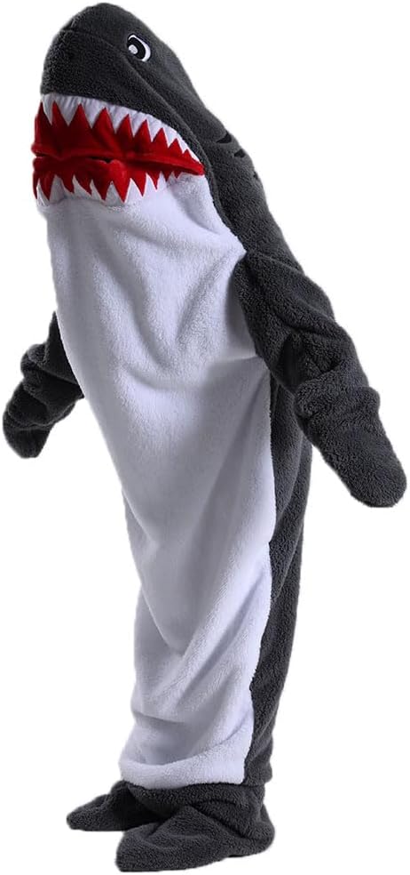 Coperta con cappuccio squalo per adulti, coperta super morbida e confortevole, sacco a pelo, cosplay, coperta regalo