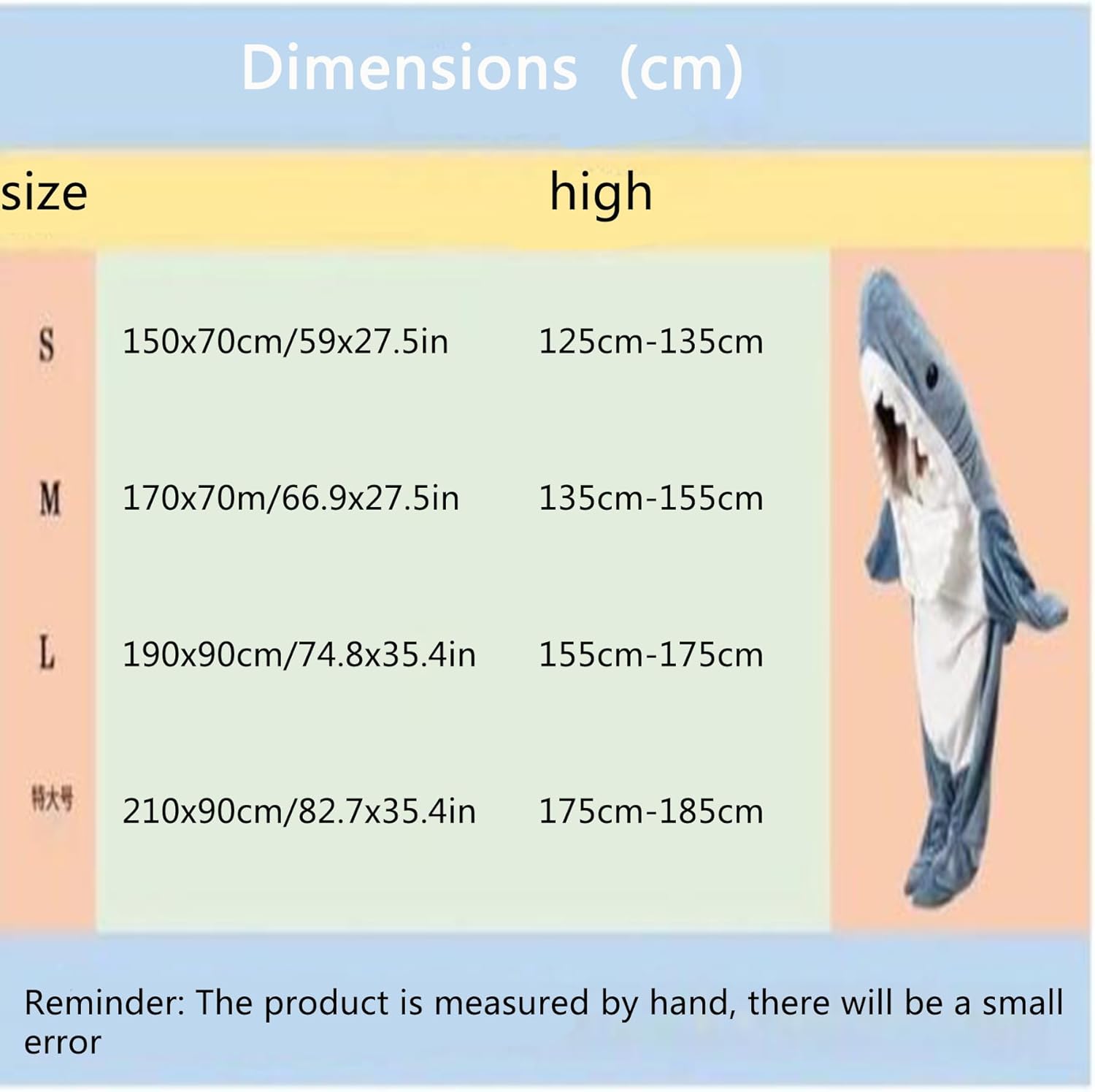 Coperta con cappuccio pratica e casual: il cappuccio mantiene la testa calda, il sacco a pelo gigante Shark rende la vestizione facile, calda e confortevole. MATERIALE PREMIUM: La nostra coperta con squalo è realizzata con il tessuto in pile di flanella più morbido (100% poliestere). Super morbido, confortevole e leggero, caldo e resistente. Può essere utilizzato non solo come sacco a pelo, ma anche come tutina. Il costume da squalo può sdraiarsi sul divano o accoccolarsi sul letto. REALISTICA E VIBRANTE: la coperta del sacco a pelo presenta stampe e colori realistici con una forma unica di squalo per aiutarti a entrare nel personaggio ogni volta che la indossi. Ampiamente applicabile: la coperta per animali domestici ti dà un tocco caldo e morbido, perfetta per serate di cinema, serate di festa, pigiama party, campeggio, viaggi e altro ancora. Ottima scelta di regali: il sacco a pelo degli squali è un ottimo regalo per la famiglia e gli amici, offre loro un'esperienza di sonno confortevole e lascia che lo portino a casa o in viaggio.
