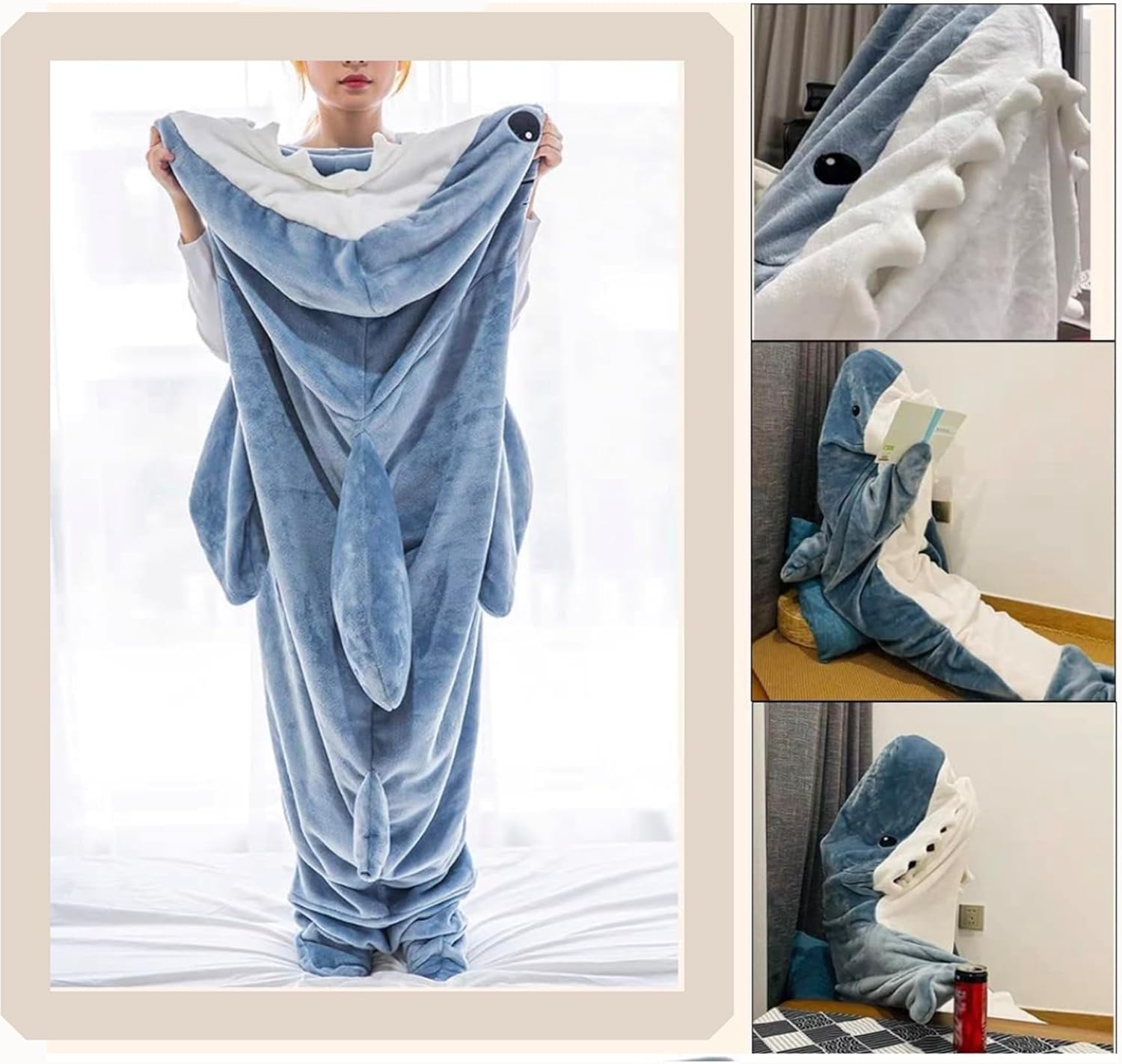 Coperta con cappuccio pratica e casual: il cappuccio mantiene la testa calda, il sacco a pelo gigante Shark rende la vestizione facile, calda e confortevole. MATERIALE PREMIUM: La nostra coperta con squalo è realizzata con il tessuto in pile di flanella più morbido (100% poliestere). Super morbido, confortevole e leggero, caldo e resistente. Può essere utilizzato non solo come sacco a pelo, ma anche come tutina. Il costume da squalo può sdraiarsi sul divano o accoccolarsi sul letto. REALISTICA E VIBRANTE: la coperta del sacco a pelo presenta stampe e colori realistici con una forma unica di squalo per aiutarti a entrare nel personaggio ogni volta che la indossi. Ampiamente applicabile: la coperta per animali domestici ti dà un tocco caldo e morbido, perfetta per serate di cinema, serate di festa, pigiama party, campeggio, viaggi e altro ancora. Ottima scelta di regali: il sacco a pelo degli squali è un ottimo regalo per la famiglia e gli amici, offre loro un'esperienza di sonno confortevole e lascia che lo portino a casa o in viaggio.