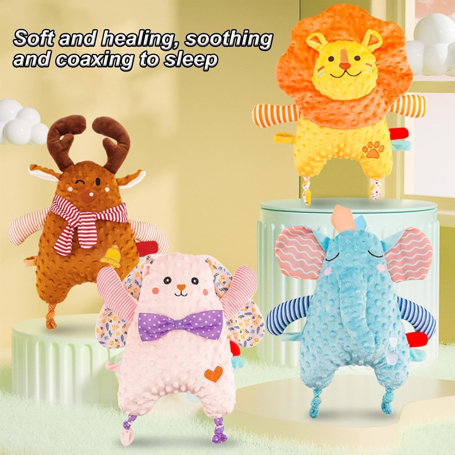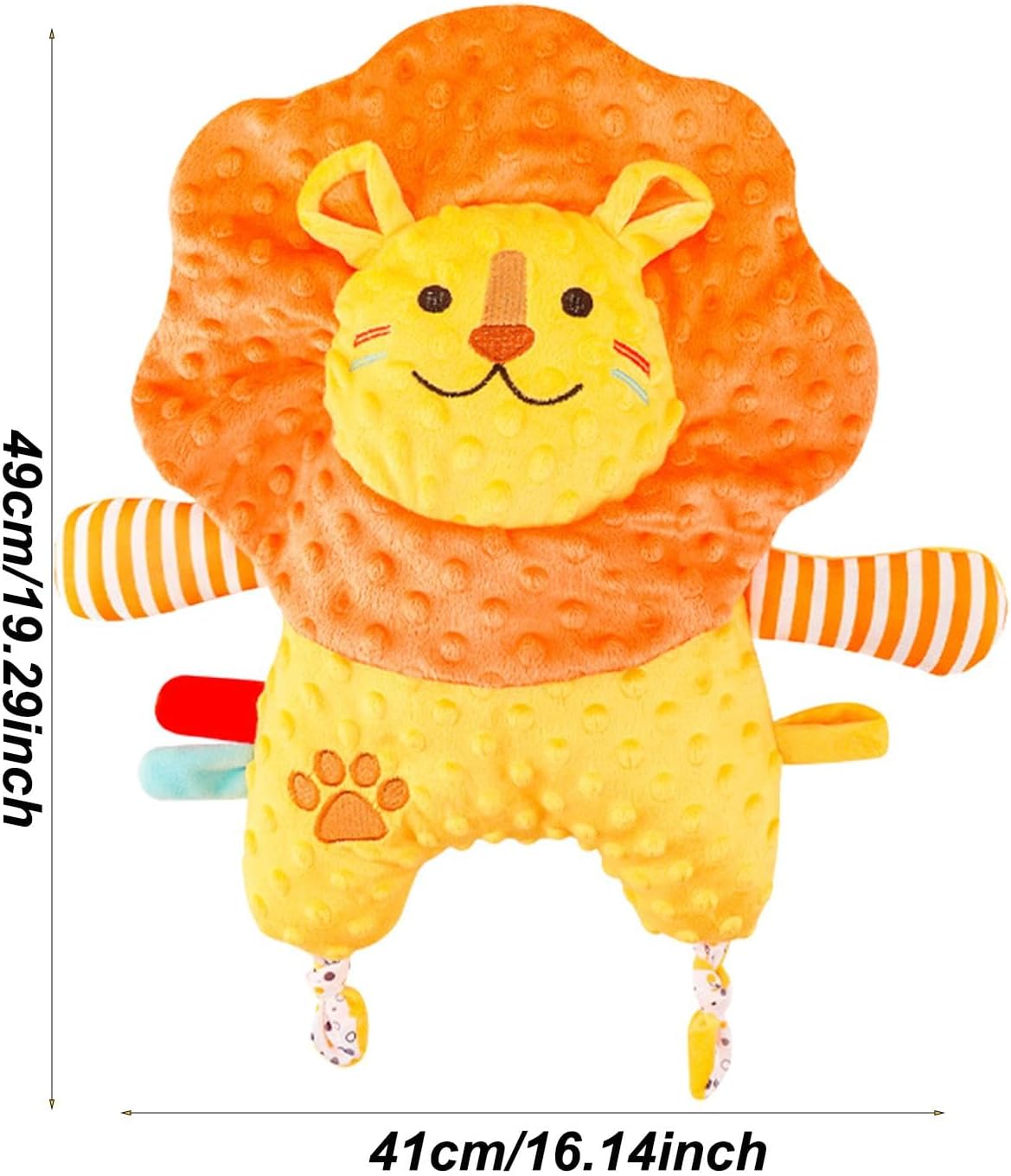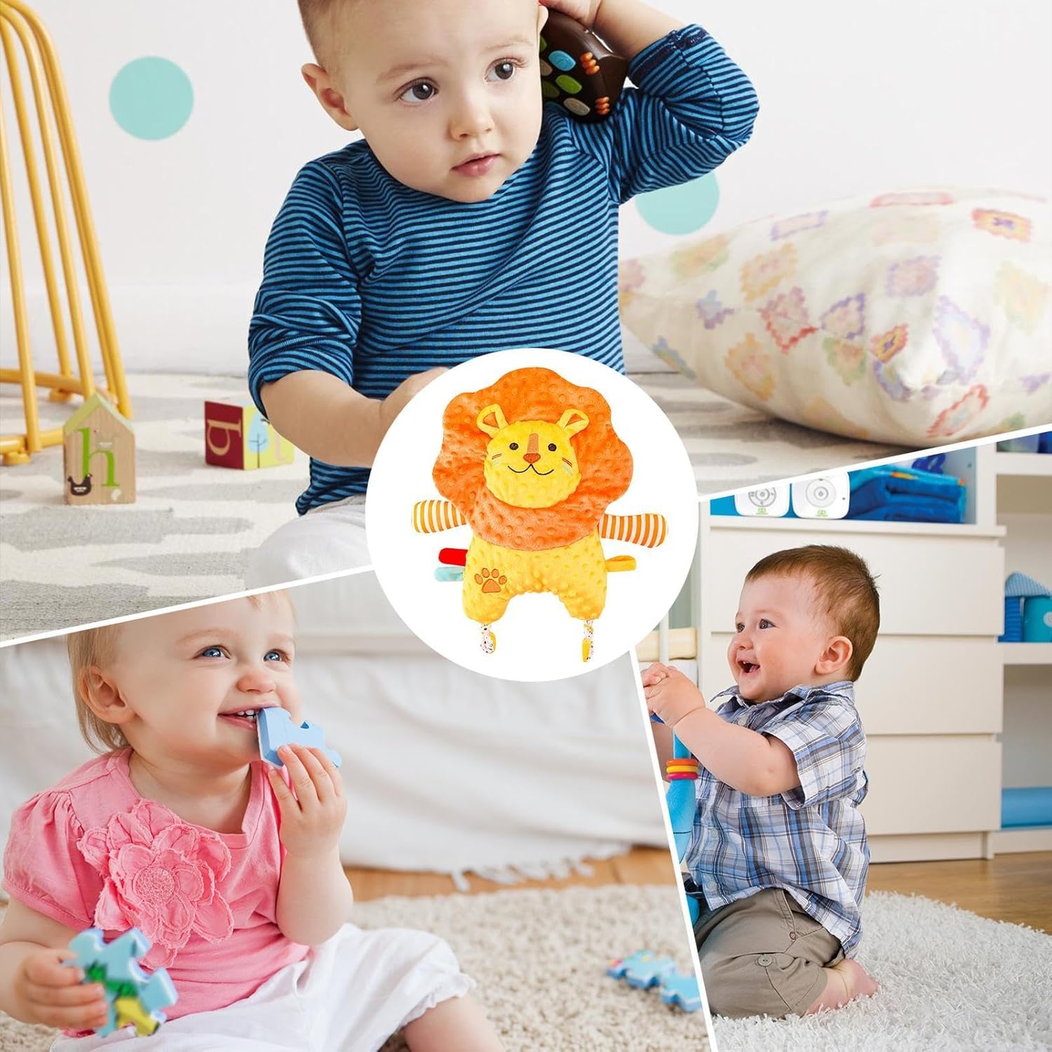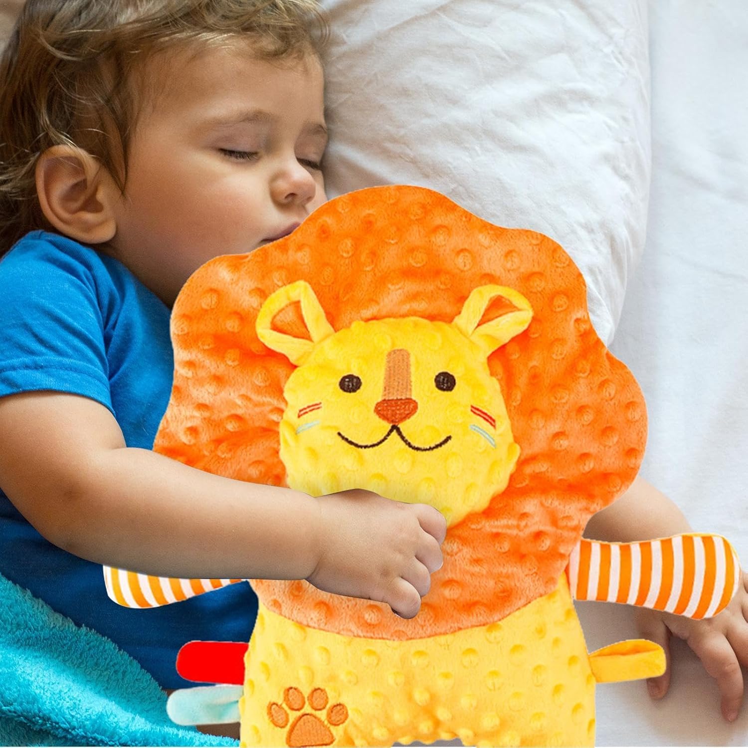 Dimensioni compatte e lenitivo: progettata per fornire un senso di sicurezza, la nostra coperta di sicurezza per bambini è adatta per mani piccole. Le sue dimensioni compatte assicurano che il tuo bambino possa sentirsi al sicuro e dormire sonni tranquilli, indipendentemente da dove si trovi Irresistibile compagno di gioco: caratterizzato da un affascinante design a forma di piccolo leone, questa coperta di sicurezza offre un comfort rilassante e giocoso per il tuo bambino. I suoi materiali ultra morbidi creano una sensazione calmante e sicura, mantenendo il tuo bambino felice e accogliente tutto il giorno Comfort duraturo: il tuo bambino apprezzerà la buona durata di questa coperta di sicurezza. Realizzato in eccellente fibra di poliestere, rimane morbido, non si deforma facilmente e non sbiadisce. Con il suo tessuto traspirante e confortevole, il tuo bambino adorerà coccolarsi giorno dopo giorno Compagno di comfort per bambini: genitori, allevia i problemi di sonno del tuo bambino con la nostra coperta di sicurezza per bambini. Fornisce un tocco delicato e un comfort psicologico, aiuta efficacemente i bambini a calmarsi e presenta un design multi-effetto che stimola il sonno per aiutarli ad addormentarsi più rapidamente Ampia applicazione: perfettamente progettato per l'uso in soggiorno, camera da letto o durante viaggi, passeggiate e viaggi su strada, assicurando che il tuo bambino si senta sicuro e accogliente