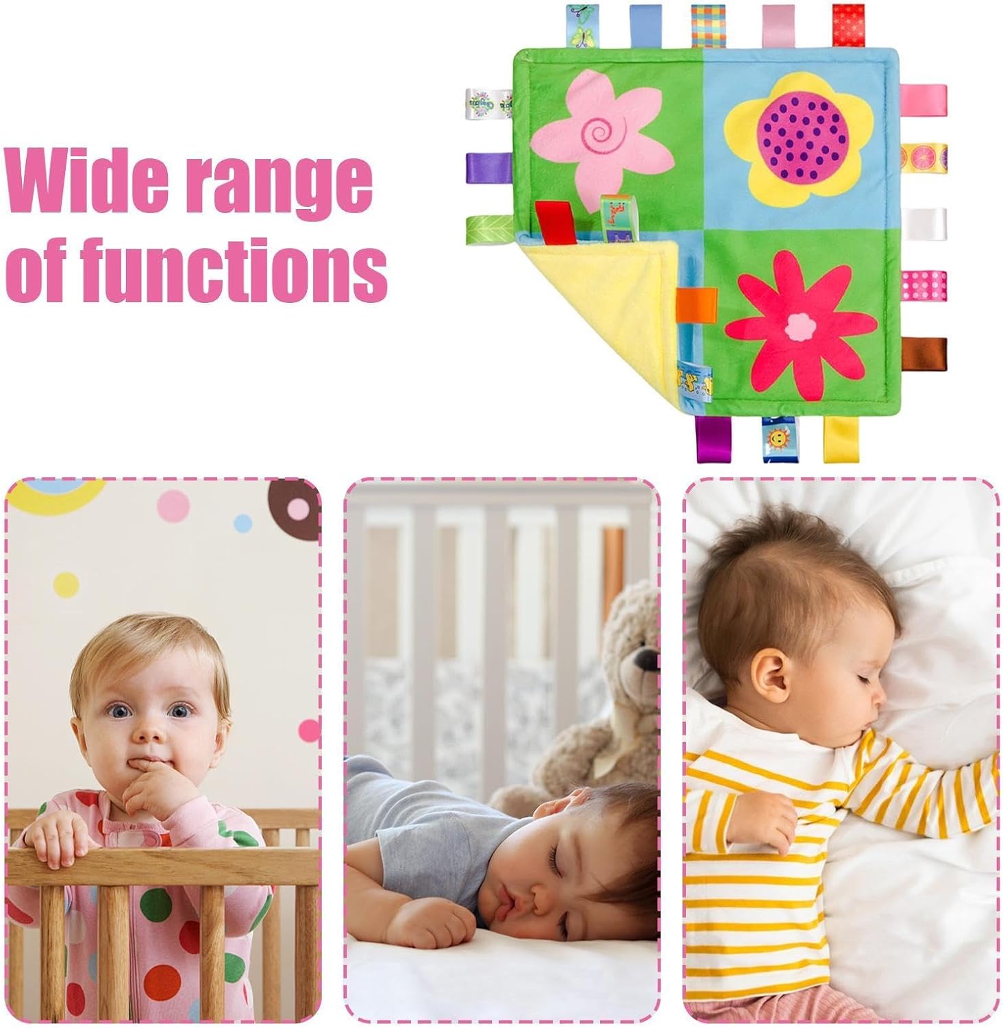 Facile da trasportare: con il suo design compatto e quadrato, questa coperta con ciondoli è facile da piegare, riporre e portare con sé. Perfetto per l'uso domestico o in viaggio e garantisce comfort e comodità in ogni situazione Accogliente e morbida: rendi questa morbida coperta con ciondoli un dolce amico del tuo bambino. È realizzato in materiale peluche, calma efficacemente e garantisce un'esperienza piacevole e accogliente che il tuo bambino adorerà Miglioramento del coinvolgimento sensoriale: la nostra coperta di sicurezza con tag è dotata di adorabili tag e incoraggia i bambini a afferrare ed esplorare le diverse trame. Questo favorisce lo sviluppo sensoriale e migliora le capacità motorie, rendendo l'esperienza di gioco ancora più emozionante Facile da usare: basta attaccare questa coperta con ciondolo al seggiolino auto o al portapacchi del tuo bambino, dopo averla associata a una catena di giocattoli per un maggiore divertimento e accessibilità Grazioso stile cartone animato: con colori vivaci e un divertente design a cartoni animati, questa coperta con ciondolo è un vero colpo d'occhio. I bambini adoreranno il suo aspetto divertente e amichevole, rendendolo un compagno ideale per giocare e coccolare