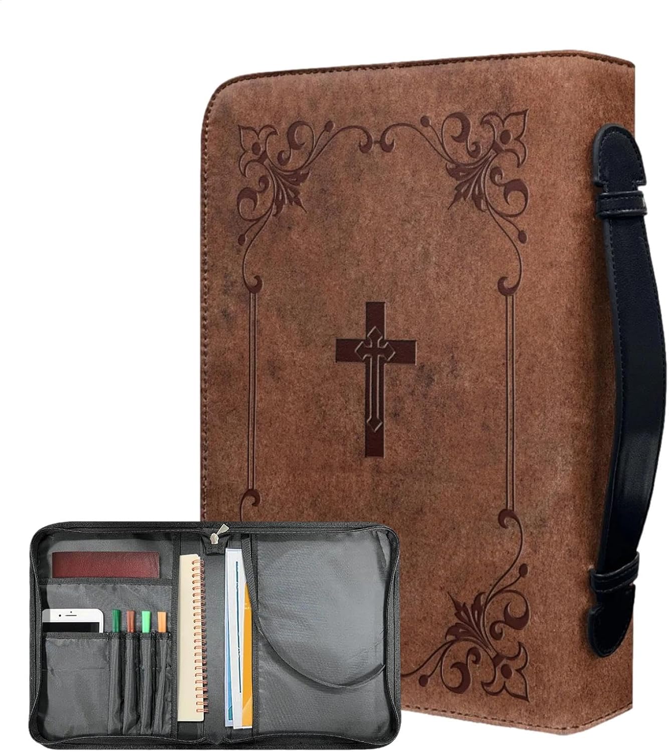 Protezione della Bibbia: mantieni il tuo libro sacro pulito e protetto da polvere, macchie e strappi grazie a questa custodia ed elegante. Proteggi e proteggi la tua Bibbia dalla polvere. Protezione robusta: per un uso di lunga durata, questa custodia biblica è realizzata in PU affidabile che non si deforma facilmente. Con una costruzione in materiale solido, è uno scudo affidabile per proteggere la tua Bibbia per lunghi periodi di tempo. Manutenzione senza problemi: adorerai la comodità di mantenere la tua custodia Bibbia grazie al materiale e impermeabile. Basta pulirlo con un panno umido per una pulizia senza sforzo ogni volta che si sporca. Ampio utilizzo: sia che tu stia viaggiando, in chiesa o studiando, questa custodia biblica può ospitare facilmente libri di piccole o grandi, bibbie o quaderni. Idea regalo: sorprendi i tuoi cari con questa custodia Bibbia di alta qualità. Progettato per proteggere le loro preziose scritture da polvere, acqua e usura, è un regalo attento e utile per ogni occasione. Ideale per ragazzi e ragazze che amano leggere la Bibbia.