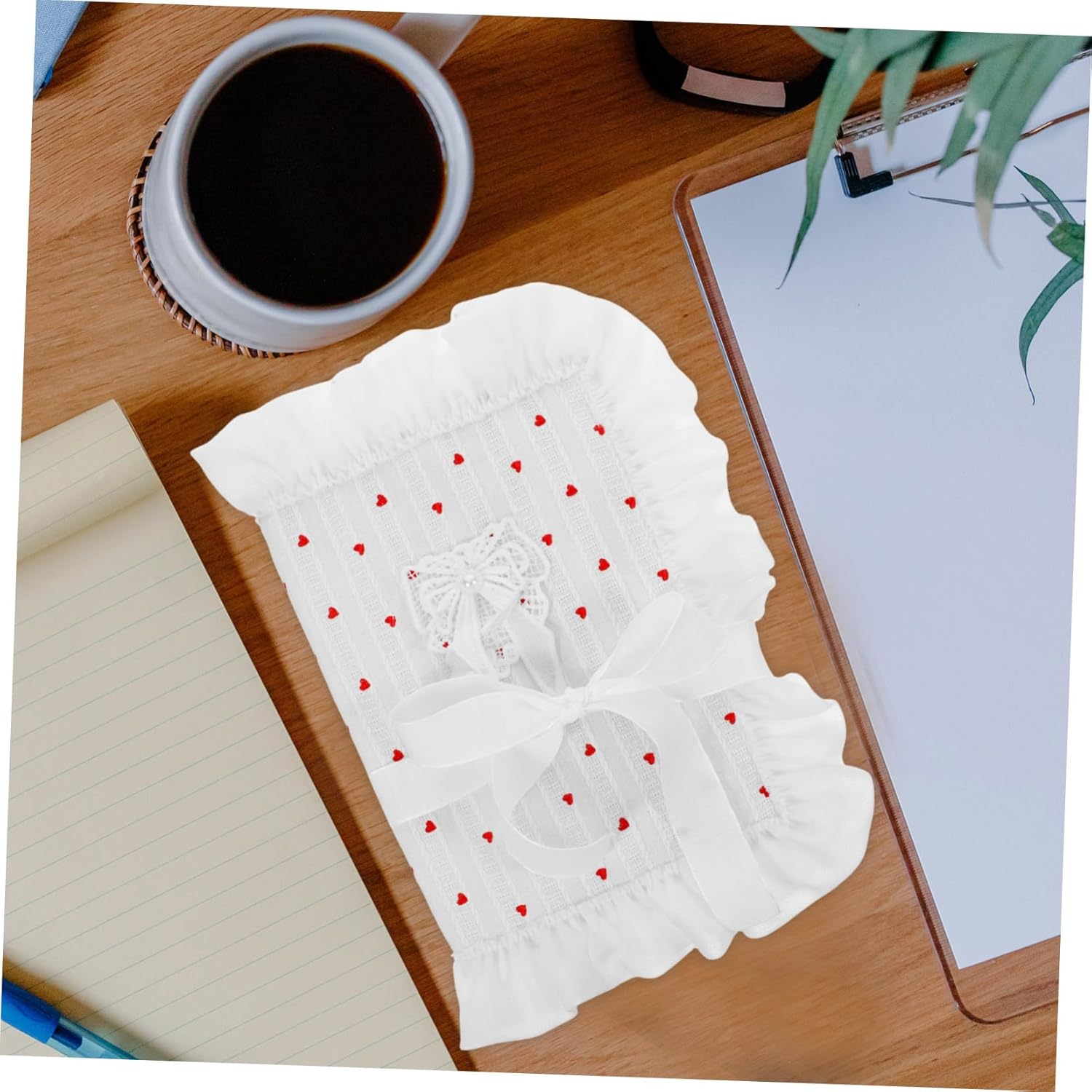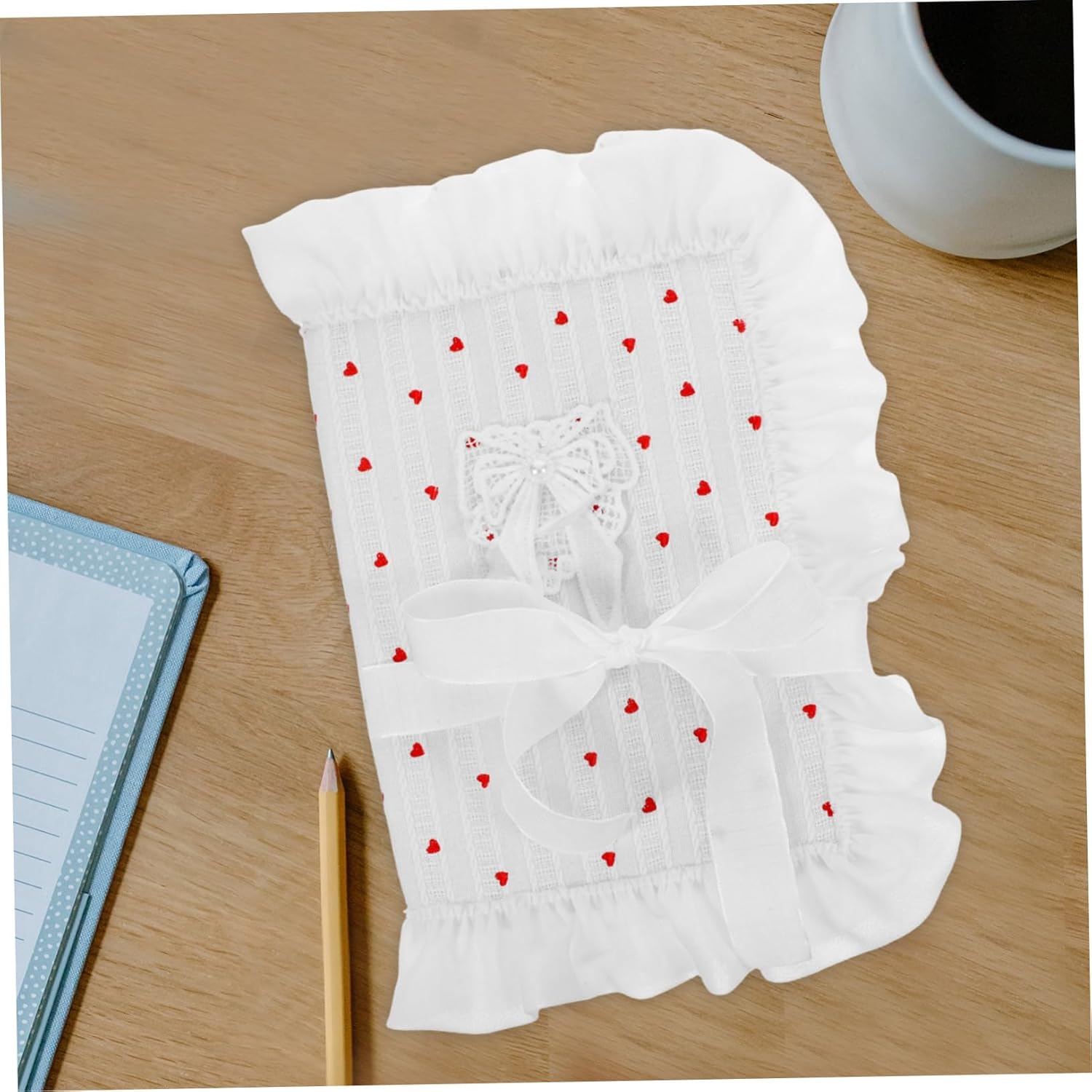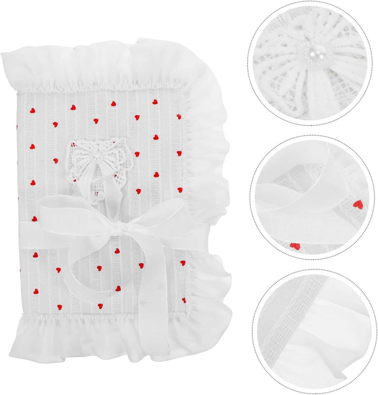 Tessuto morbido: tessuto delicato realizzato, questa elegante copertina per libri offre una sensazione morbida e confortevole, protezione per libri, copertine per libri con copertina rigida Funzionalità versatile: adatta per agende, quaderni e diari, per soddisfare varie esigenze organizzative, stoffa per libri, copertina per libri in tessuto Dimensioni stile individuale: il design unico ti consente di evidenziare il tuo stile personale e fare una dichiarazione con gli accessori del tuo libro, Custodia per copertina di libro, Copertine di libri per libri tascabili Fiocco alla moda: il design alla moda con fiocco in tessuto migliora lo stile dei tuoi libri, rendendoli più attraenti, custodia per libri per gli amanti dei libri, custodia per libri Motivo a cuore: il motivo a cuore sulla copertina del libro crea un'atmosfera calda e romantica, adatta per quaderni, protezioni per libri, quaderni con copertina in stoffa