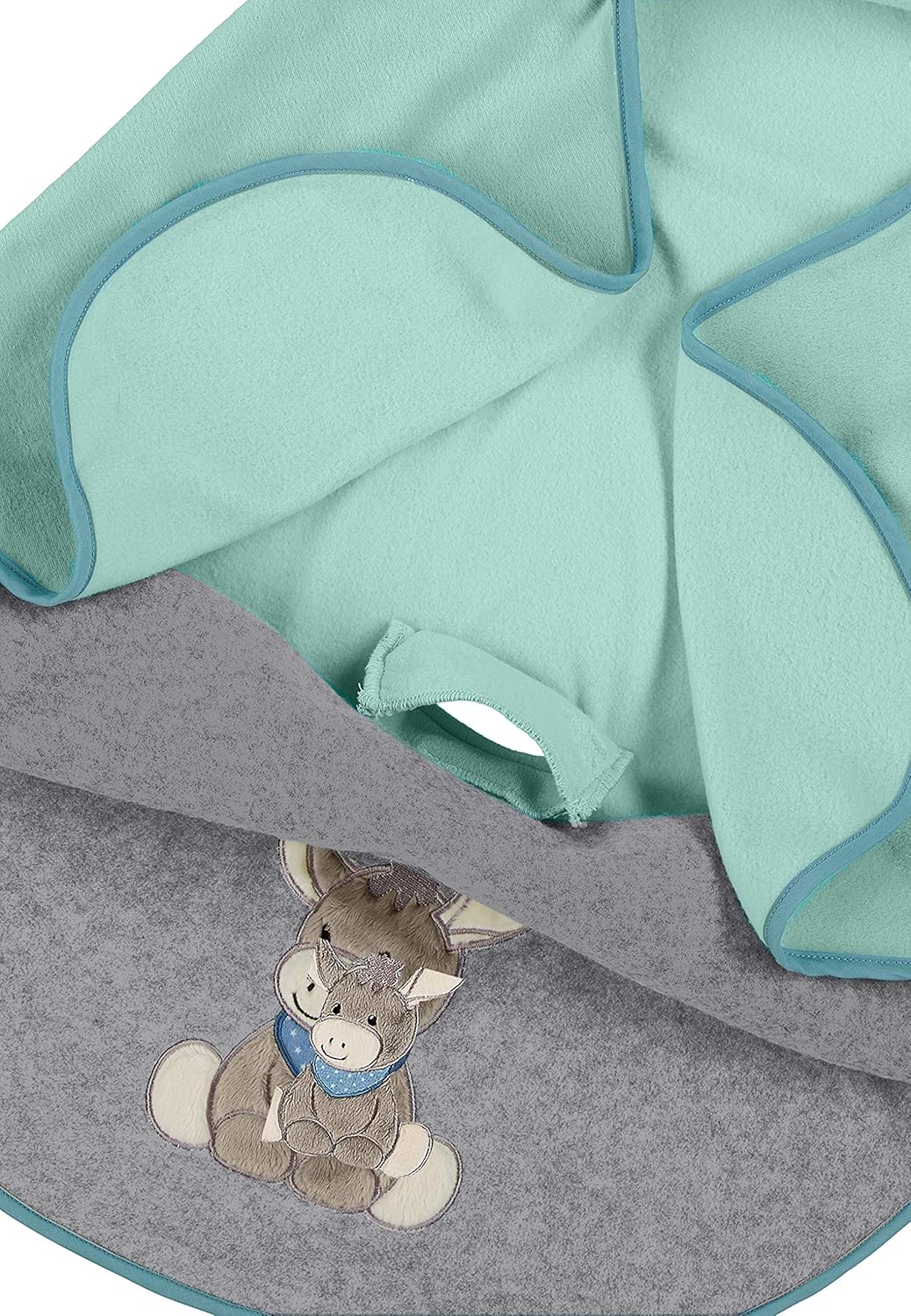 Grande copertina per neonati con Emmi L’Asinello Multifunzionale: Come copertina o poncho con cappuccio, Ideale per le diverse temperature Asole per la cintura integrate (allacciatura in 3 punti) per utilizzarlo nella carrozzina o nel passeggino, Morbido materiale per un comfort maggiore Lavorazione di alta qualità: Tessuto esterno: 100% poliestere; Rivestimento: 95% cotone, 5% elastan; Ricamo: 100% poliestere, Lavabile in lavatrice a 40 °C Contiene: 1x Sterntaler Copertina avvolgente, Emmi L'Asinello, Età: Per neonati, 75 x 90 cm, Multicolore