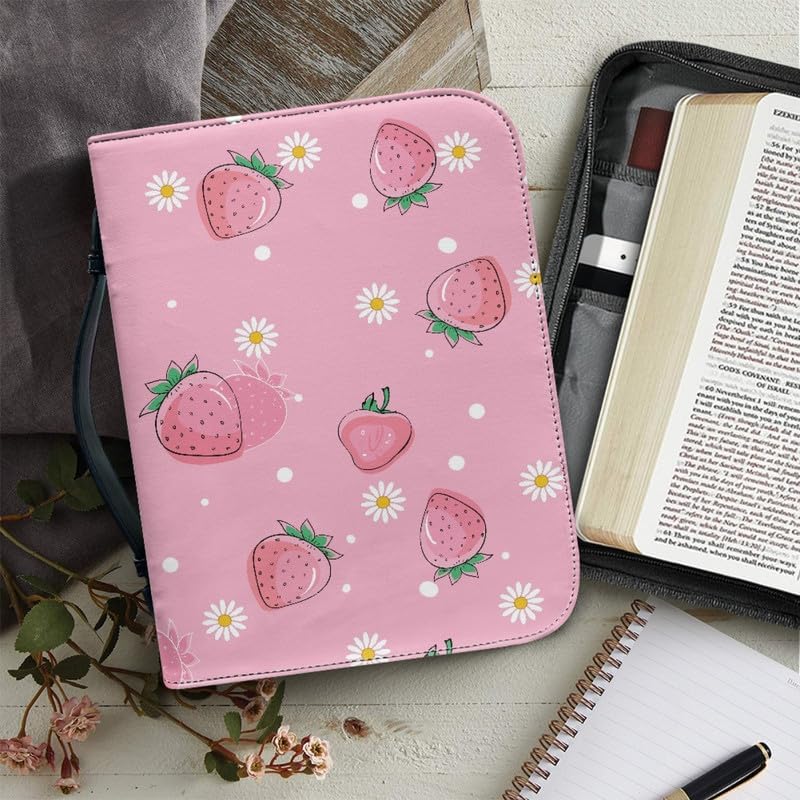 Copertina per libri con copertina per libri e bibbia con margherita e fragole rosa, per culto - 2XL