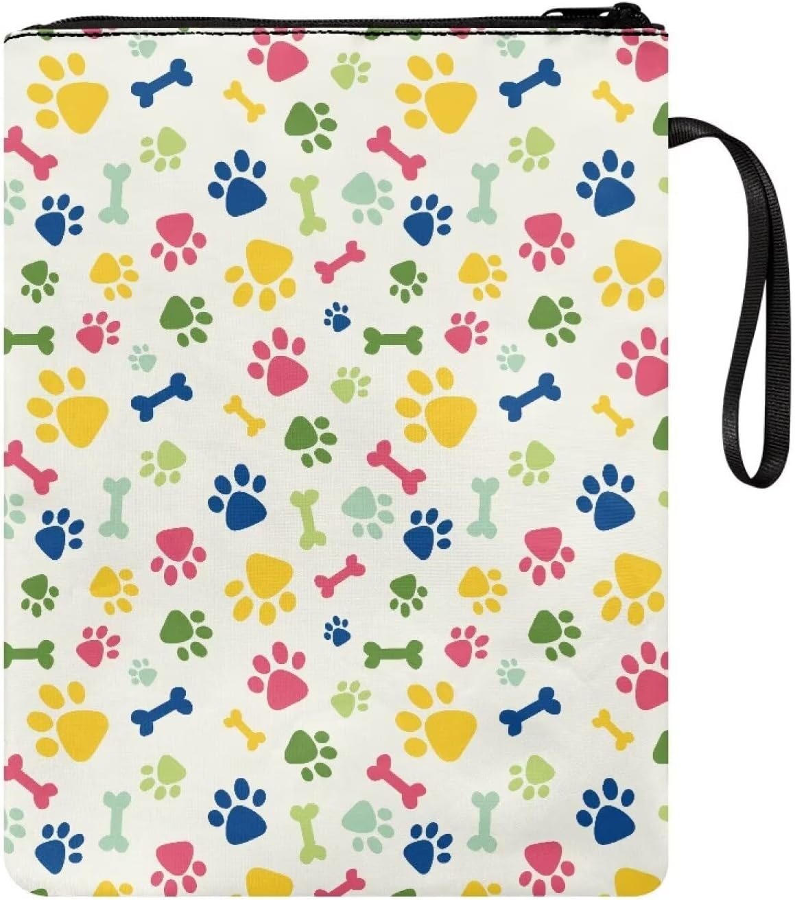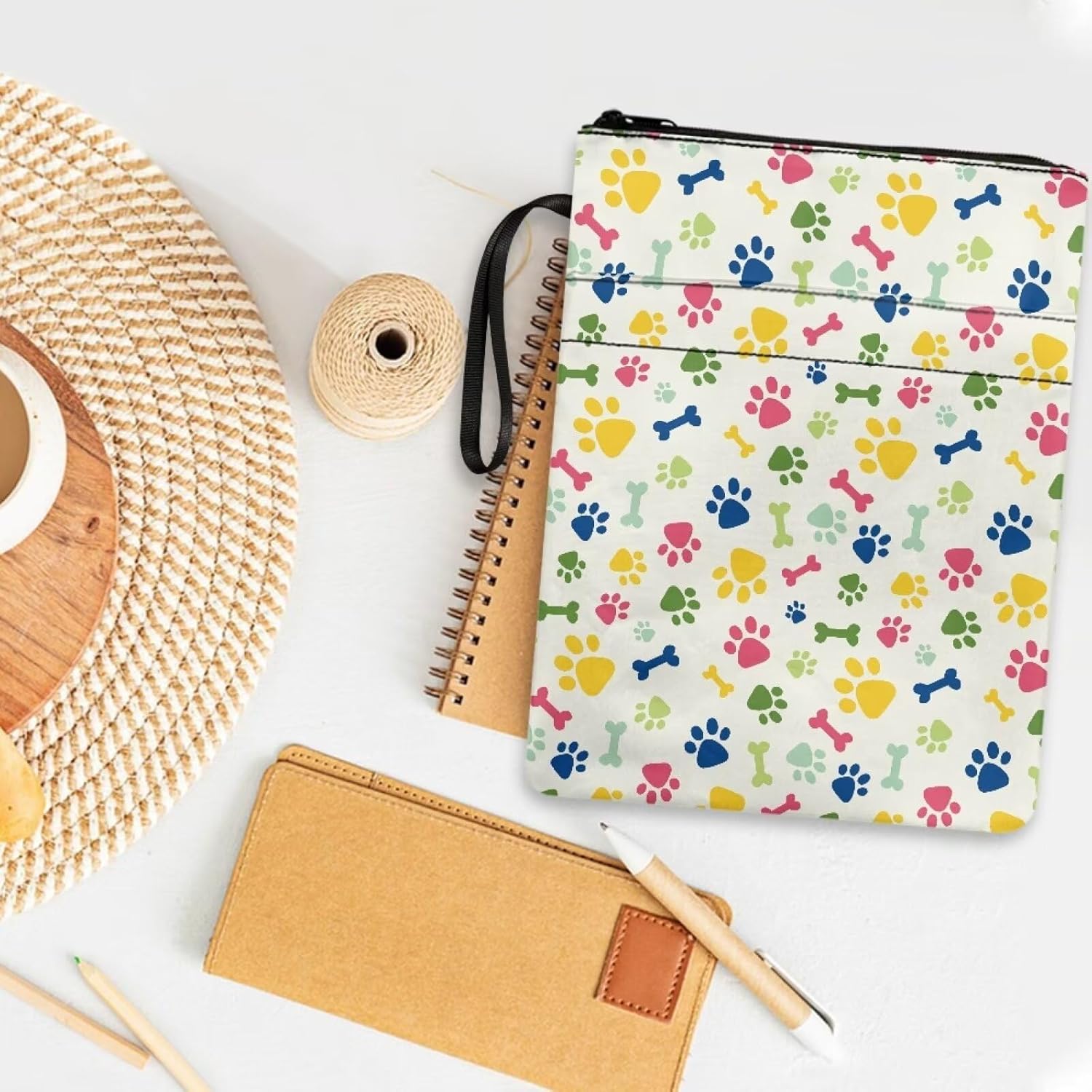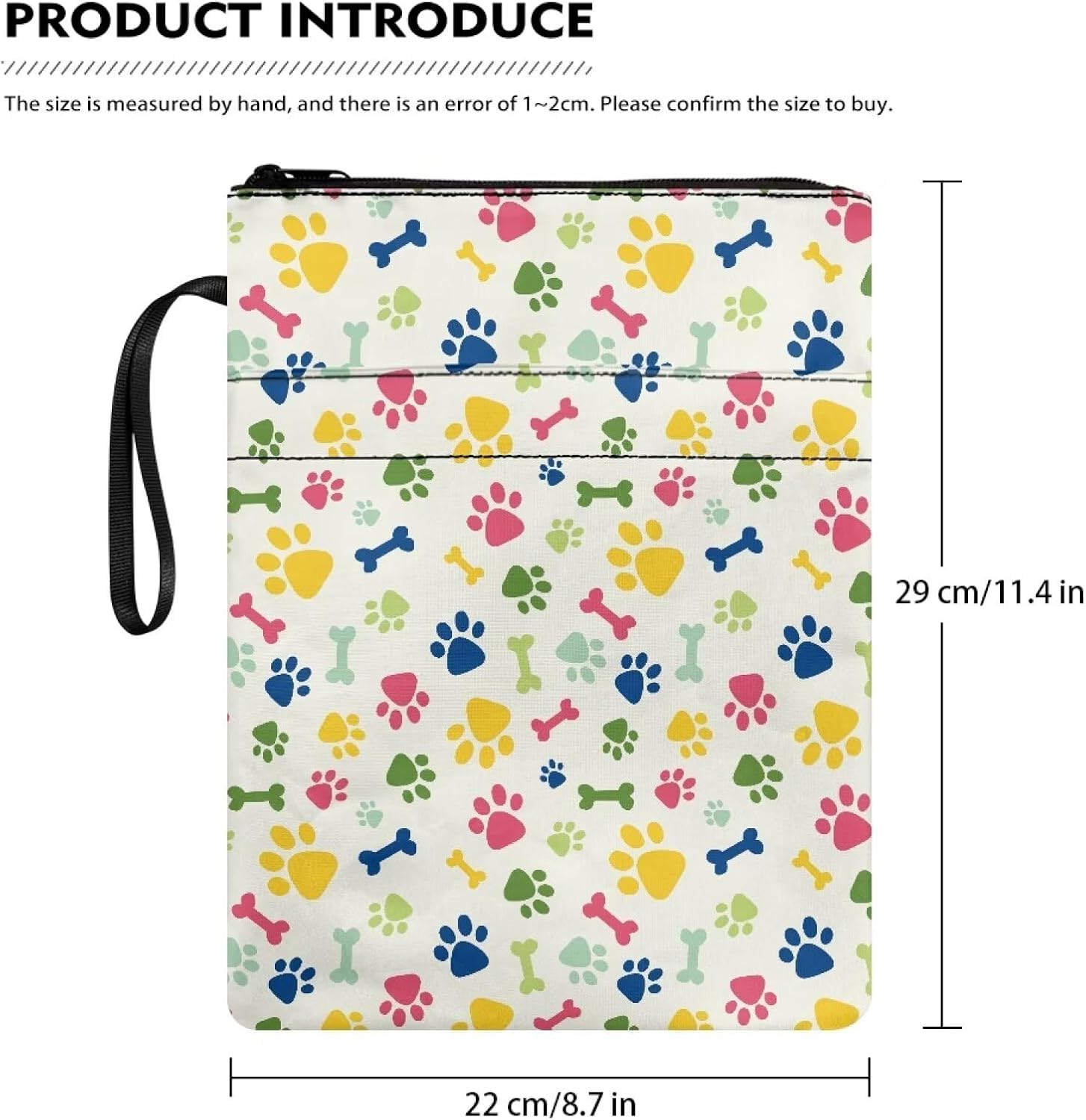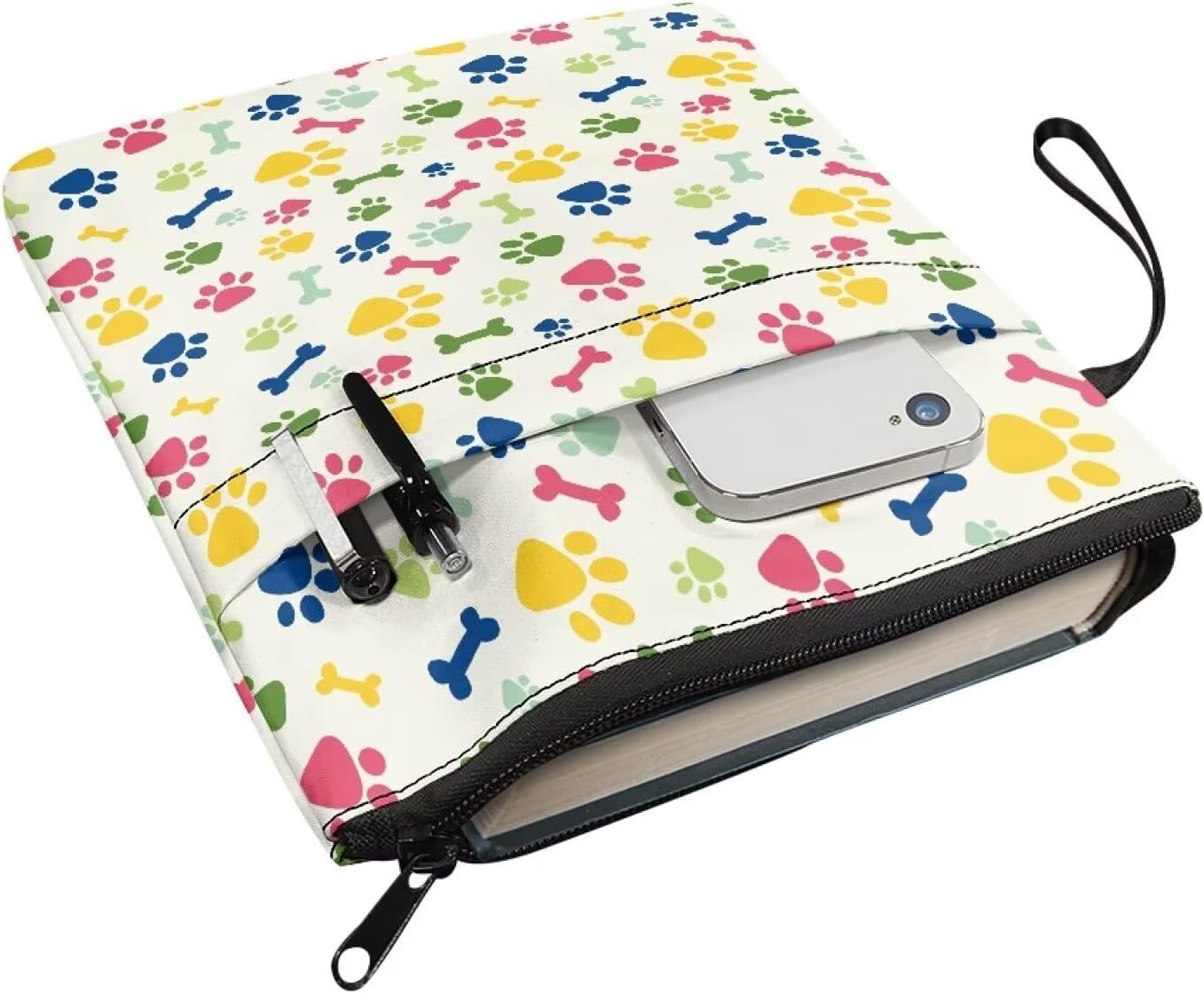 Copertina per libri con manico laterale, per donne e ragazze, accessori da viaggio portatili, grandi custodie protettive per libri per gli amanti dei libri, osso colorato a forma di zampa