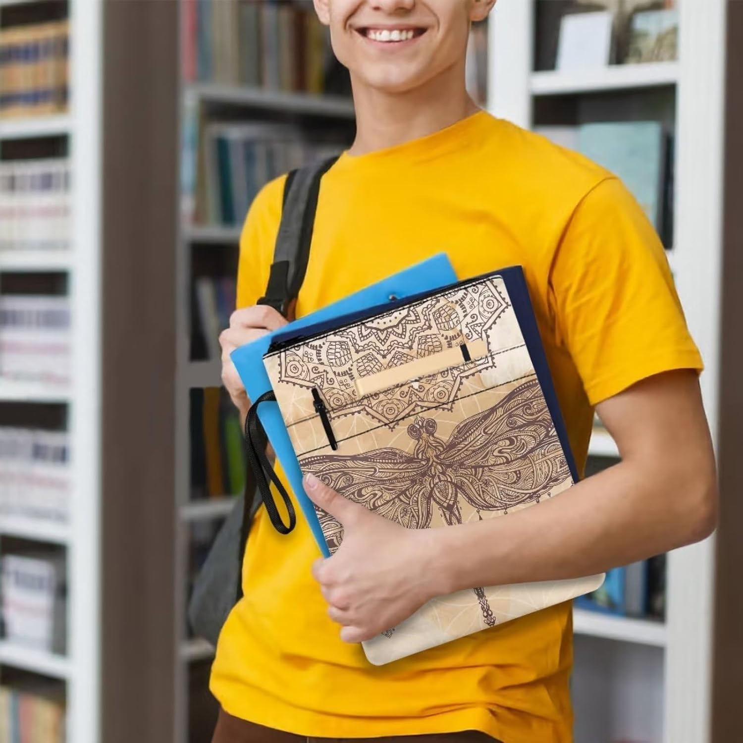 Copertina per libri con motivo mandala con libellula, stile bohémien, con cerniera, con tasca frontale, 29 x 22 cm, per gli amanti dei libri nerd