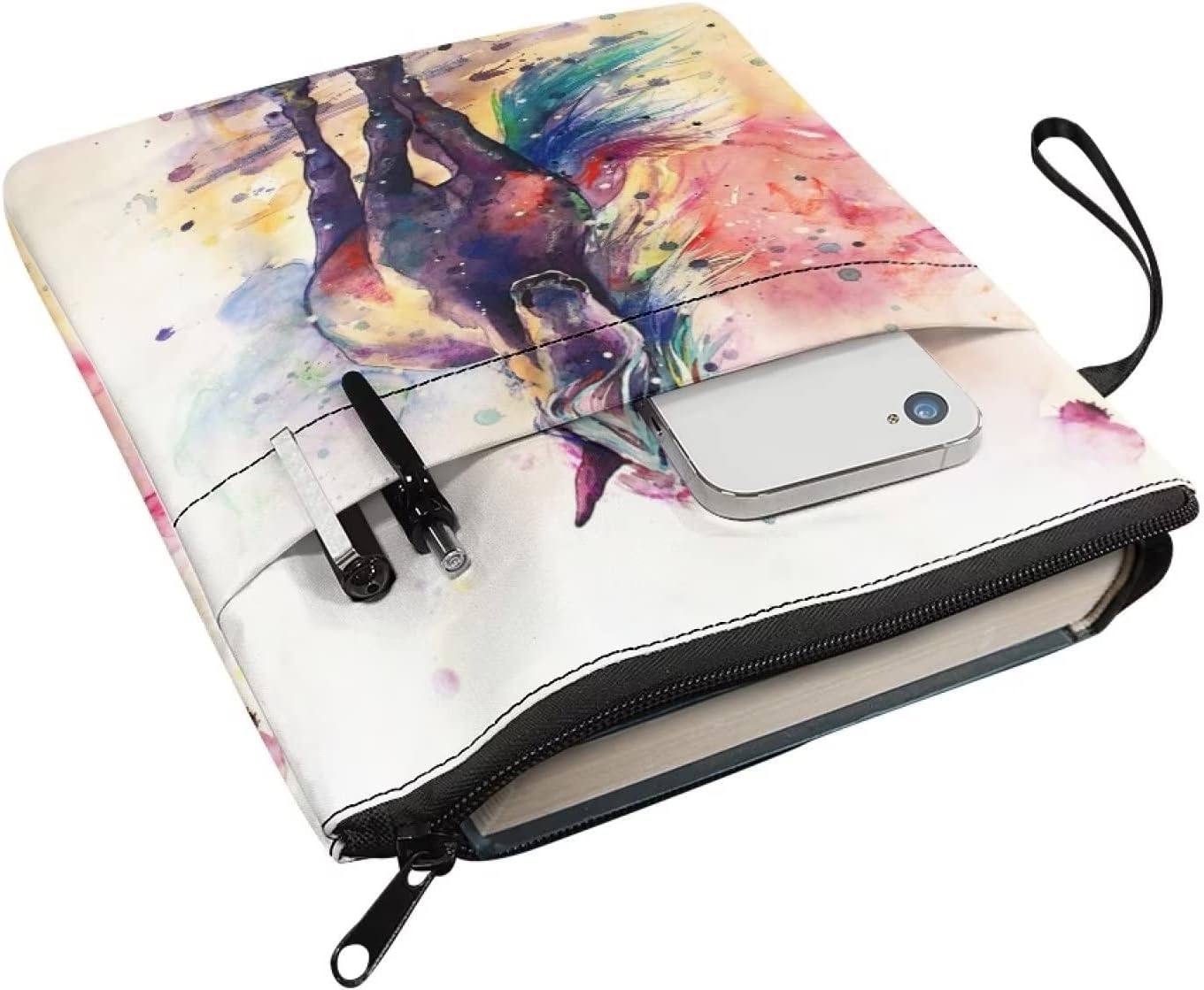 Materiale di alta qualità: realizzata in poliestere di alta qualità, la nostra custodia per libri è morbida, confortevole e resistente all'usura. È progettato per durare, garantendo una protezione duratura per i tuoi amati libri. Perfetto per lettori di tutte le età, dai bambini agli adulti. Dimensioni: queste copertine per libri di testo sono elastiche per i tuoi libri fino a 29 x 22,1 cm e si adattano alla maggior parte dei libri autopubblicati, libri tascabili standard, libri tascabili di massa e copertine rigide normali. Assicurati di misurare il tuo articolo prima dell'acquisto per assicurarti che funzioni per te. Facilmente applicabile e riutilizzabile: il nostro calzino per libri è super facile da usare e facilmente rimovibile. Non richiede nastro adesivo o taglio. Quindi puoi usarlo ancora e ancora. Le tecniche di cucitura professionali e le cinghie lisce con cerniera rendono la custodia con cerniera più delicata e resistente. Organizer multiuso: può essere utilizzato come copertina per libri, porta bibbia, giornale, copertina per libri in brossura, borsa per documenti, valigetta, borsa per cosmetici, piccola custodia da viaggio, mini custodia per tablet, borsa per libri di studio biblico, ecc. Regalo perfetto per il ritorno a scuola: le copertine dei libri hanno una varietà di motivi tra cui scegliere, simpatico animale, panda, cavallo, farfalla, floreale hippie, girasole, galassia, marmo, stampa leopardata, stampa mucca, fungo, ecc. È un'ottima scelta per bambini, studenti e amanti dei libri. Adatto per uffici, scrivanie e scuole.