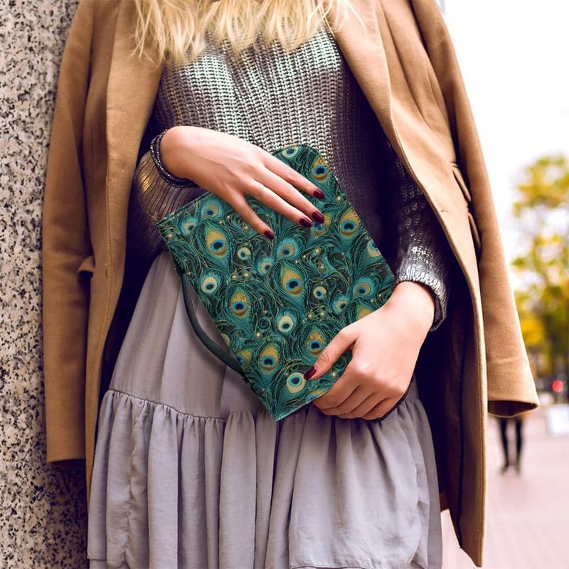 Copertina per libri da uomo con piume di pavone turchese, stile bohémien, elegante, per libri e libri di studio d'arte moderna - XL