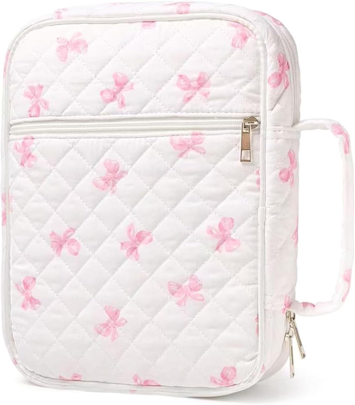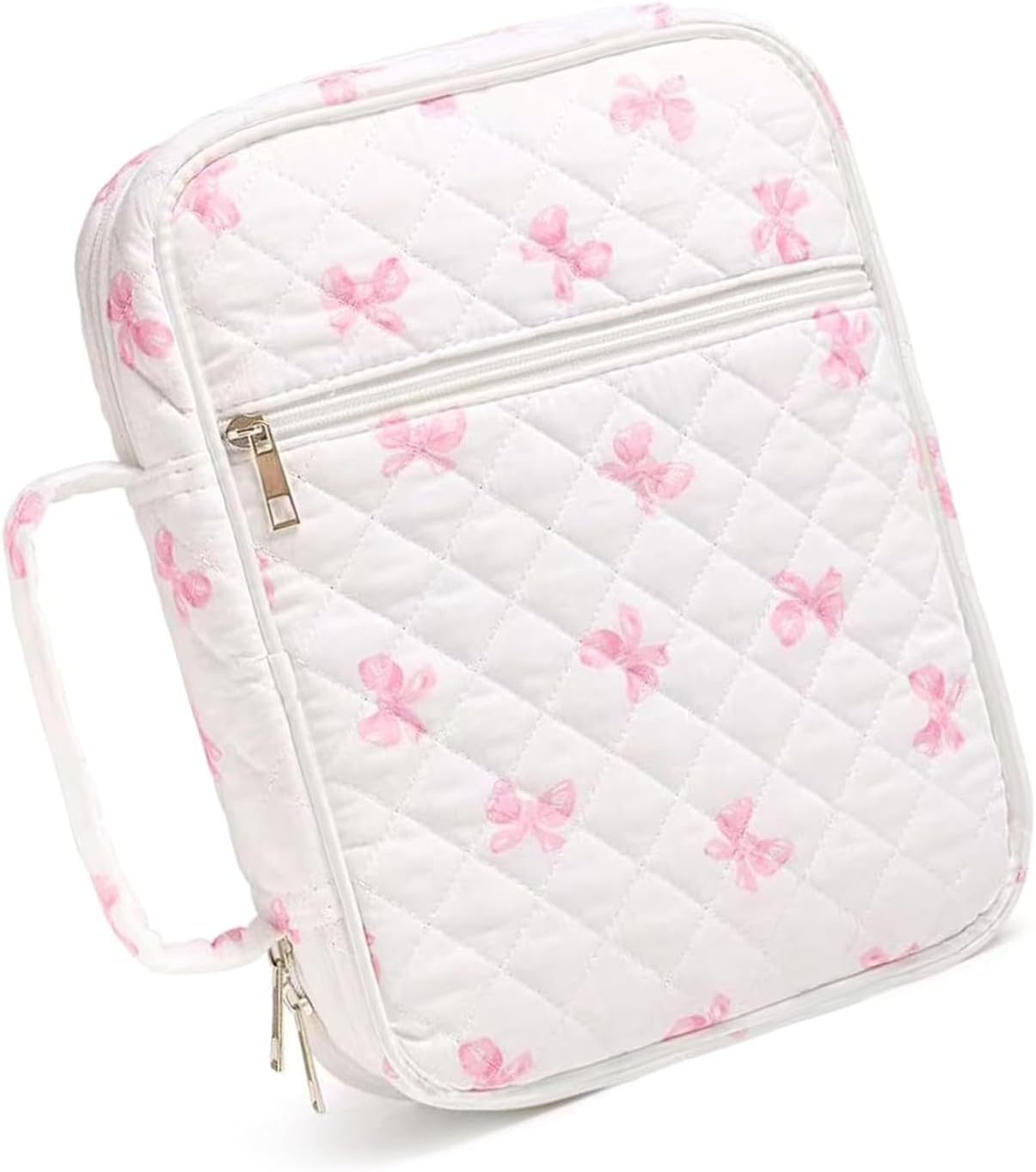 La copertina in cotone trapuntato di alta qualità con morbida fodera in microfibra offre protezioni a prova e durata duratura per libri di studio medio/grandi durante i viaggi. Dispone di chiusura a zip avvolgente, doppi scomparti per libri, tasche multiple per articoli di cancelleria e maniglie in cotone per un accesso organizzato alle scritture. Ideale per donne e ragazze che cercano accessori eleganti ma funzionali per attività e riunioni basate sulla fede. compagno per progetti di studio, servizi domenicali o devozionali quotidiani a casa, lavoro o avventure all'aria aperta. Borsa progettata con cura con motivi trapuntati a scacchi serve come regalo significativo per cresima, battesimi o celebrazioni.