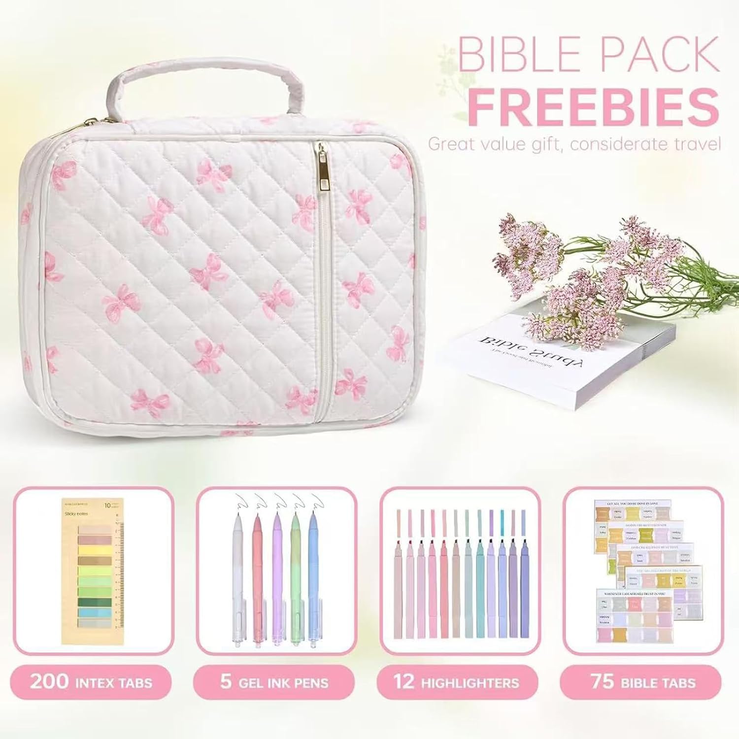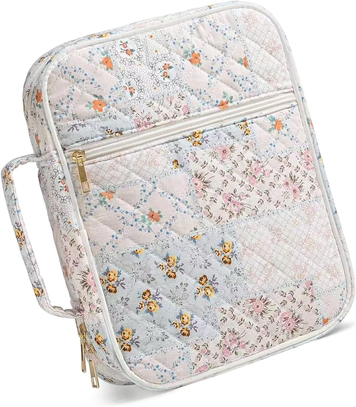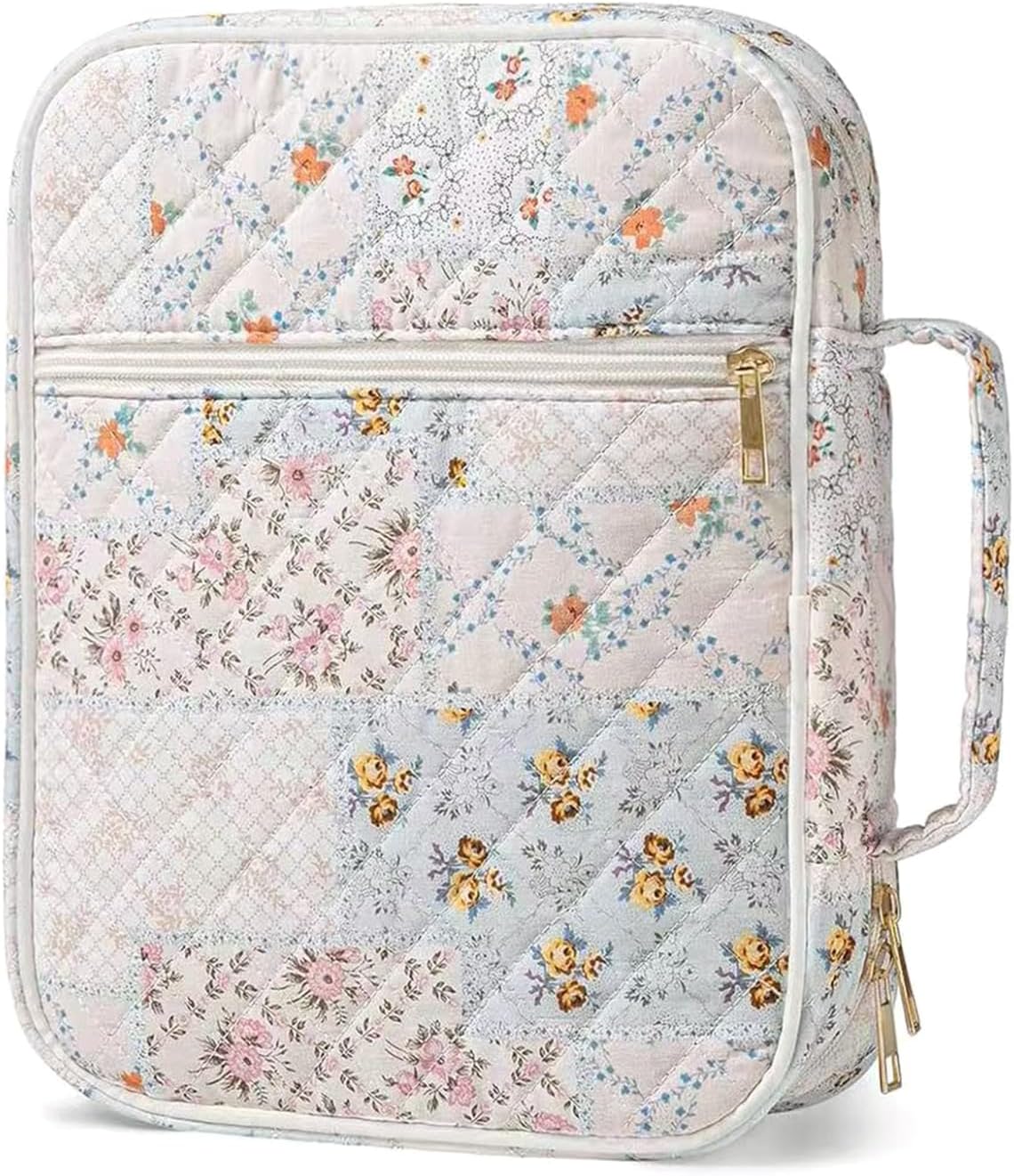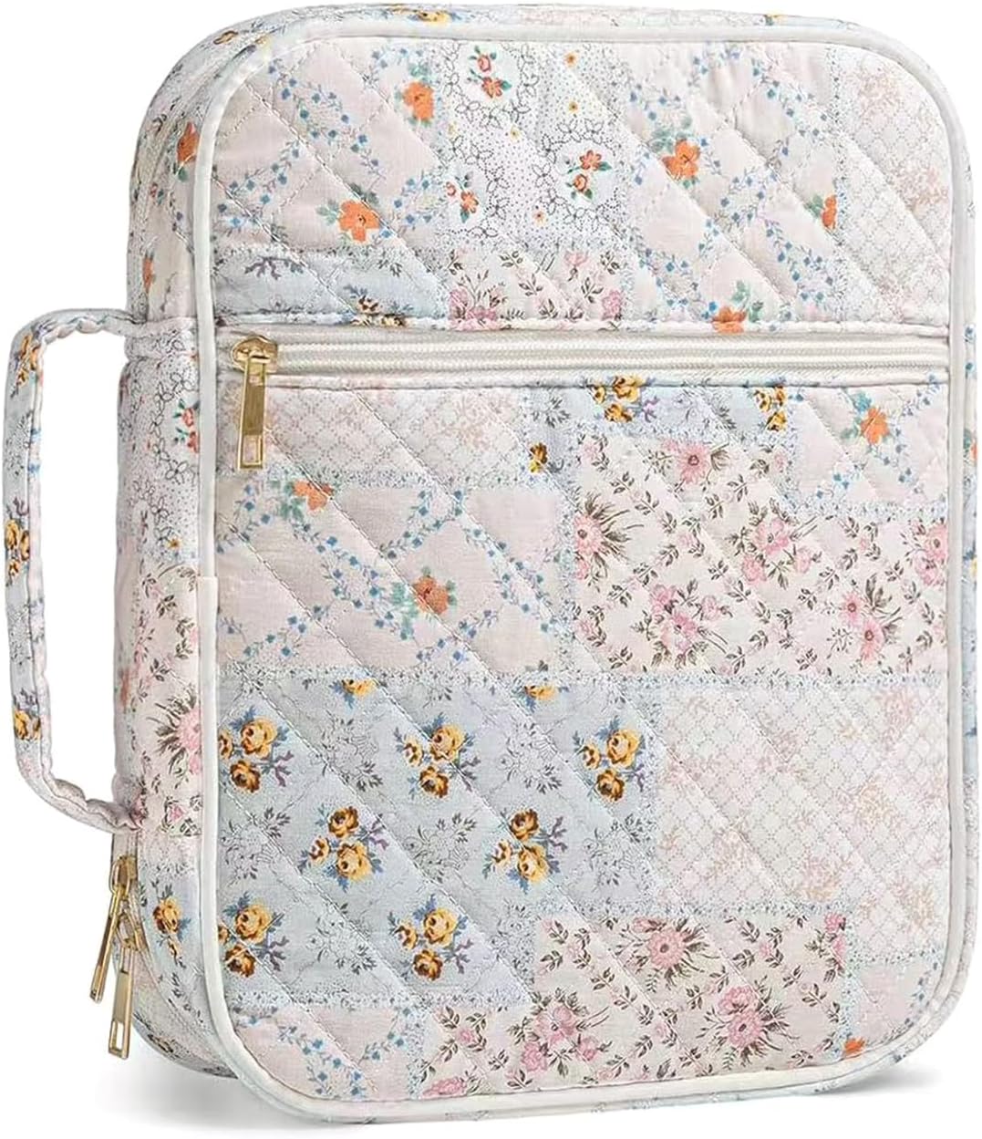 La copertina in cotone trapuntato di alta qualità con morbida fodera in microfibra offre protezioni a prova e durata duratura per libri di studio medio/grandi durante i viaggi. Dispone di chiusura a zip avvolgente, doppi scomparti per libri, tasche multiple per articoli di cancelleria e maniglie in cotone per un accesso organizzato alle scritture. Ideale per donne e ragazze che cercano accessori eleganti ma funzionali per attività e riunioni basate sulla fede. compagno per progetti di studio, servizi domenicali o devozionali quotidiani a casa, lavoro o avventure all'aria aperta. Borsa progettata con cura con motivi trapuntati a scacchi serve come regalo significativo per cresima, battesimi o celebrazioni.