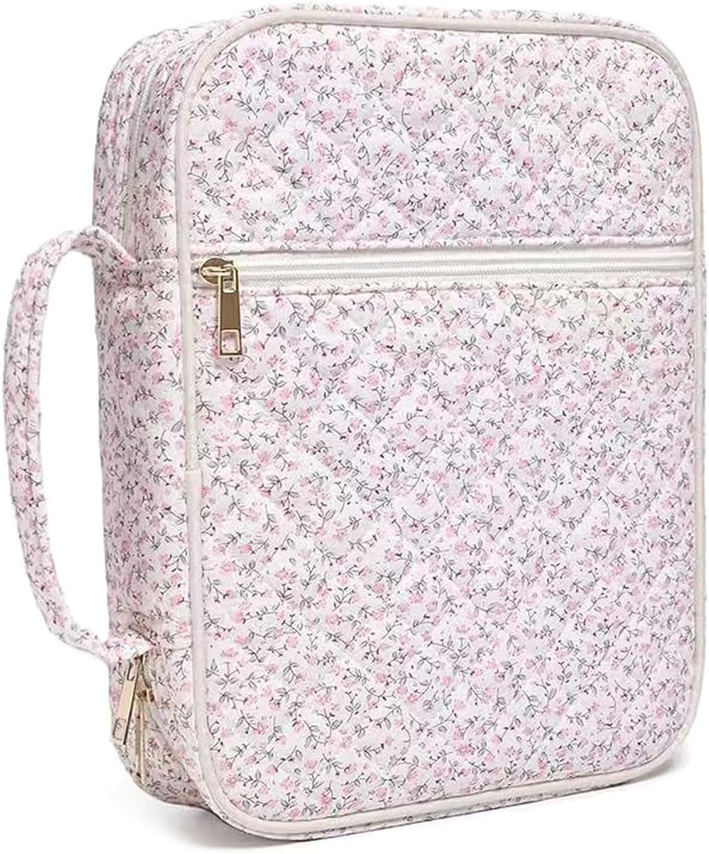La copertina in cotone trapuntato di alta qualità con morbida fodera in microfibra offre protezioni a prova e durata duratura per libri di studio medio/grandi durante i viaggi. Dispone di chiusura a zip avvolgente, doppi scomparti per libri, tasche multiple per articoli di cancelleria e maniglie in cotone per un accesso organizzato alle scritture. Ideale per donne e ragazze che cercano accessori eleganti ma funzionali per attività e riunioni basate sulla fede. compagno per progetti di studio, servizi domenicali o devozionali quotidiani a casa, lavoro o avventure all'aria aperta. Borsa progettata con cura con motivi trapuntati a scacchi serve come regalo significativo per cresima, battesimi o celebrazioni.