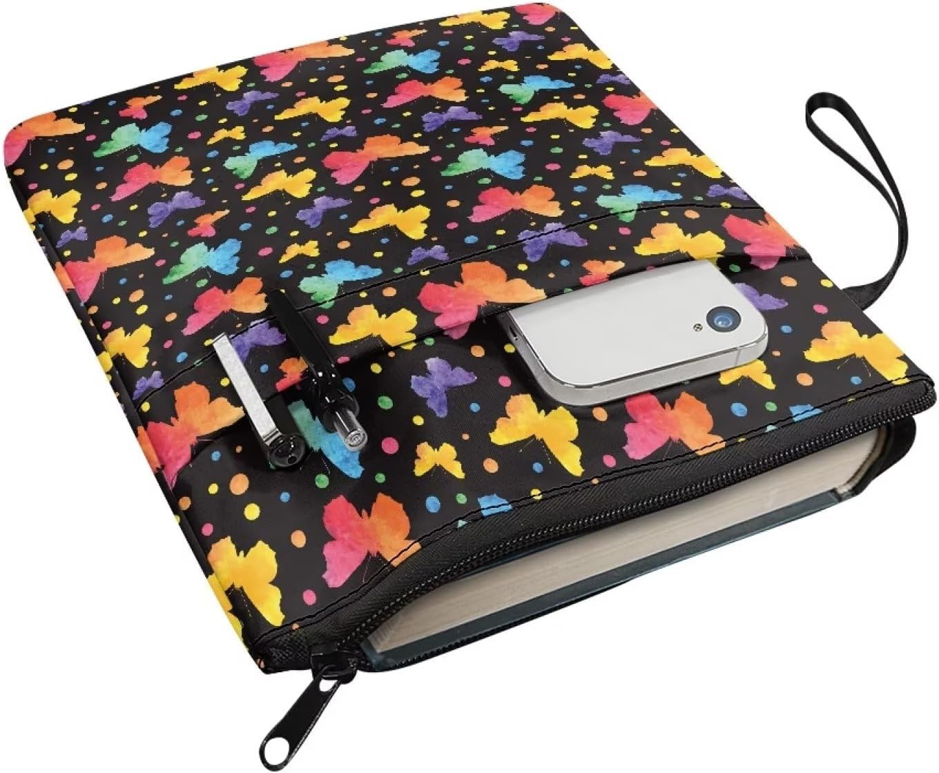 Materiale di alta qualità: realizzata in poliestere di alta qualità, la nostra copertina per libri è morbida, confortevole e resistente all'usura. È progettato per durare e garantisce una protezione duratura per i tuoi amati libri. Perfetto per lettori di tutte le età, dai bambini agli adulti. Dimensioni: queste copertine per libri di testo si estendono per adattarsi ai tuoi libri fino a 11,5 x 8,5 pollici e si adattano alla maggior parte dei libri autopubblicati, tascabili standard, tascabili sfusi e copertine rigide regolari. Assicurati di misurare il tuo articolo prima dell'acquisto per assicurarti che funzioni per te. FACILE DA INSTALLARE E RIUTILIZZABILE - Il nostro calzino per libri è semplicissimo da usare e facilmente rimovibile. Non è necessario incollare o tagliare. Quindi puoi usarlo ancora e ancora. Le tecniche di cucito professionali e le cinghie lisce con cerniera rendono la borsa per libri con cerniera più delicata e resistente. ORGANIZZATORE MULTIUSO: Può essere utilizzato come copertina per libri, porta Bibbia, copertina per diario, copertina tascabile, borsa per documenti, borsa per cosmetici, piccola borsa da viaggio, custodia per mini tablet, studio della Bibbia, borsa per libri, ecc. Adatto per uffici, scrivanie e scuole.