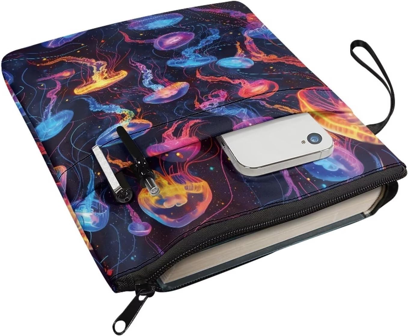Materiale di alta qualità: realizzata in poliestere di alta qualità, la nostra custodia per libri è morbida, confortevole e resistente all'usura. È progettato per durare, garantendo una protezione duratura per i tuoi amati libri. Perfetto per lettori di tutte le età, dai bambini agli adulti. Dimensioni: queste copertine per libri di testo sono elastiche per i tuoi libri fino a 29 x 22,1 cm e si adattano alla maggior parte dei libri autopubblicati, libri tascabili standard, libri tascabili di massa e copertine rigide normali. Assicurati di misurare il tuo articolo prima dell'acquisto per assicurarti che funzioni per te. Facilmente applicabile e riutilizzabile: il nostro calzino per libri è super facile da usare e facilmente rimovibile. Non richiede nastro adesivo o taglio. Quindi puoi usarlo ancora e ancora. Le tecniche di cucitura professionali e le cinghie lisce con cerniera rendono la custodia con cerniera più delicata e resistente. Organizer multiuso: può essere utilizzato come copertina per libri, porta bibbia, giornale, copertina per libri in brossura, borsa per documenti, valigetta, borsa per cosmetici, piccola custodia da viaggio, mini custodia per tablet, borsa per libri di studio biblico, ecc. Regalo perfetto per il ritorno a scuola: le copertine dei libri hanno una varietà di motivi tra cui scegliere, simpatico animale, panda, cavallo, farfalla, floreale hippie, girasole, galassia, marmo, stampa leopardata, stampa mucca, fungo, ecc. È un'ottima scelta per bambini, studenti e amanti dei libri. Adatto per uffici, scrivanie e scuole.