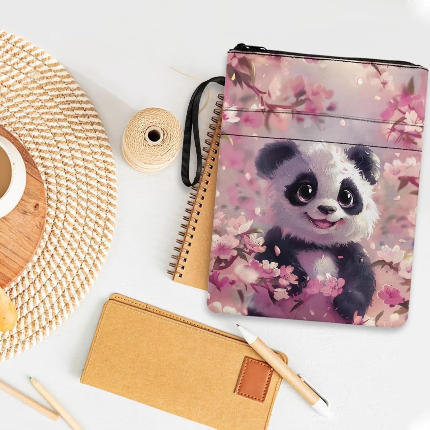 Copertina per libro Grunge A Girasole Copertina Rigida e Corda ABag Donne Uomini Storage Puse Outdoor Studio Libri Protector Pounch con Cerniera, Panda Cherry Blossom1586, 1 Pieces, Classico