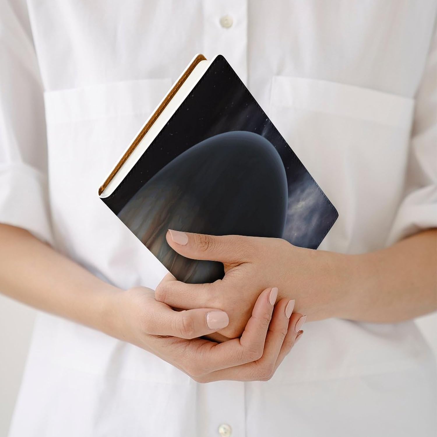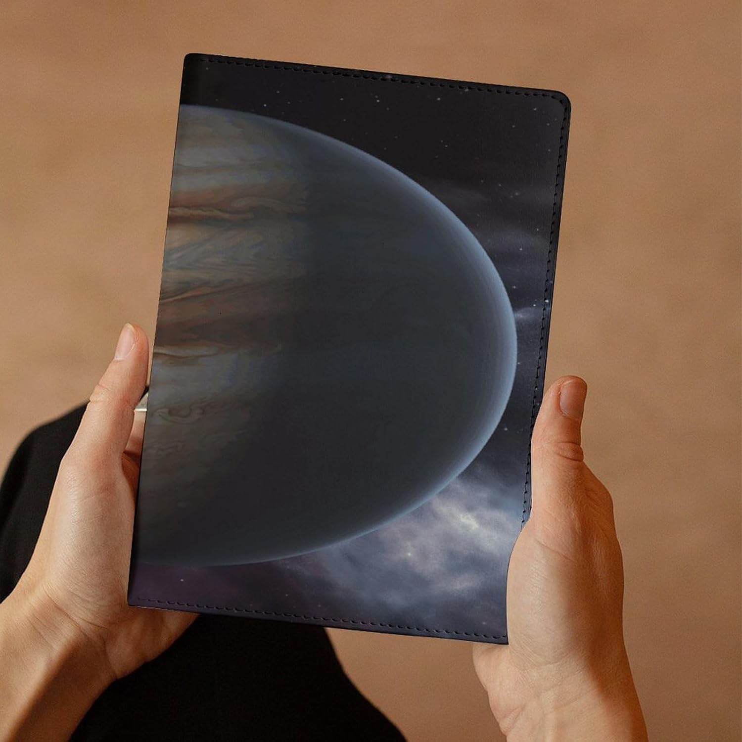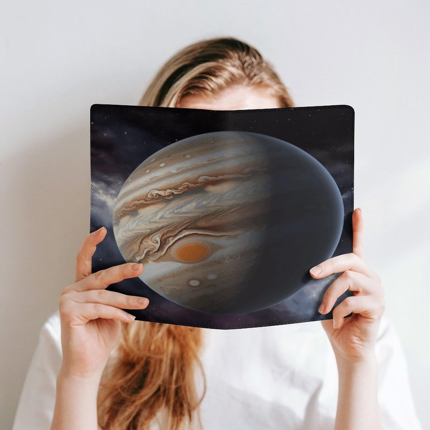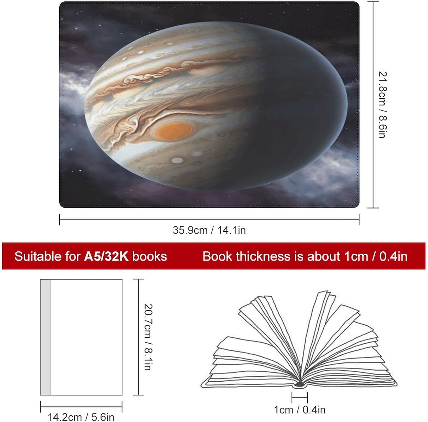 Design: copertine per quaderni da viaggio, il design robusto offre un'eccellente protezione per il tuo diario. Formato orizzontale Jupiter stampato, copertina del libro elastica, materiale di rivestimento morbido, può evitare l'attrito sui libri. Materiale: copertina del libro resistente realizzata in morbida ecopelle di alta qualità, impermeabile. La classica copertina per notebook è realizzata con tecnologia di stampa UV e ha un aspetto raffinato. Applicazione: le copertine in pelle per diari sono dotate di design interessanti, adatte agli studenti per imparare e utilizzare, le copertine per notebook da donna sono adatte anche per l'uso in uffici, scuole o altrove REGALI - Le copertine impermeabili per notebook sono oggetti di uso quotidiano. La copertina dell'agenda è adatta come regalo per amici, colleghi o bambini. Uso e pulizia: la copertina del libro può essere utilizzata ripetutamente. Si consiglia di pulire e pulire regolarmente la copertina in pelle del notebook