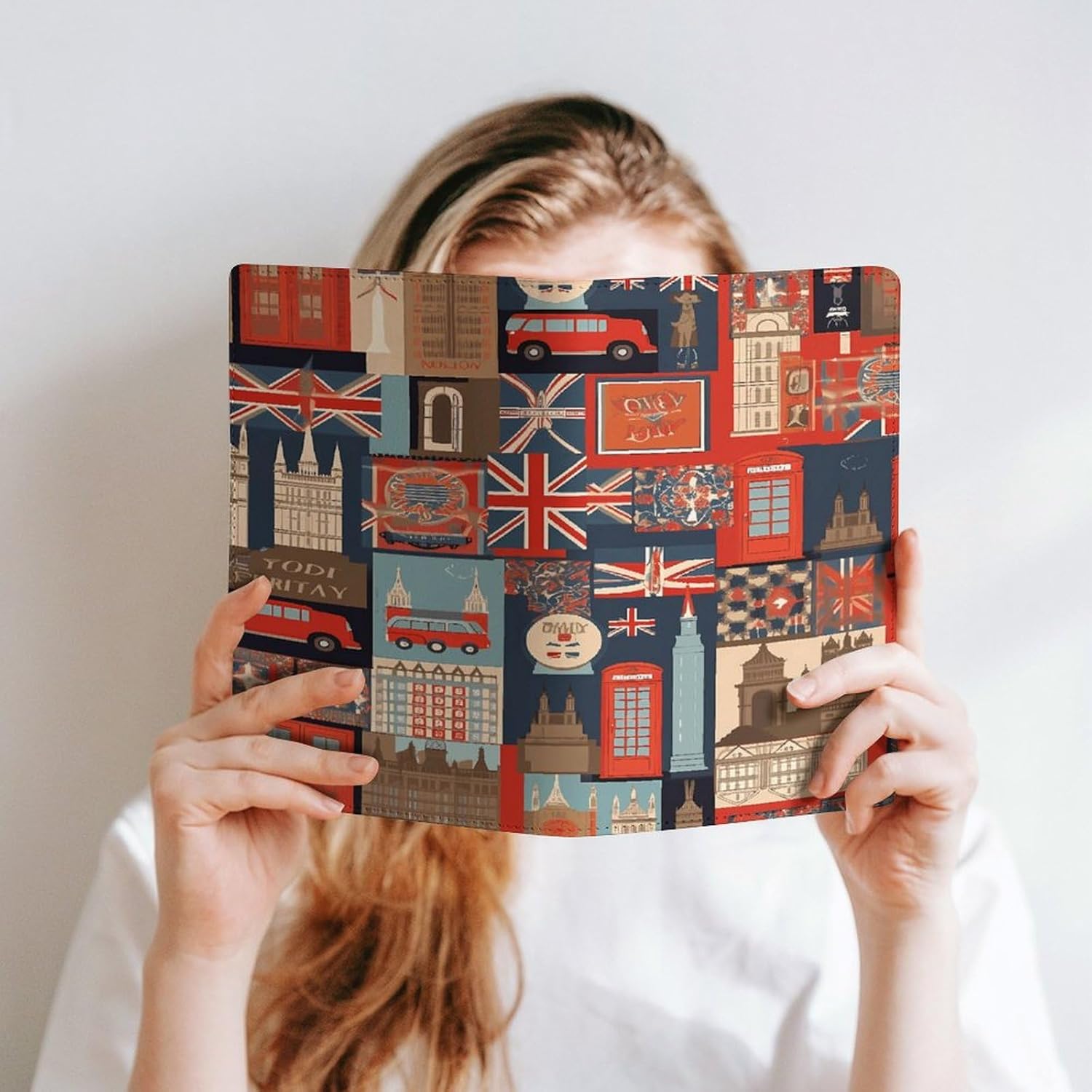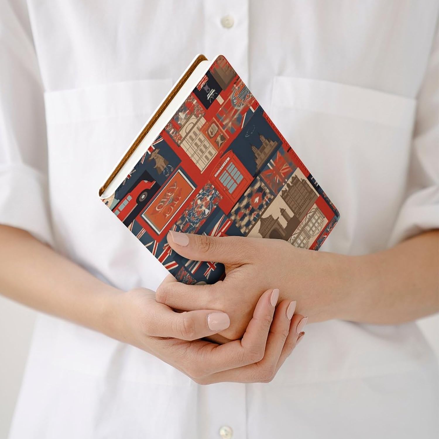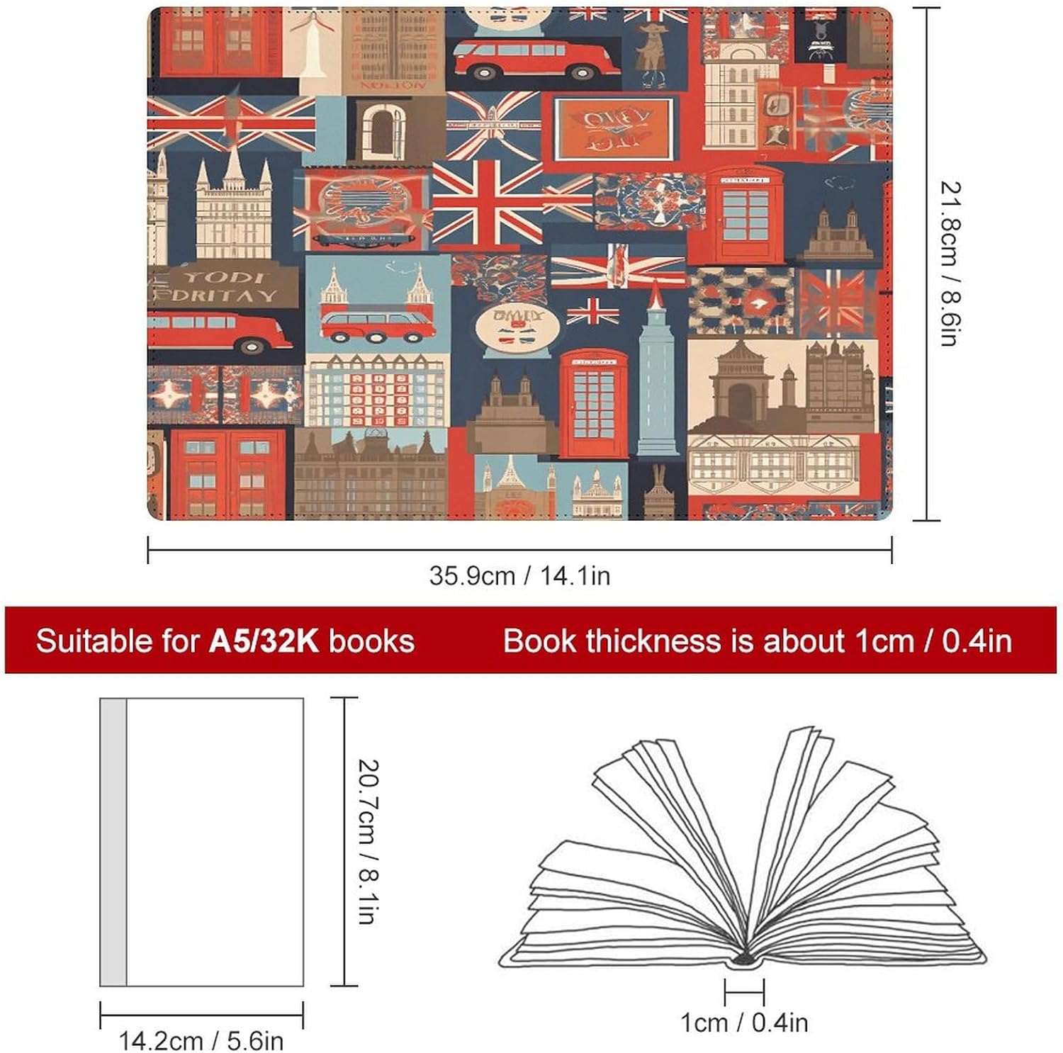 Design: copertine per quaderni da viaggio, il design robusto offre un'eccellente protezione per il tuo diario. Simboli dell'Inghilterra stampati, copertina del libro elastica, materiale di rivestimento morbido, può evitare l'attrito sui libri. Materiale: copertina del libro resistente realizzata in morbida ecopelle di alta qualità, impermeabile. La classica copertina per notebook è realizzata con tecnologia di stampa UV e ha un aspetto raffinato. Applicazione: le copertine in pelle per diari sono dotate di design interessanti, adatte agli studenti per imparare e utilizzare, le copertine per notebook da donna sono adatte anche per l'uso in uffici, scuole o altrove REGALI - Le copertine impermeabili per notebook sono oggetti di uso quotidiano. La copertina dell'agenda è adatta come regalo per amici, colleghi o bambini. Uso e pulizia: la copertina del libro può essere utilizzata ripetutamente. Si consiglia di pulire e pulire regolarmente la copertina in pelle del notebook
