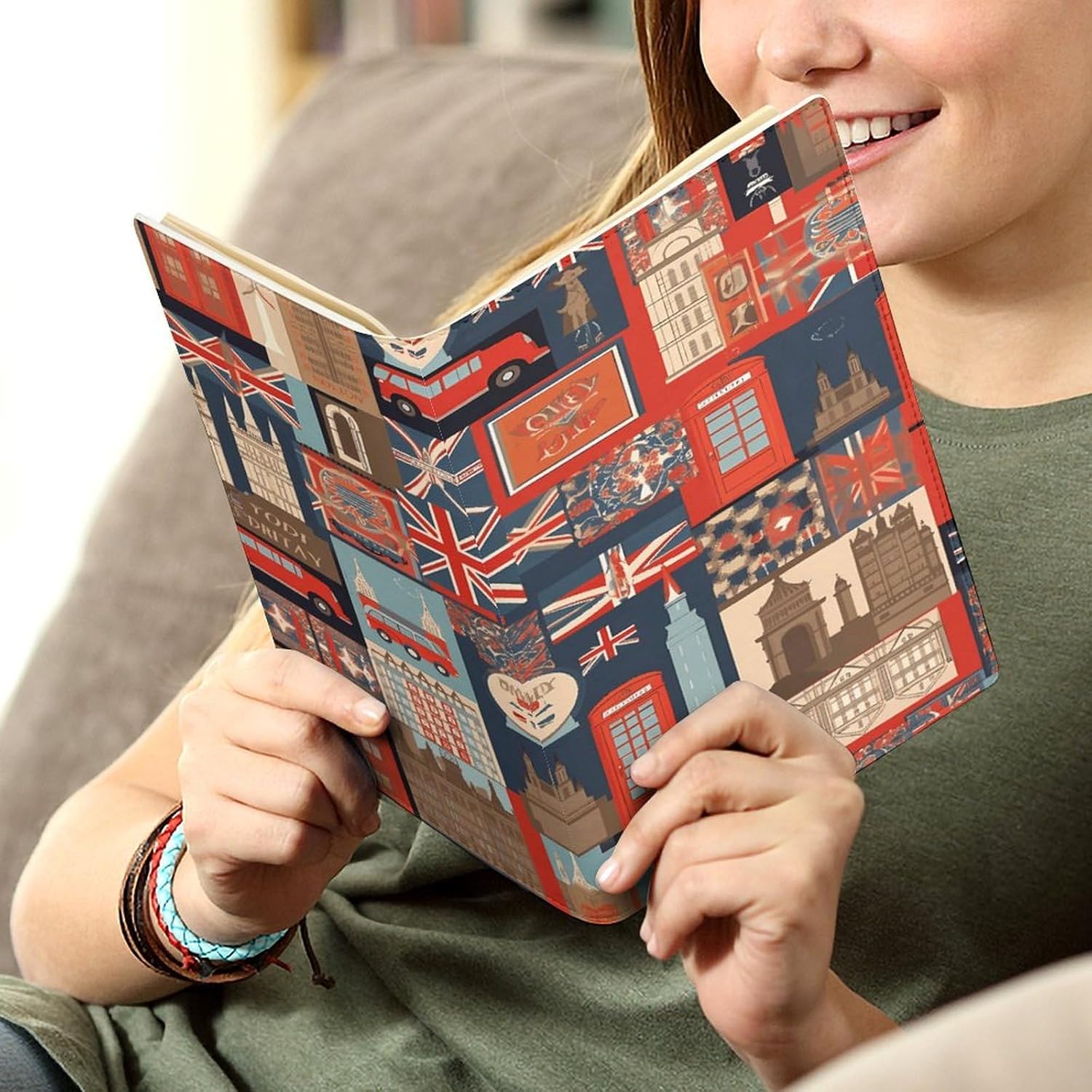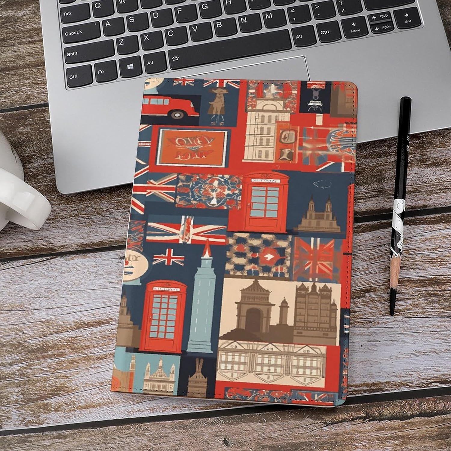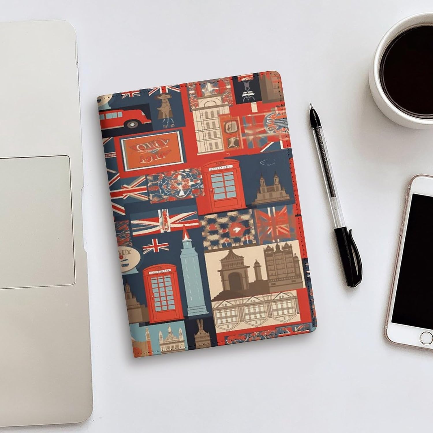 Design: copertine per quaderni da viaggio, il design robusto offre un'eccellente protezione per il tuo diario. Simboli dell'Inghilterra stampati, copertina del libro elastica, materiale di rivestimento morbido, può evitare l'attrito sui libri. Materiale: copertina del libro resistente realizzata in morbida ecopelle di alta qualità, impermeabile. La classica copertina per notebook è realizzata con tecnologia di stampa UV e ha un aspetto raffinato. Applicazione: le copertine in pelle per diari sono dotate di design interessanti, adatte agli studenti per imparare e utilizzare, le copertine per notebook da donna sono adatte anche per l'uso in uffici, scuole o altrove REGALI - Le copertine impermeabili per notebook sono oggetti di uso quotidiano. La copertina dell'agenda è adatta come regalo per amici, colleghi o bambini. Uso e pulizia: la copertina del libro può essere utilizzata ripetutamente. Si consiglia di pulire e pulire regolarmente la copertina in pelle del notebook
