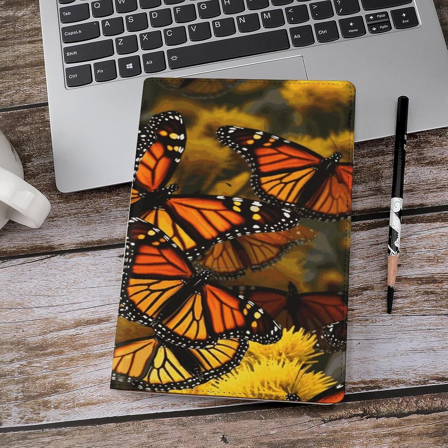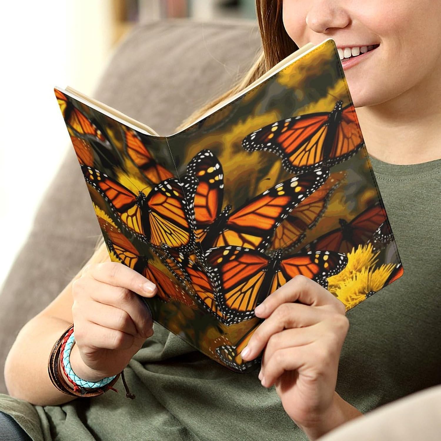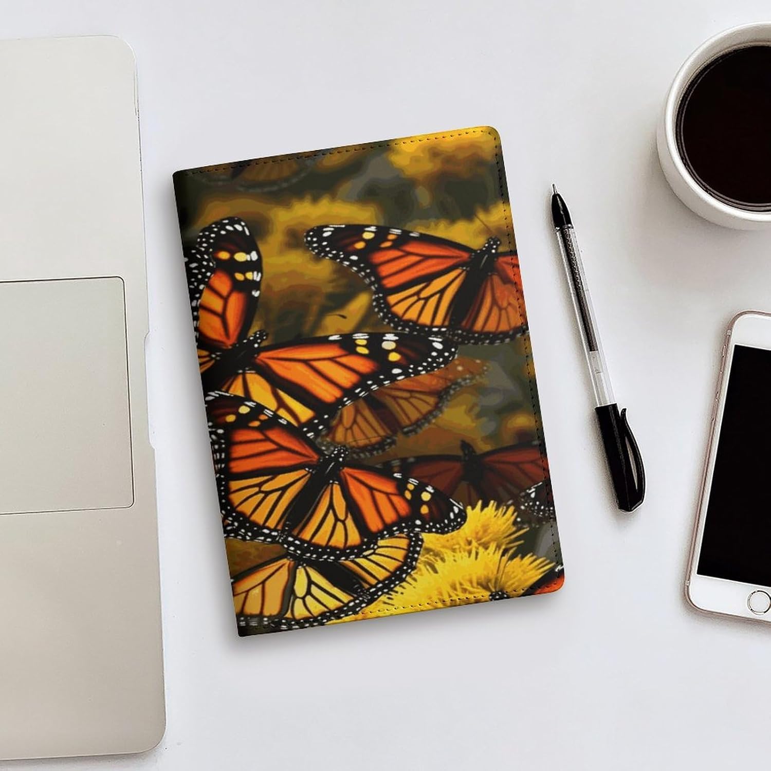Design: copertine per quaderni da viaggio, il design robusto offre un'eccellente protezione per il tuo diario. Copertina del libro elastica stampata con farfalle monarca, materiale di rivestimento morbido, può evitare l'attrito sui libri. Materiale: copertina del libro resistente realizzata in morbida ecopelle di alta qualità, impermeabile. La classica copertina per notebook è realizzata con tecnologia di stampa UV e ha un aspetto raffinato. Applicazione: le copertine in pelle per diari sono dotate di design interessanti, adatte agli studenti per imparare e utilizzare, le copertine per notebook da donna sono adatte anche per l'uso in uffici, scuole o altrove REGALI - Le copertine impermeabili per notebook sono oggetti di uso quotidiano. La copertina dell'agenda è adatta come regalo per amici, colleghi o bambini. Uso e pulizia: la copertina del libro può essere utilizzata ripetutamente. Si consiglia di pulire e pulire regolarmente la copertina in pelle del notebook