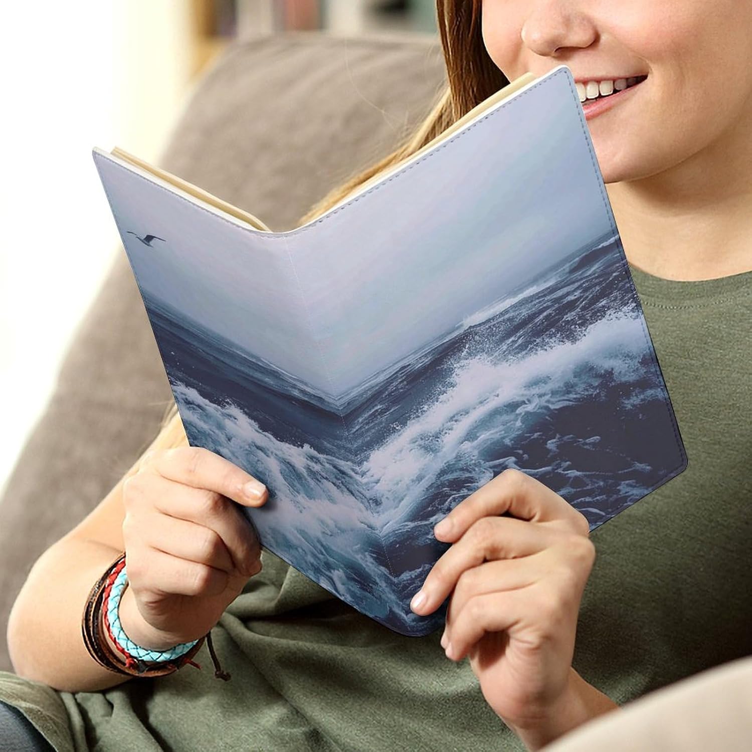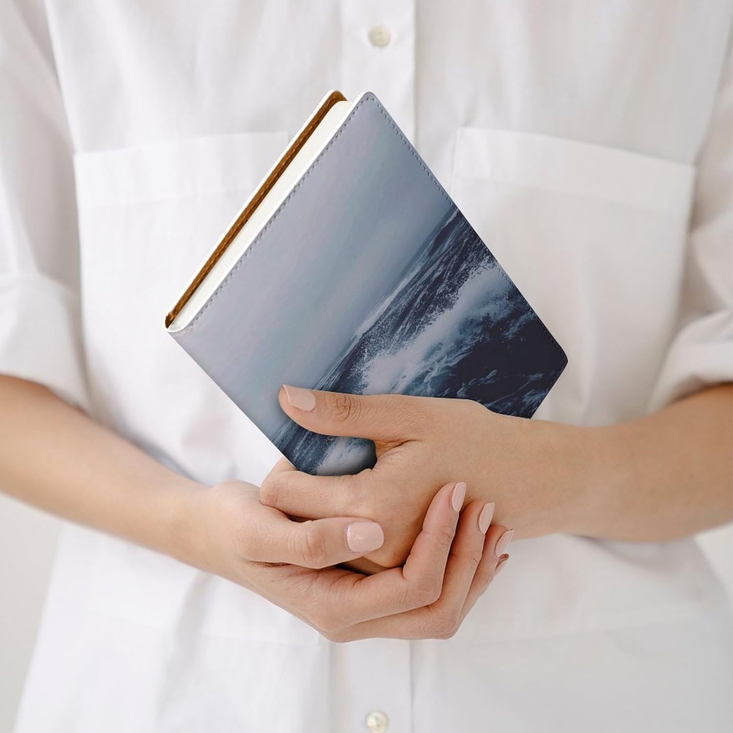 Design: copertine per quaderni da viaggio, il design robusto offre un'eccellente protezione per il tuo diario. Copertina per libro elastica stampata blu mare profondo, materiale di rivestimento morbido, può evitare l'attrito sui libri Materiale: copertina per libro resistente realizzata in morbida ecopelle di alta qualità, impermeabile. La classica copertina per notebook è realizzata con tecnologia di stampa UV e ha un aspetto raffinato. Applicazione: le copertine in pelle per diari sono dotate di design interessanti, adatte agli studenti per imparare e utilizzare, le copertine per notebook da donna sono adatte anche per l'uso in uffici, scuole o altrove REGALI - Le copertine impermeabili per notebook sono oggetti di uso quotidiano. La copertina dell'agenda è adatta come regalo per amici, colleghi o bambini. Uso e pulizia: la copertina del libro può essere utilizzata ripetutamente. Si consiglia di pulire e pulire regolarmente la copertina in pelle del notebook