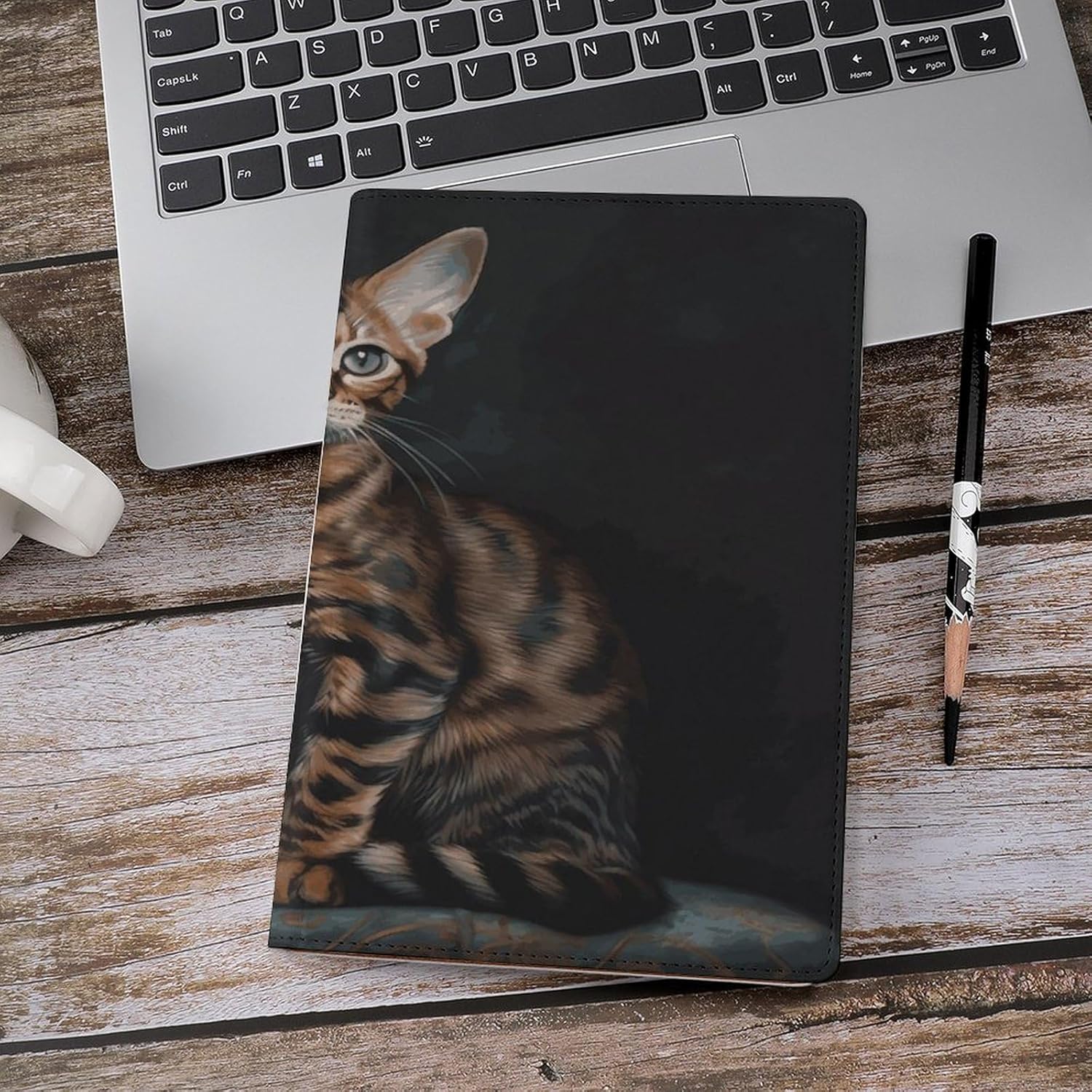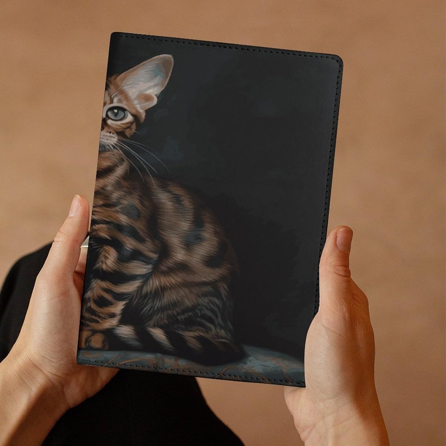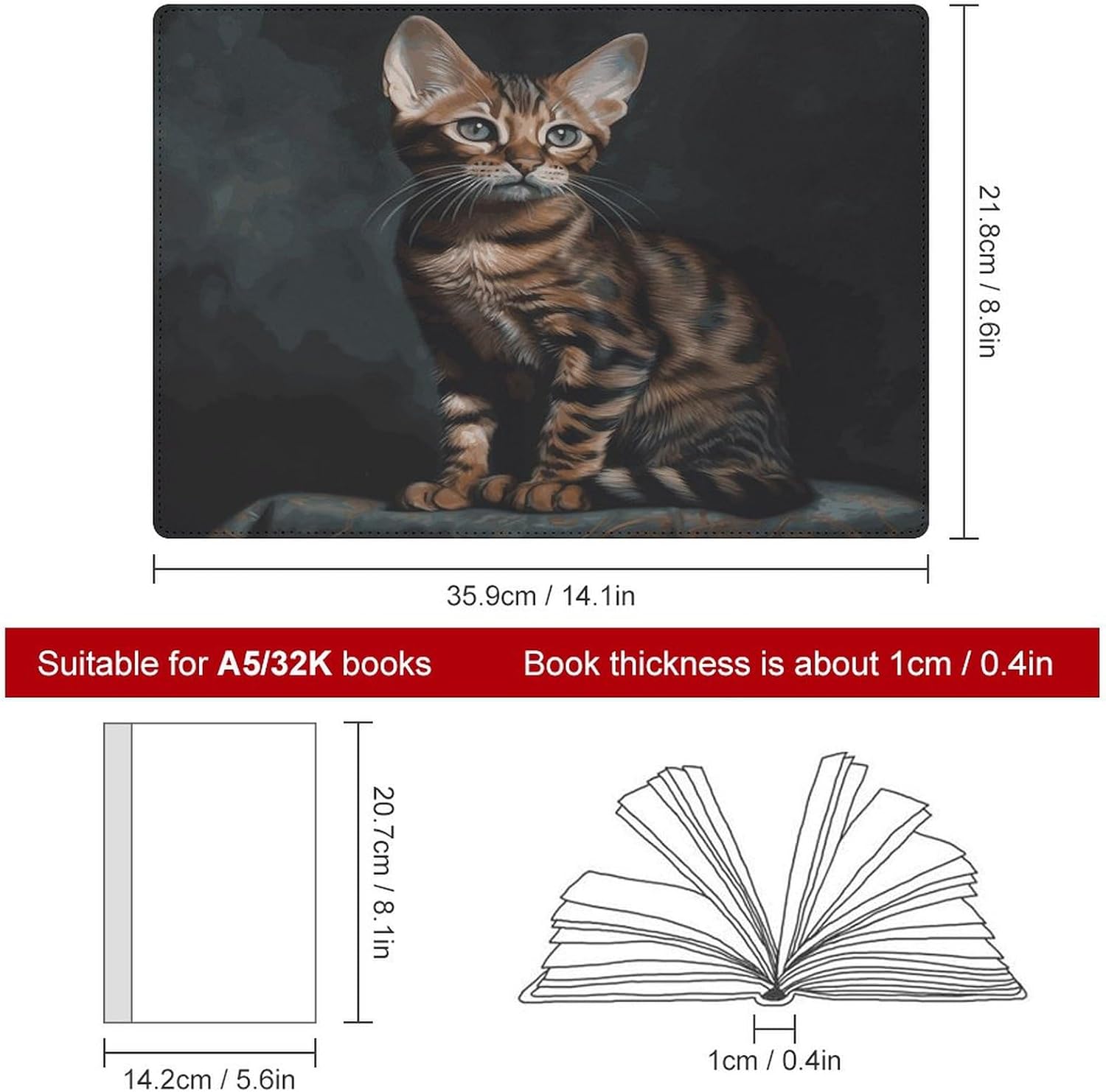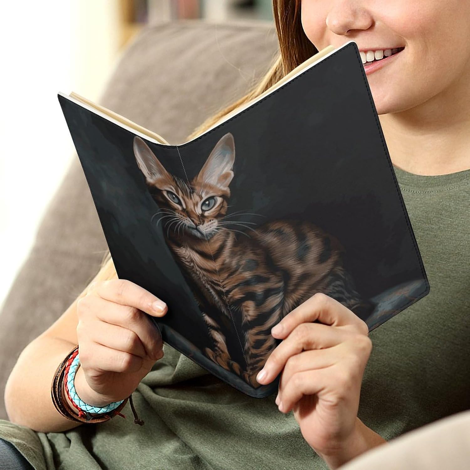Design: copertine per quaderni da viaggio, il design robusto offre un'eccellente protezione per il tuo diario. Copertine per libri elastiche stampate con stampa di gatti del Bengala, materiale di rivestimento morbido, possono evitare l'attrito sui libri. Materiale: copertina per libri resistente realizzata in morbida ecopelle di alta qualità, impermeabile. La classica copertina per notebook è realizzata con tecnologia di stampa UV e ha un aspetto raffinato. Applicazione: le copertine in pelle per diari sono dotate di design interessanti, adatte agli studenti per imparare e utilizzare, le copertine per notebook da donna sono adatte anche per l'uso in uffici, scuole o altrove REGALI - Le copertine impermeabili per notebook sono oggetti di uso quotidiano. La copertina dell'agenda è adatta come regalo per amici, colleghi o bambini. Uso e pulizia: la copertina del libro può essere utilizzata ripetutamente. Si consiglia di pulire e pulire regolarmente la copertina in pelle del notebook
