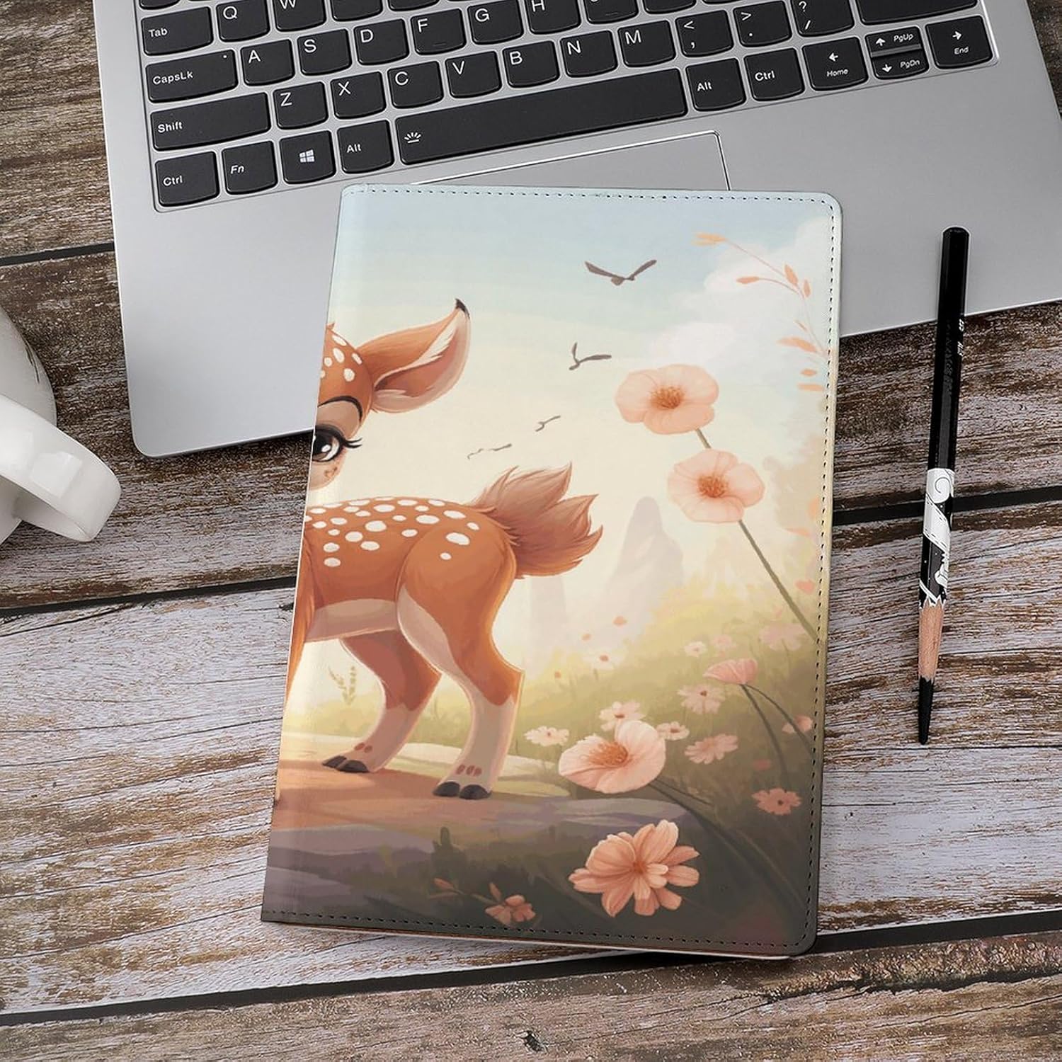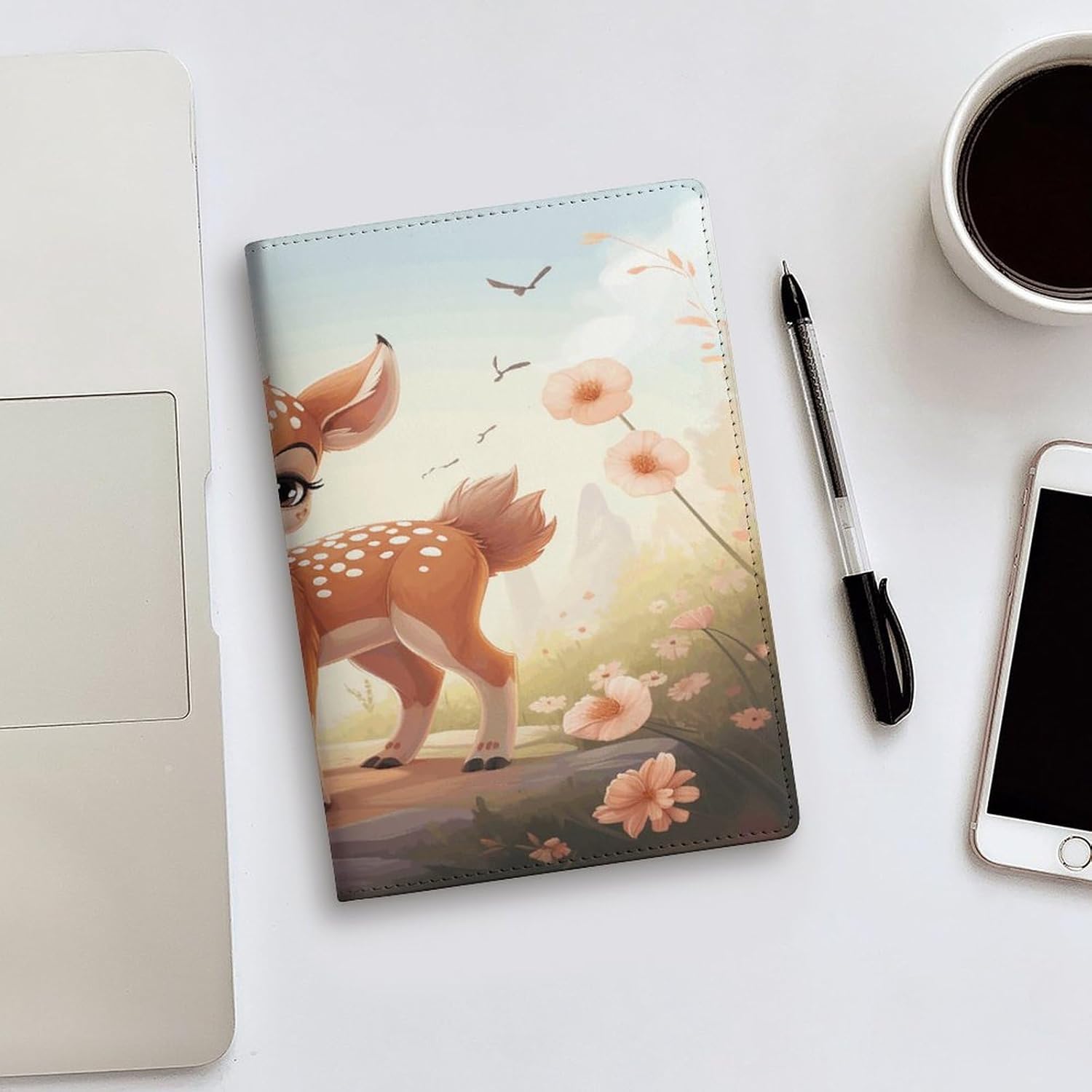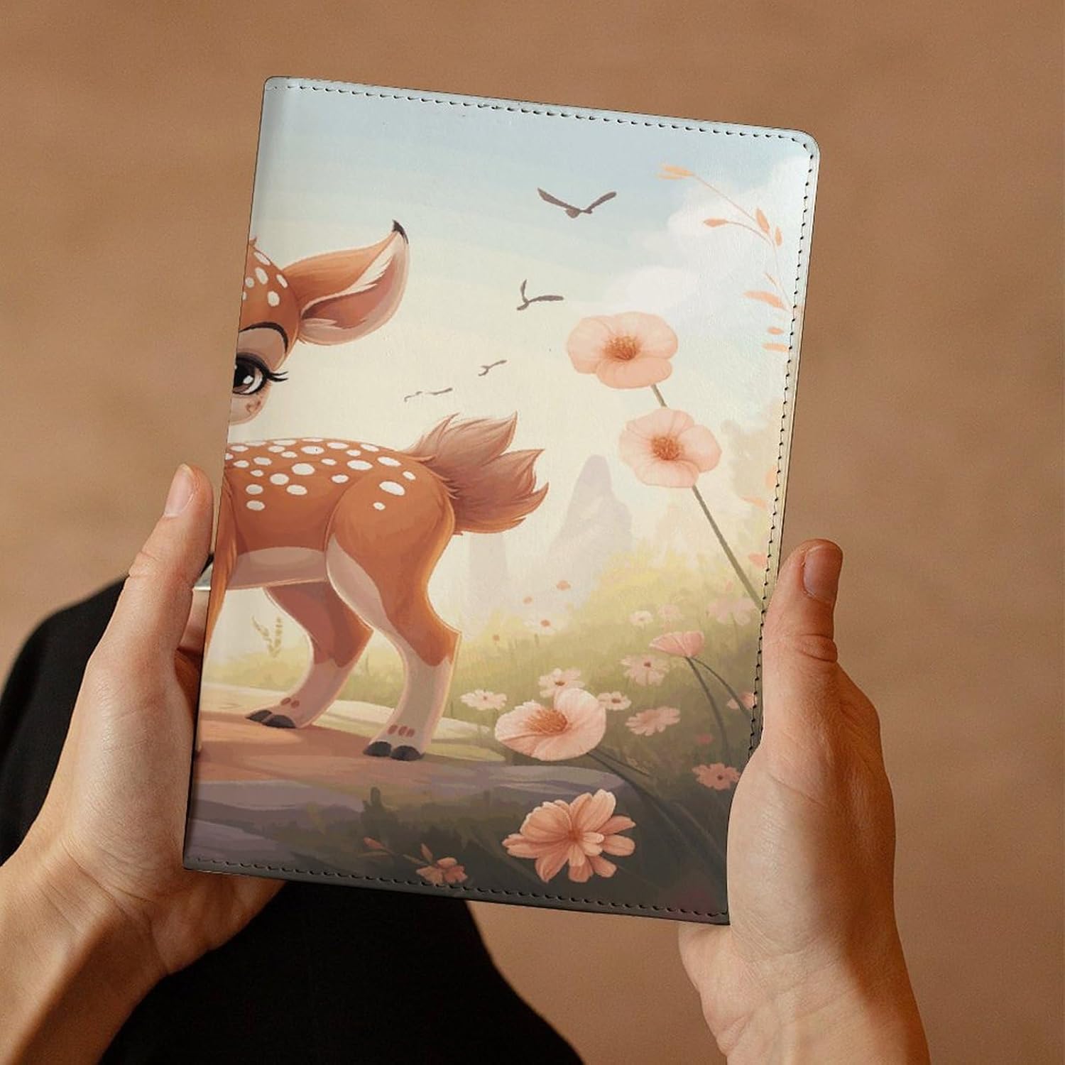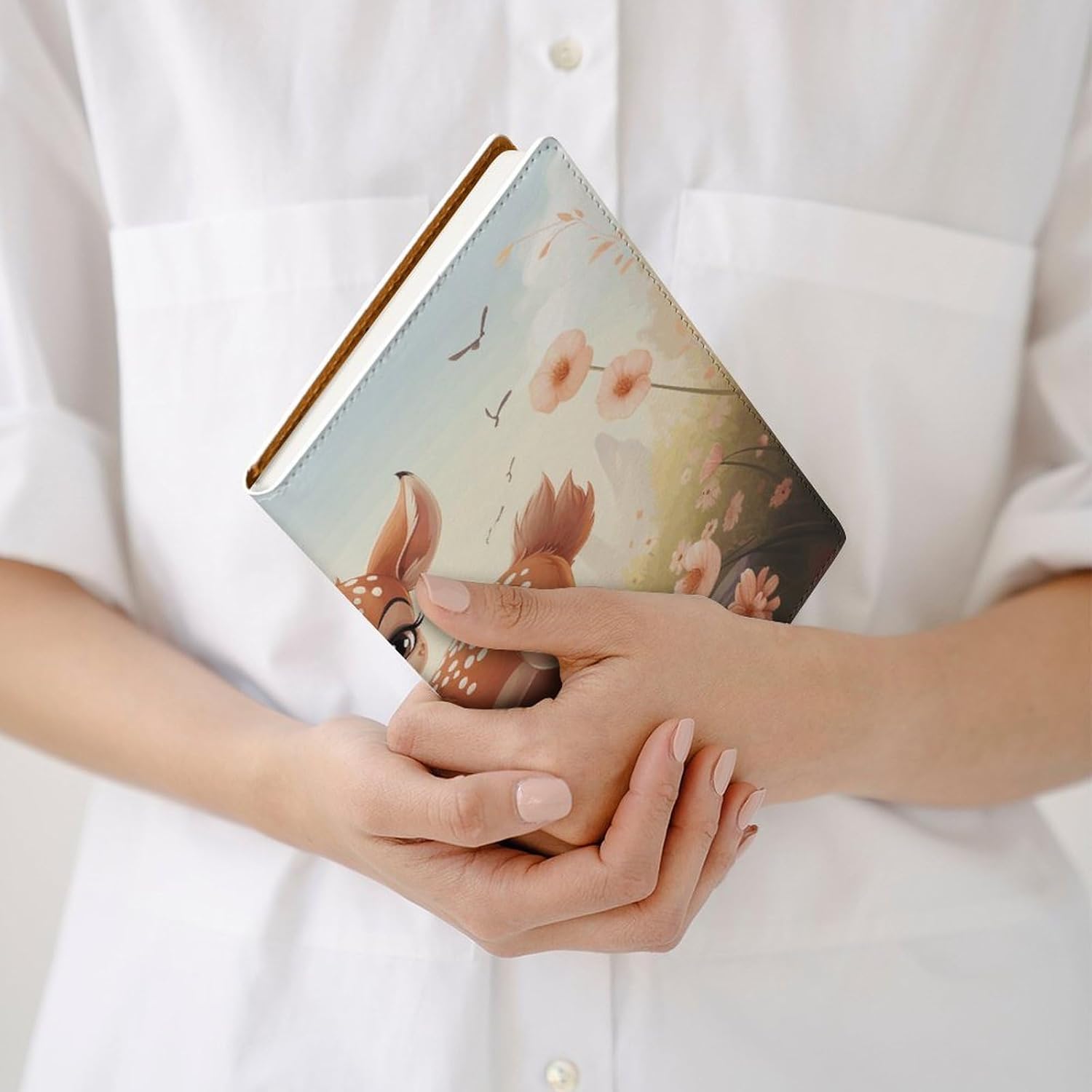 Design: copertine per quaderni da viaggio, il design robusto offre un'eccellente protezione per il tuo diario. Bella stampa di cervi, copertina del libro elastica, materiale di rivestimento morbido, può evitare l'attrito sui libri. Materiale: copertina del libro resistente realizzata in morbida ecopelle di alta qualità, impermeabile. La classica copertina per notebook è realizzata con tecnologia di stampa UV e ha un aspetto raffinato. Applicazione: le copertine in pelle per diari sono dotate di design interessanti, adatte agli studenti per imparare e utilizzare, le copertine per notebook da donna sono adatte anche per l'uso in uffici, scuole o altrove REGALI - Le copertine impermeabili per notebook sono oggetti di uso quotidiano. La copertina dell'agenda è adatta come regalo per amici, colleghi o bambini. Uso e pulizia: la copertina del libro può essere utilizzata ripetutamente. Si consiglia di pulire e pulire regolarmente la copertina in pelle del notebook