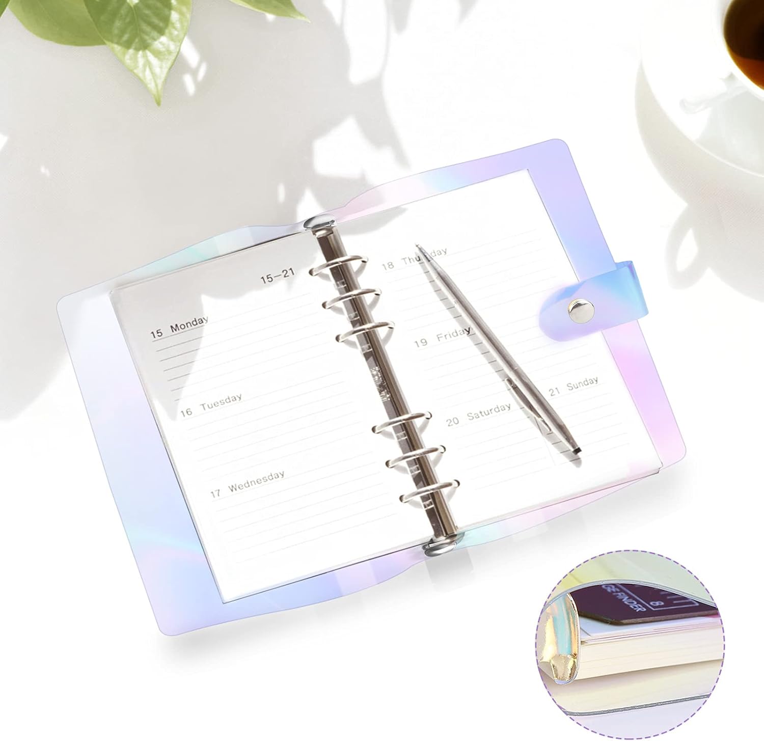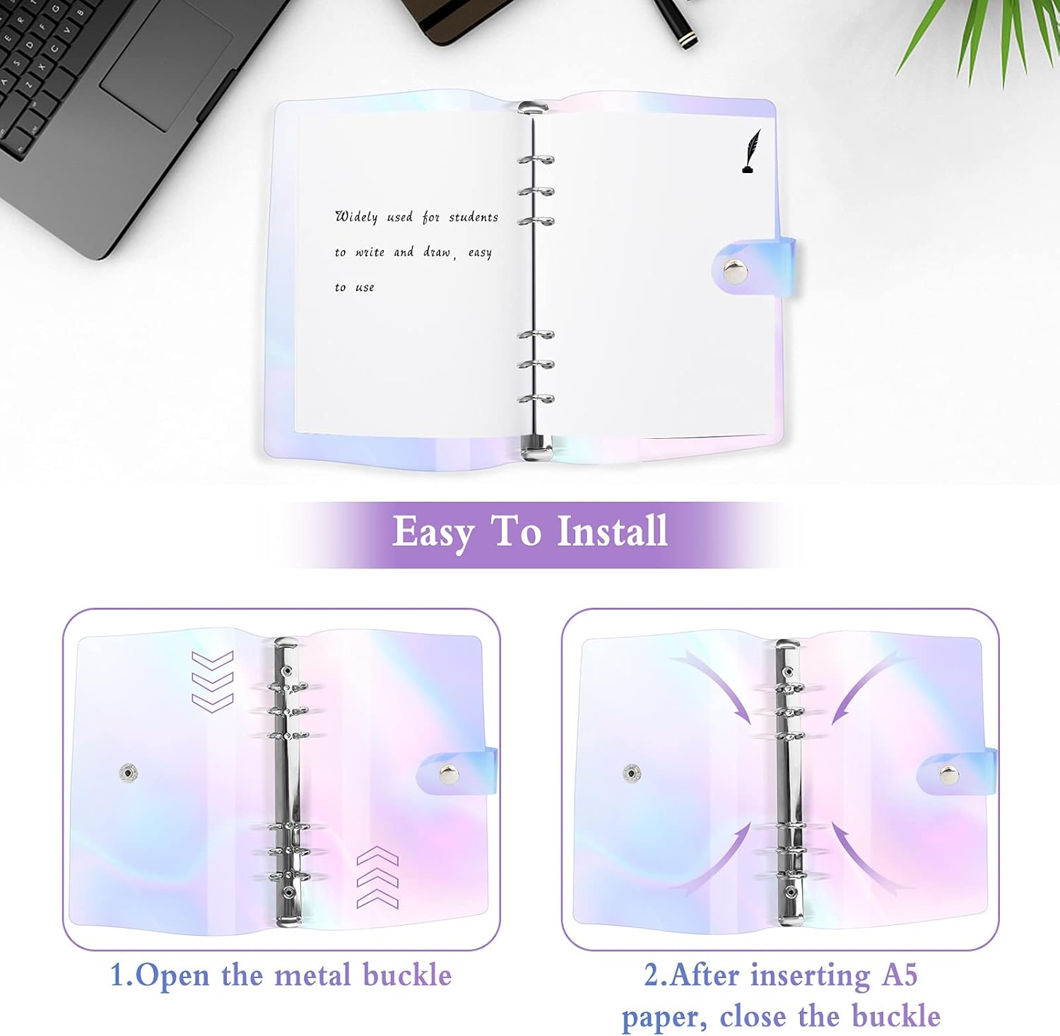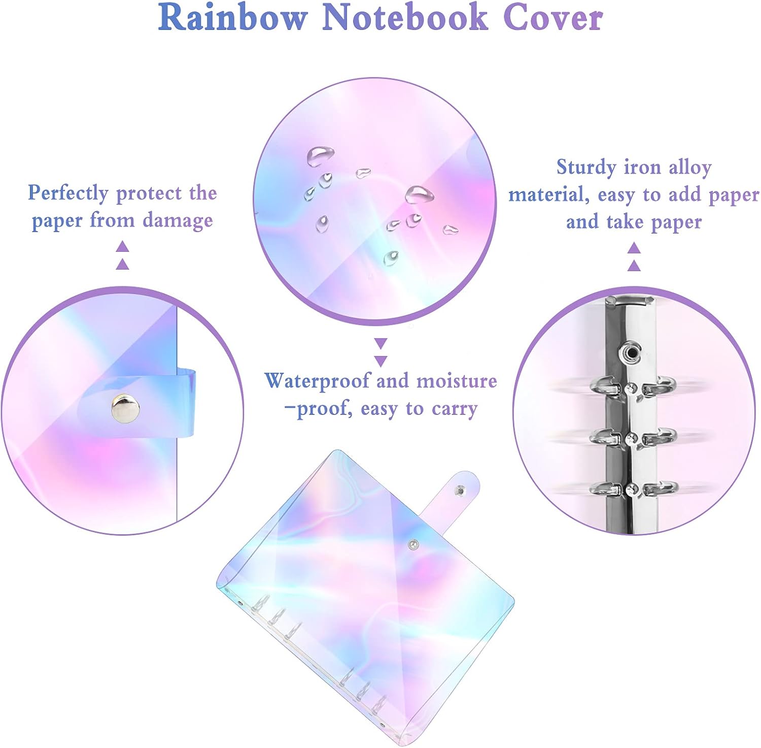 [Copertina per Notebook di Grande Capacità]: La copertina del raccoglitore in formato A5 ha una capacità maggiore e può contenere più carta A5 e l'anello a fogli mobili può trattenere saldamente la carta e non è facile da cadere. Il design del pulsante viene utilizzato sulla copertina esterna, che può proteggere perfettamente la carta da eventuali danni. La piccola copertina del taccuino può permetterti di portarlo con te ed è comodo per registrare le note e le cose interessanti. [Colori Colorati]: La superficie della copertina del taccuino in PVC morbido A5 adotta colori colorati e il design semplice aggiunge colori simili all'arcobaleno alla tua carta, offrendo un'esperienza visiva confortevole. Puoi fare il fai-da-te con la copertina del notebook, per rendere la tua custodia protettiva piena di creatività. Il raccoglitore morbido può essere facilmente inserito nella cartella o nello zaino, può proteggere perfettamente la carta dall'essere piegata. [Materiale Durevole]: La cartella per notebook a fogli mobili impermeabile è realizzata in materiale PVC di alta qualità, che non è facile da indossare, impermeabile e resistente all'umidità, robusto. L'anello legante è realizzato in materiale in lega di ferro di alta qualità, che è forte e durevole, non facile da arrugginire, resistenza alla corrosione ed elevata durezza. I materiali di alta qualità possono essere utilizzati a lungo e proteggono perfettamente la carta. [Facile da Usare]: Il raccoglitore per notebook in morbido pvc è progettato con 6 fibbie metalliche. Hai solo bisogno di aprire la fibbia ad un'estremità, per inserire la carta A5 nell'anello a fogli mobili, quindi premere con forza la fibbia per sigillarla, per evitare che la carta cada perfettamente. L'anello a fogli mobili è facile da aprire e chiudere, il che è comodo per aggiungere carta e prendere la carta. [Ampia Applicazione]: Il raccoglitore a fogli mobili a 6 anelli ha una vasta gamma di usi, ad esempio: può essere utilizzato come quaderno di classe, diario, quaderno da disegno, scrittura, appunti di studio, appunti, quaderni aziendali, ecc. Può essere utilizzato in varie occasioni e in qualsiasi momento da utilizzare. Puoi anche appendere la penna alla fibbia in metallo per comodità.