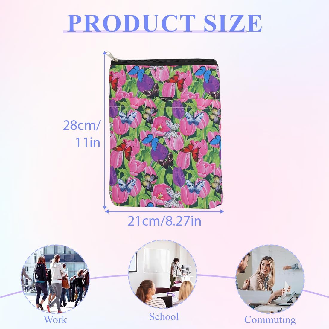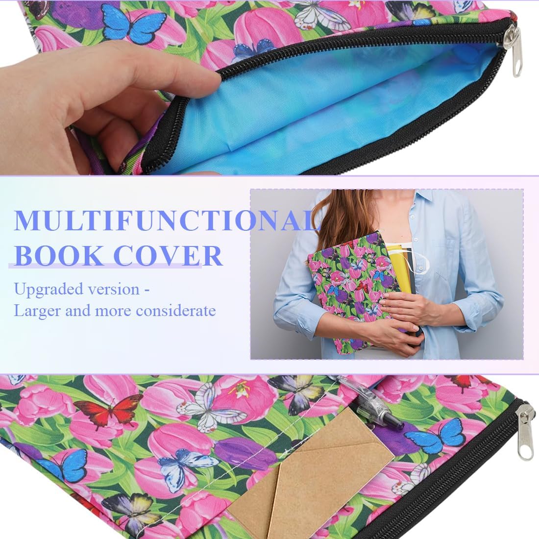 Design multifunzionale per un'organizzazione accurata: questa copertina protettiva non solo protegge i libri, ma offre anche un ampio spazio di archiviazione. La sua tasca può contenere comodamente articoli di cancelleria come matite colorate, mentre l'interno spazioso può ospitare quaderni e altri oggetti, soddisfacendo diverse esigenze organizzative per lo studio, il lavoro e altro ancora, per tenere in ordine i propri effetti personali. Dimensioni ampliate per una maggiore adattabilità: con una lunghezza di 28 cm e una larghezza di 21 cm, può contenere libri di vari formati, quaderni e laptop. Che si tratti di libri di testo, libri illustrati o dispositivi elettronici come tablet, offre soluzioni di archiviazione flessibili. Tessuto di alta qualità e lavorazione meticolosa per una durata eccezionale: realizzato in tessuto di alta qualità, offre una texture eccezionale ed è resistente all'usura e alle macchie, proteggendo efficacemente il contenuto da eventuali danni. Abbinato a una cerniera di precisione, il dispositivo di chiusura scorrevole resiste agli inceppamenti e rimane resistente anche dopo un uso prolungato, aumentando la longevità del prodotto. Design portatile per viaggiare senza sforzo: dotato di una comoda maniglia per un facile trasporto a mano. Che si tratti di spostamenti quotidiani, in campus o all'aperto, consente un accesso senza sforzo, alleggerendo il carico e rendendo il trasporto degli effetti personali più comodo e spensierato. Squisito motivo floreale e farfalle: combinando l'estetica con un design accurato, l'esterno presenta un affascinante motivo di tulipani rosa e farfalle colorate. Le sue tonalità vivaci e lo stile fresco offrono un tocco decorativo, aggiungendo un tocco di raffinatezza al look dell'utente. È anche un regalo premuroso per amici e familiari, adatto per occasioni festive e vari eventi, che trasmette sentimenti sinceri.