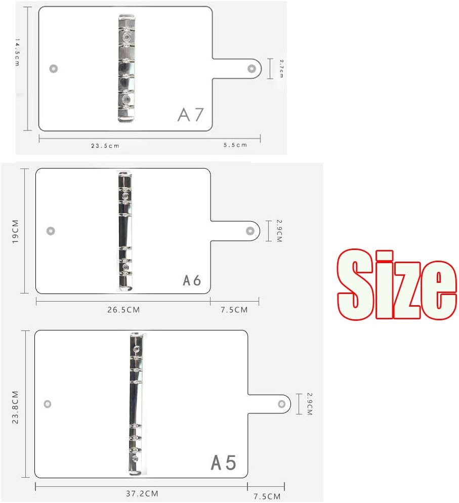 Realizzato in materiale PVC, morbido ed ecologico, alta flessibilità, copertina trasparente spessa e robusta, facile da controllare la carta interna Anello raccoglitore realizzato in robusto acciaio inossidabile, il diametro dell'anello è di 20 mm, facile da trasportare, abbastanza forte per catturare carta di grande capacità (circa 100-200 fogli di carta di ricarica) Per fogli sfusi per un diario proiettile, diario, diario di viaggio, quaderno aziendale, ufficio, scuola, lavoro di poesia, scrittura creativa, fare schizzi e disegni, documenti di lavoro, appunti di studio, diario dell'umore, miglior regalo per amici e familiari Dimensioni (a scelta): A7, A6, A5; solo copertina per notebook (non includere la carta) Raccoglitore a 6 anelli, buone dimensioni per viaggiare, si prega di fare riferimento alle dimensioni prima di ordinare