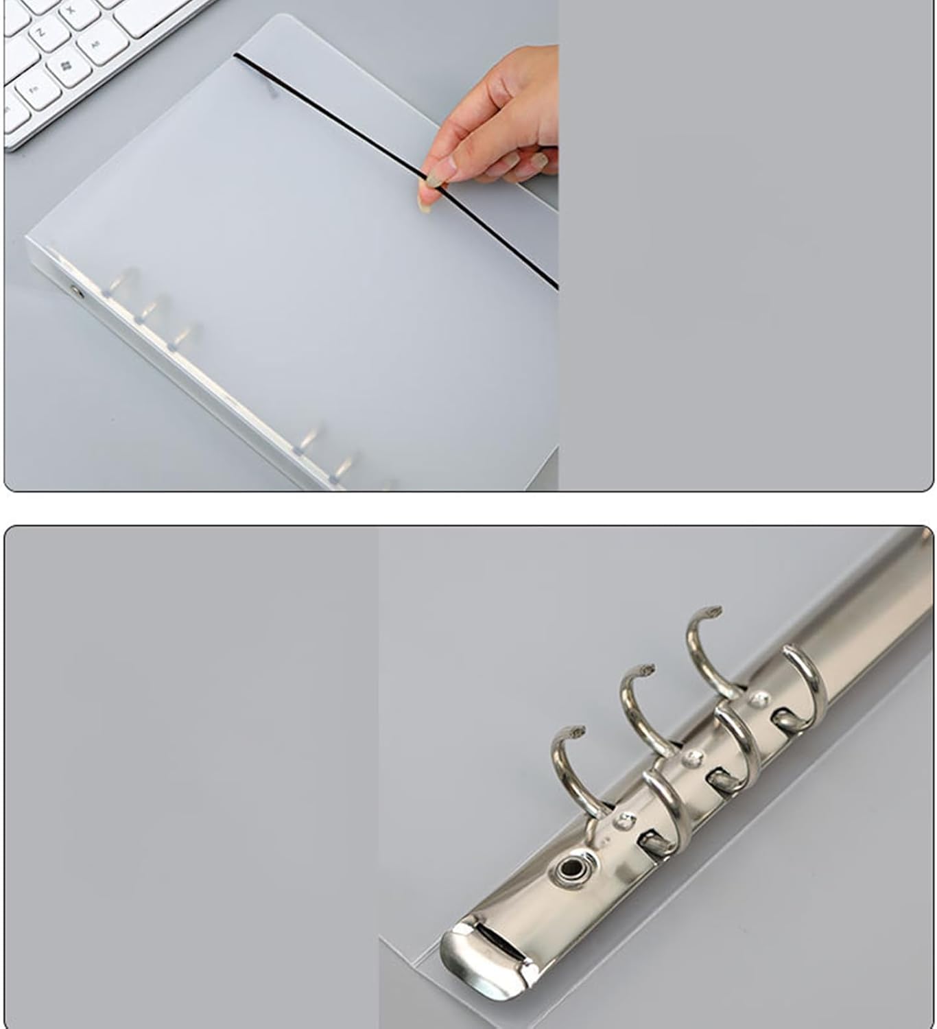 Gestione efficiente: il suo meccanismo ad anelli garantisce l'adattamento alle ricariche standard per una rapida sostituzione delle pagine e l'organizzazione di carte adesive, favorendo metodi innovativi di prendere appunti al lavoro o a scuola. Protezione ottimale dei documenti: questa copertina è dotata di una cinghia elastica che garantisce una chiusura sicura per impedire l'accesso non autorizzato e rafforzare la protezione della privacy. Il suo design pratico facilita il trasporto quotidiano in borsa, ideale per studenti o professionisti che gestiscono documenti sensibili. Idea regalo perfetta: progettata per enfatizzare e proteggere le collezioni di adesivi da polvere e danni, questa copertina trasparente è la scelta ideale per organizzare i diari di moda e da regalare a compleanni o occasioni memorabili. Materiale PP robusto: Dotate di un materiale PP solido, queste buste trasparenti mantengono la loro trasparenza senza ingiallimento, sostenendo una fiducia affidabile durante un uso prolungato per lavori accademici, riunioni professionali o archiviazione personale Protezione documentaria affidabile: grazie alla chiusura a doppia fibbia, questo raccoglitore a 6 anelli garantisce l'integrità del contenuto evitando perdite accidentali, consentendo una comoda memorizzazione e accesso in conferenze o progetti.