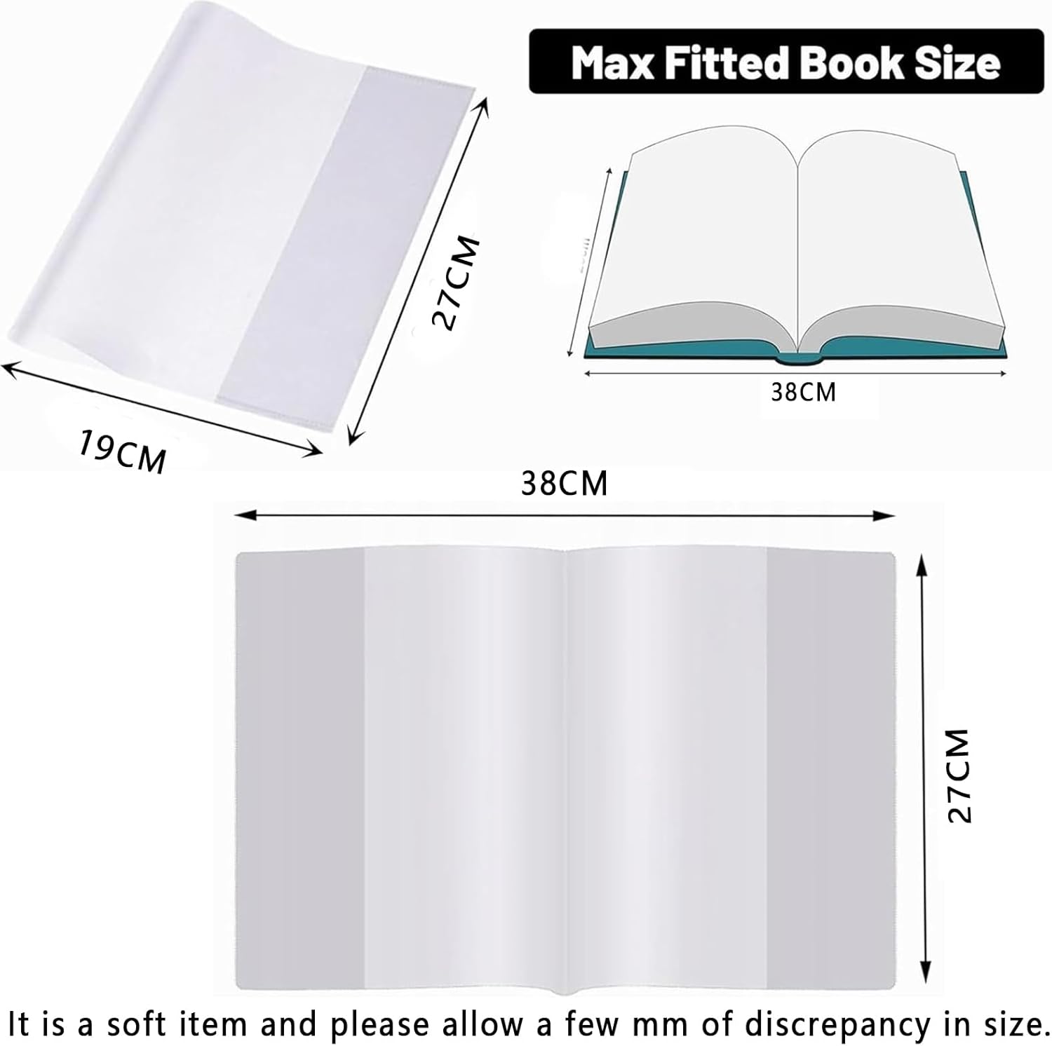 Dimensioni: le nostre copertine per libri trasparenti sono progettate per adattarsi a quaderni e libri (26,3 cm x 19,5 cmm). Materiale durevole: materiale in PVC, impermeabile, resistente all'usura, forte flessibilità, nessuna deformazione dopo l'arricciatura, protegge efficacemente il libro dall'umidità. Design scientifico: il design integrato può coprire libri spessi e la larghezza di un lato della copertina del libro può essere regolata a piacimento, il che è conveniente per adattarsi a diversi spessori di libri. Un piccolo aiuto efficace: per aiutarti a proteggere quaderni, cartelle, cartelle e libri di scuola da polvere, sporco, umidità, piegamenti, strappi e orecchie di cane. Versatile: ideale per scuola, studenti, casa e ufficio.