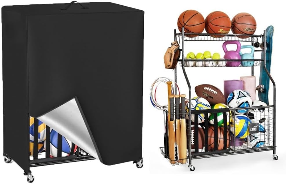 Protezione dagli agenti atmosferici: realizzata in tessuto Oxford rivestito in PU 420D, questa copertura di lunga durata protegge il rack da pioggia, neve e raggi UV, contribuendo a prevenire l'accumulo di polvere e prolungare la durata della tua attrezzatura in ambienti esterni o interni. Per una facile installazione: con un design intuitivo, questa copertura consente una rapida installazione in pochi passaggi, si adatta saldamente su rack fino a 97 x 46 x 115 cm, protezione dai problemi per le tue attrezzature sportive. Uso versatile: adatto per vari attrezzi sportivi, tra cui palloni da basket e borse, questa copertura pieghevole offre soluzioni di archiviazione generali, mantenendo i tuoi oggetti puliti e organizzati per un facile accesso durante i giochi. Materiale di lunga durata: realizzato in tessuto Oxford, resiste all'uso frequente senza strappi o sbiadimento, fornendo una copertura affidabile che mantiene la sua integrità in diversi ambienti. Organizzazione migliorata: coprendo il rack di stoccaggio, aiuta a mantenere uno spazio ordinato, riducendo il disordine e mantenendo le attrezzature in perfette condizioni, con opzioni in nero, grigio, bianco o marrone per adattarsi alla configurazione.