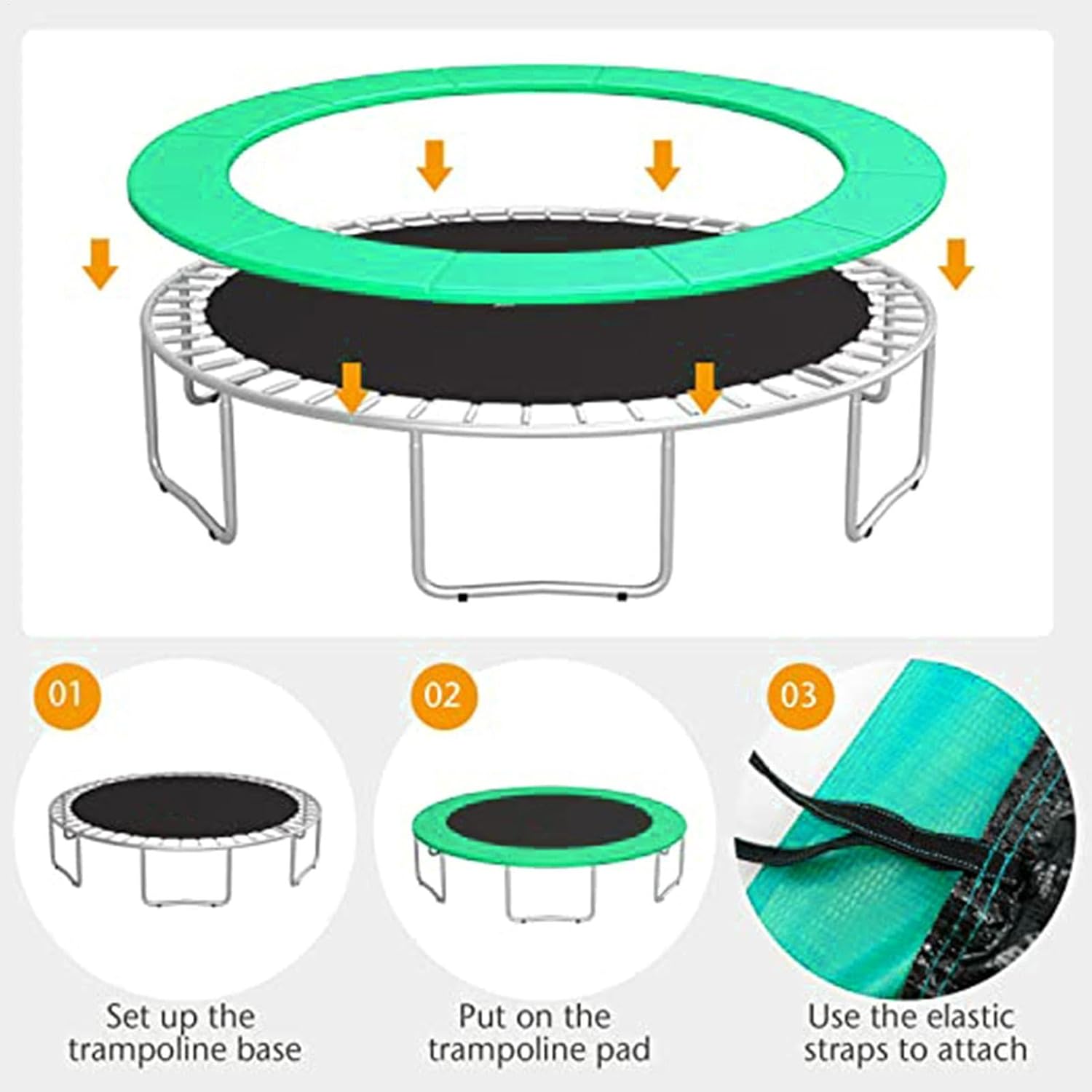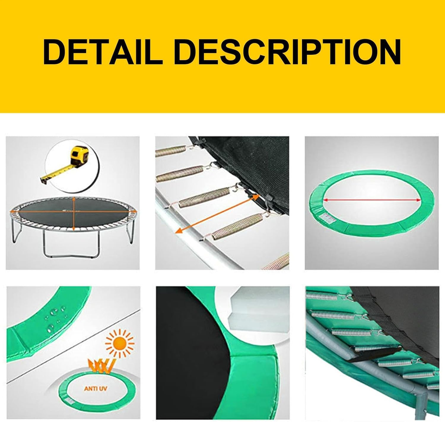 [Facile assemblaggio] Non richiede strumenti aggiuntivi. Questa sostituzione dell'imbottitura del trampolino è facile da installare e rimuovere e offre molte comodità. [Protezione perfetta] Perfetto per coprire le molle esposte del trampolino, questo cuscino protettivo per trampolino ha un design monopezzo senza spazi pericolosi. [Facile da trasportare] Comodo per lo stoccaggio e il trasporto, questo cuscino sostitutivo per trampolino utilizza un design pieghevole e un design leggero e portatile. [Ampia compatibilità] Questo cuscino rotondo con telaio di sicurezza per trampolino è largo fino a 12 pollici per coprire completamente le molle, si adatta alla maggior parte dei trampolini rotondi (senza fori per il palo), offrendoti molte comodità. [Resistente alle intemperie e durevole] Questa copertura del bordo del trampolino è realizzata in PVC, EPE e PE di alta qualità, che lo rendono impermeabile, resistente alle intemperie e all'usura, durevole per un uso a lungo termine.