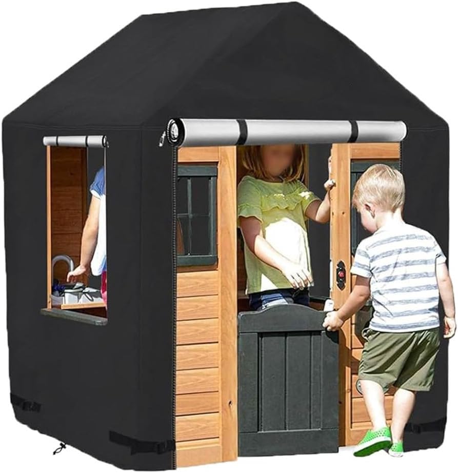 Resistenza agli agenti atmosferici senza pari: La casetta per bambini rimane un rifugio asciutto e sicuro tutto l'anno con la nostra copertura premium, realizzata con materiali impermeabili di alta qualità. Questa copertura offre una protezione eccezionale contro pioggia e umidità, mantenendo la casetta in perfette condizioni indipendentemente dalle condizioni atmosferiche. Goditi la tranquillità sapendo che i tuoi bambini possono giocare in sicurezza senza la preoccupazione di danni causati dall'acqua o dall'umidità che influenzano la loro area di gioco. Protezione solare superiore: Proteggi il tuo investimento dai dannosi raggi UV con la nostra copertura per casetta progettata per proteggere e preservare l'aspetto vibrante della tua struttura in legno. Grazie allo sbiadimento e ai potenziali danni del sole, questa copertura prolunga la durata della casetta dei giochi, rimane un posto bello e invitante per i vostri bambini. Mantieni l'aspetto estetico del tuo spazio esterno con questo accessorio protettivo essenziale. Installazione e rimozione senza sforzo: Sperimenta una comodità senza precedenti con il design intuitivo della nostra copertura per casetta dei giochi, che consente un'installazione rapida e senza problemi. I genitori possono facilmente installare o rimuovere la copertura secondo necessità senza attrezzi, risparmiando tempo e fatica. Goditi più momenti con la tua famiglia sapendo che proteggere la casetta è un compito semplice che chiunque può gestire con facilità. Vestibilità sicura affidabile: