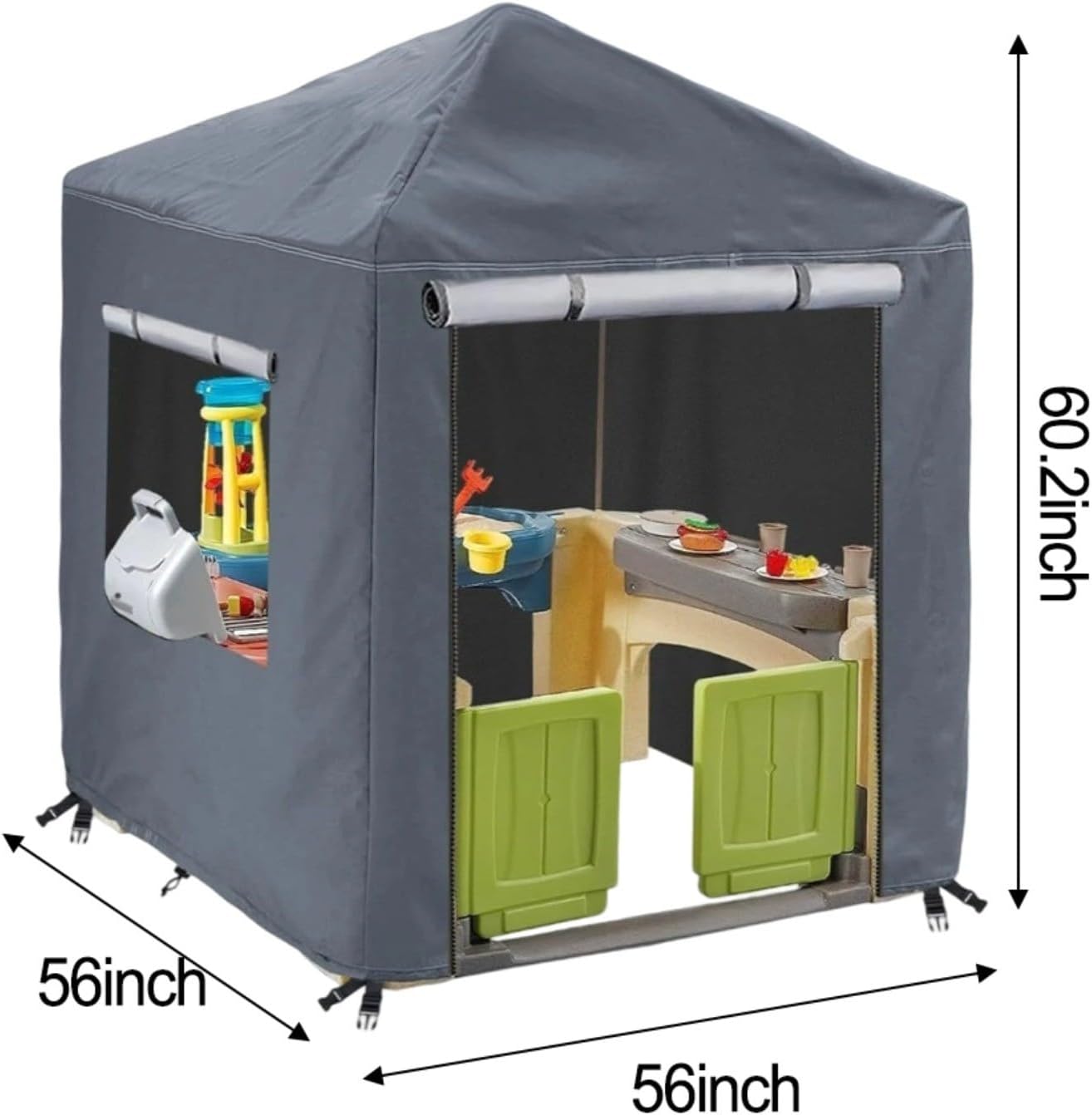 Protezione dagli agenti atmosferici: realizzata in resistente tessuto Oxford 210D con rivestimento in PU impermeabile, protegge efficacemente dalla pioggia e da altri elementi atmosferici per prolungare la vita della tua casetta. [Accesso comodo] Con due robuste cerniere impermeabili sulla parte anteriore, l'accesso al teatro è semplice. Inoltre, le finestre su tre lati migliorano la visibilità e il flusso d'aria. [Vestibilità sicura] Progettato con quattro bottoni a pressione e due cordoncini elastici sull'orlo nella parte inferiore per un fissaggio sicuro anche in condizioni di vento per mantenere la tua casetta al sicuro. [Esperienza di gioco migliorata] Questa copertura realizzata con cura non solo protegge, ma arricchisce anche il tempo di gioco dei bambini mantenendo un'atmosfera accogliente, ben illuminata e ventilata.