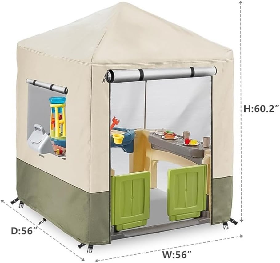 [Protezione dalle intemperie affidabile] Realizzata in tessuto Oxford 210D con un rivestimento impermeabile in PU, questa copertura protegge efficacemente da strappi e condizioni meteorologiche estreme, migliorando la durata della casetta dei bambini. Resistente agli elementi: questa copertura impermeabile mantiene l'area giochi all'aperto asciutta e pulita da pioggia e neve, garantendo un ambiente piacevole per i bambini tutto l'anno. Design di facile accesso: con due robuste cerniere sul lato anteriore, accedere alla casetta è senza sforzo. Basta aprire la cerniera e arrotolare la copertura con facilità per una rapida preparazione del gioco. [Resistenza al vento sicura] Il design include quattro fibbie e due corde elastiche sul fondo per mantenere la copertura saldamente in posizione durante condizioni di vento, qualsiasi movimento indesiderato. Dimensioni per la compatibilità: con 140 x 140 x 5 cm, questa copertura si adatta alla maggior parte delle case da gioco di dimensioni standard, rendendola un'aggiunta essenziale alla tua configurazione esterna.