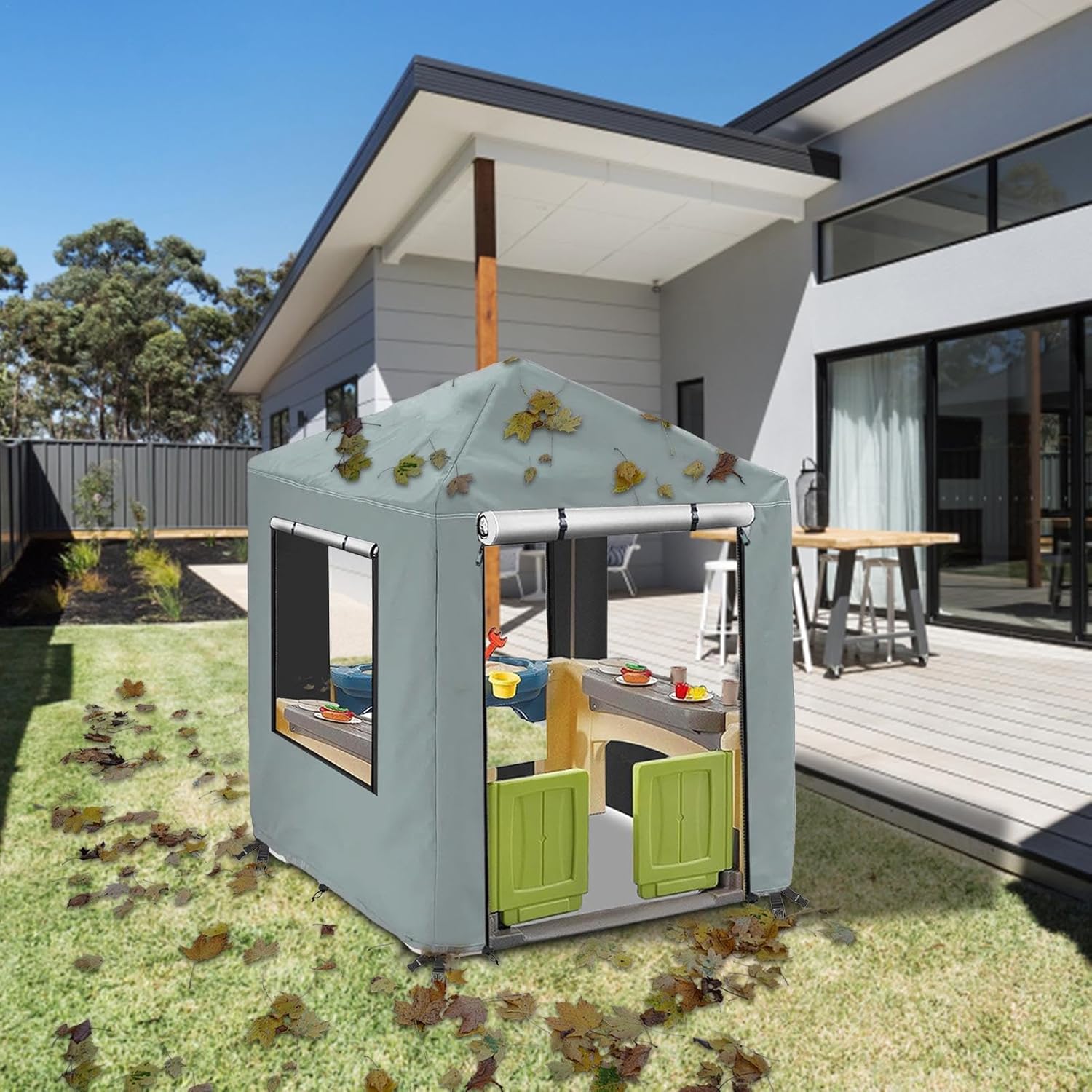 Materiale avanzato: realizzata in tessuto Oxford resistente agli strappi con rivestimento impermeabile, la nostra copertura Playhouse resiste a condizioni atmosferiche avverse, fornendo una resistenza senza precedenti e materiale di alta qualità Fissaggio sicuro: dotata di cinghie di fissaggio, questa copertura per casetta da gioco garantisce che rimanga saldamente in posizione, fornendo eccellenti prestazioni antivento per le casette da gioco all'aperto Facile da usare: la copertura Playhouse offre un facile accesso grazie al suo comodo design laterale con porta avvolgibile e due robuste cerniere su tutti e i lati. Apri e chiudi comodamente e goditi una migliore accessibilità Conservazione senza sforzo: riponi facilmente la copertura della tua casetta grazie al suo design pieghevole e alla custodia inclusa. Non occuperà spazio inutile e manterrà l'organizzazione per un utilizzo rapido e accessibile Adatto a molte occasioni: progettata per resistere alle condizioni atmosferiche più difficili, questa copertura è lo scudo perfetto per casette da gioco per bambini di tutte le dimensioni. Ampiamente usato e adatto alla maggior parte dei teatri