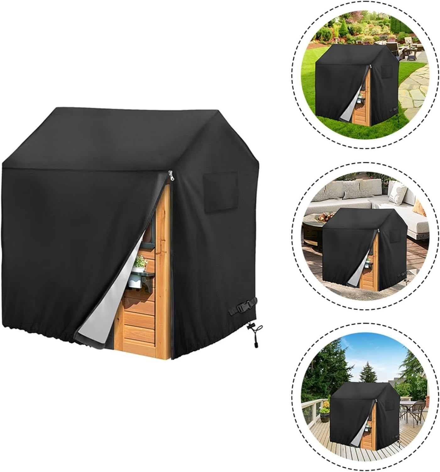 [Affidabile resistenza alle intemperie] Realizzata in robusto tessuto Oxford 210D, questa copertura protettiva offre eccezionali caratteristiche impermeabili, antivento e resistenti ai raggi UV per proteggere la casetta dei bambini dagli agenti atmosferici. Varietà di dimensioni disponibili: scegli tra due dimensioni (110 x 120 x 140 cm o 145 x 145 x 160 cm) per trovare la misura perfetta per la tua casetta dei giochi. Ricordati di controllare le dimensioni specifiche prima di ordinare. Sicurezza stabile del vento: la coulisse regolabile nella parte inferiore garantisce una vestibilità aderente in condizioni di vento, mentre la cerniera laterale consente un'installazione e una rimozione rapide e senza problemi. [Comoda soluzione di stoccaggio] Progettata per essere leggera e facilmente pieghevole, questa copertura è perfetta per riporre quando non in uso, aiutandoti a mantenere uno spazio esterno organizzato.