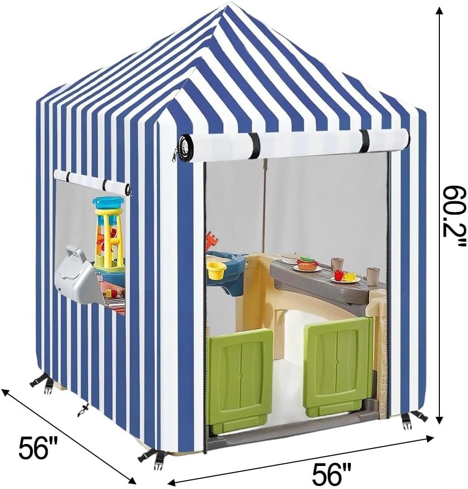 Resistenza agli agenti atmosferici e protezione: mantieni la tua casetta da giardino in legno al top con la nostra copertura impermeabile che protegge da pioggia, neve e umidità. Il tessuto Oxford 210D con rivestimento argentato crea una barriera protettiva, mantenendo un ambiente di gioco asciutto e sicuro per i bambini in tutte le stagioni. Questa copertura resistente prolunga la durata della tua struttura in legno prevenendo i danni causati dall'acqua che possono contribuire a marciume, deformazione, crescita. Tecnologia di protezione solare: la nostra copertura antipolvere appositamente progettata offre un'eccellente difesa UV, riducendo i danni del sole che causano lo sbiadimento del colore e il deterioramento del legno. Il rivestimento riflettente in argento agisce attivamente per bloccare i raggi nocivi, mantenendo l'aspetto vibrante della stanza dei giochi dei bambini per periodi più lunghi. Il rifugio all'aperto preferito dei tuoi bambini rimane fresco e nuovo nonostante l'esposizione costante a elementi difficili. Installazione rapida e sicura: il design facile da usare presenta cinghie regolabili e fibbie robuste che creano una perfetta aderenza su casette in legno che misurano 152,9 x 142,2 x 142,2 cm. La copertura rimane saldamente in posizione anche in caso di vento forte e tempestoso, fornendo una protezione di lunga durata senza costante aggiustamento. Nessun attrezzo richiesto: basta drappeggiare, regolare e fissare per una copertura completa in pochi minuti. Compatibilità versatile delle dimensioni: la nostra copertura per casette ospita vari stili di strutture da gioco all'aperto in legno con le sue dimensioni generose. Il tessuto Oxford 210D flessibile ma robusto si adatta bene alle diverse forme della casetta mantenendo una protezione completa. Disponibile in diversi colori tra cui blu, giallo, rosa e verde per completare l'estetica del tuo giardino mentre serve uno scopo pratico per le attrezzature esterne dei bambini. Prestazioni per tutte le stagioni: progettata per l'uso tutto l'anno, questa copertura offre una protezione costante contro tutte le condizioni atmosferiche. Durante l'estate, mantiene fresca la casetta e previene i danni del sole; in autunno blocca foglie e detriti; l'inverno protegge da neve e ghiaccio; le piogge primaverili rimangono fuori dove appartengono. Le prestazioni all'aperto di lunga durata consentono ai tuoi bambini di godersi il loro spazio di gioco quando vogliono, indipendentemente dal tempo di ieri.