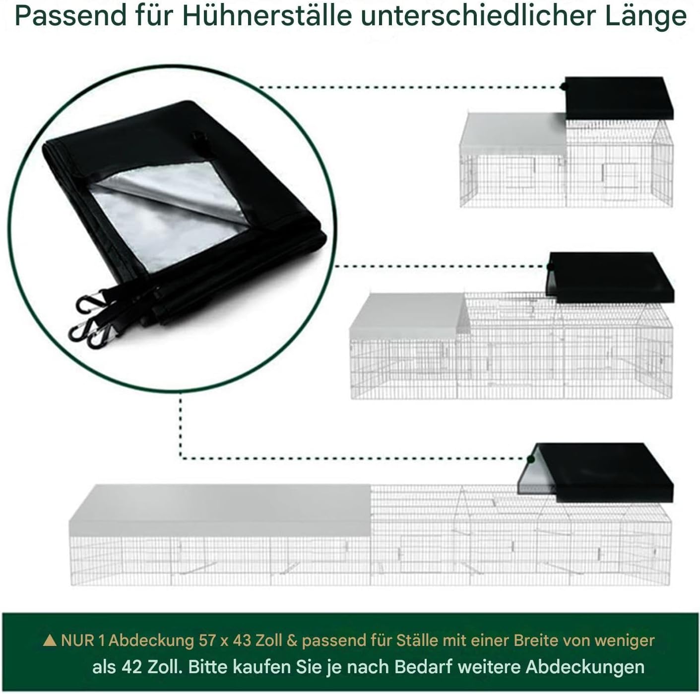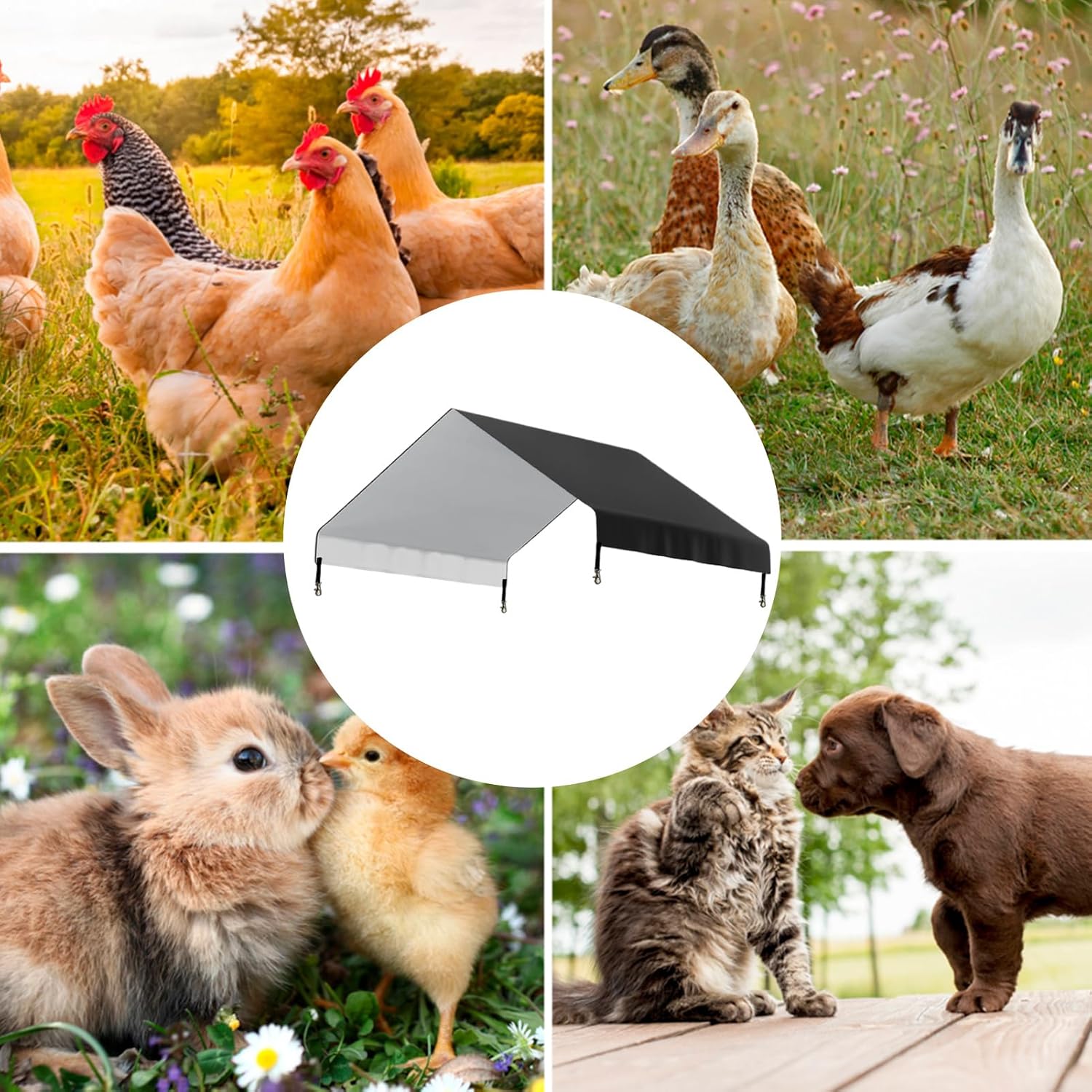 Pratiche clip per bordi: con un design di reazione rapida alle intemperie, questa copertura Coop per pollo è facilmente configurata senza attrezzi fissati da robuste clip sui bordi per fornire una protezione affidabile e adattabilità durante gli spostamenti ambientali imprevisti Manutenzione cooperativa efficiente: come accessorio di copertura di ricambio dedicato, garantisce una manutenzione conveniente e una semplice sostituzione delle parti, fortemente allineata con i fotogrammi Coop attuali per migliorare la funzionalità senza complessità Soluzione di copertura protettiva: un accessorio indispensabile per le cooperative di pollo, che serve anche giardini e fattorie e offre una protezione completa ovunque e garantisce un utilizzo coerente in più ambienti senza compromettere le prestazioni Protezione dagli agenti atmosferici per tutte le stagioni: mantiene l'interno del pollaio asciutto bloccando la pioggia e la luce del sole con materiale impermeabile resistente ai raggi UV, garantendo una protezione costante in ogni stagione Protezione antilacrima e flessibile: questa copertura è costruita con materiale ad alta resistenza e presenta bordi rinforzati che prevengono le lacrime dopo la piegatura e rimangono flessibili, fornendo prestazioni affidabili per un uso prolungato